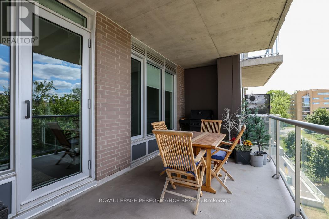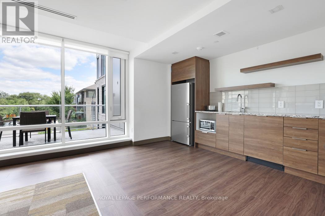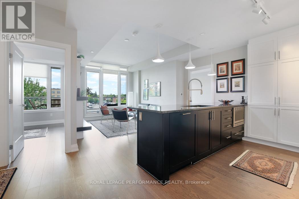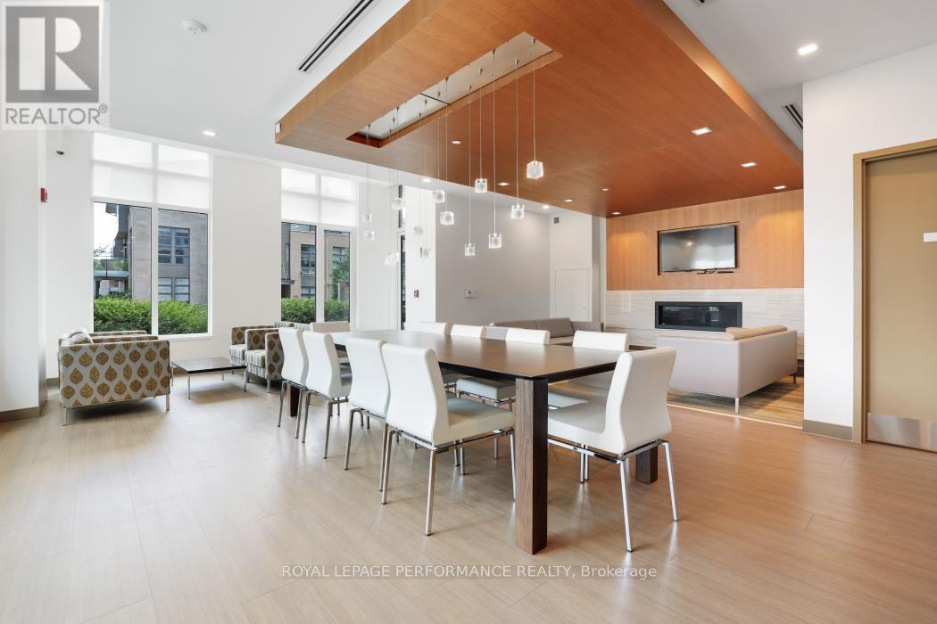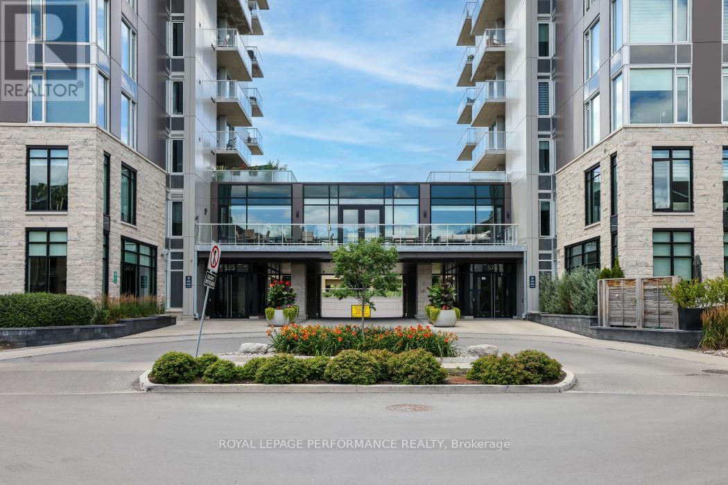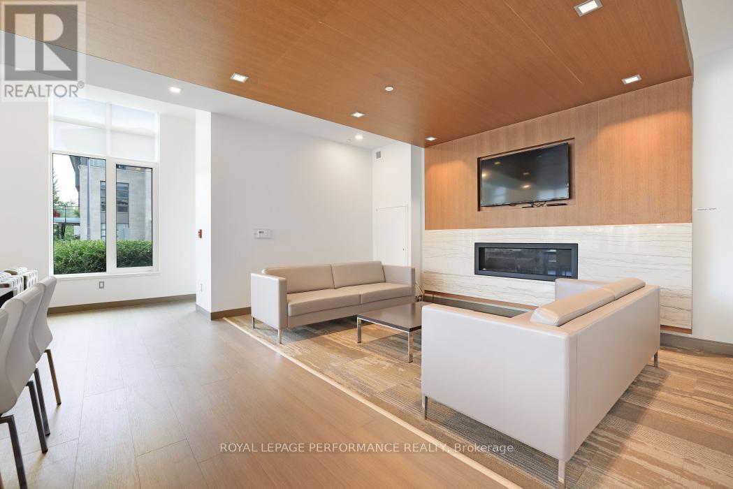 Set between Main Street and the Rideau River, The River Terraces at Greystone Village offers the convenience of being centrally located, while its proximity to the Rideau River and the Rideau Canal provides residents with easy access to nature and recreational pathways. Built by EQ Homes, this 2-bedroom + den, 2-bath Model 20 unit is approx. 1034sq. ft., and is ideal for anyone requiring space for a home office. The huge, covered balcony is approx. 258 sq. ft. and allows you to truly enjoy the warmer months with enough space for dining and seating areas, and includes a gas BBQ hookup. Ample daylight fills the interior space, giving a lively and warm feel throughout. The Primary Bedroom features a walk-through closet with built-in organizers, balcony access, and a spacious ensuite with a large walk-in shower and built-in floor-to-ceiling cabinets. Numerous upgrades including a Liebherr fridge, gas cooktop, dishwasher, and electric fireplace with custom millwork surround. This unit also offers ensuite laundry, neutral décor, hardwood & tile floors, underground parking for one and a storage locker. Condo amenities include a gym, lounge area with a library and fireplace, yoga studio, dining room with kitchen, kayak storage room, pet & car wash stations, plus commercial-grade laundry facilities. Don't forget the Main Street Farmers Market in Grande Allée Park, every Saturday from May-October. A wealth of diverse amenities are easily accessible, including the Flora Footbridge, uOttawa, Saint Paul University, downtown, the 417, Glebe amenities, Lansdowne Park, CHEO and the General and Riverside campuses of the Ottawa Hospital, plus cafés, services, and restaurants. 24-hour irrevocable on offers. (id:49712)