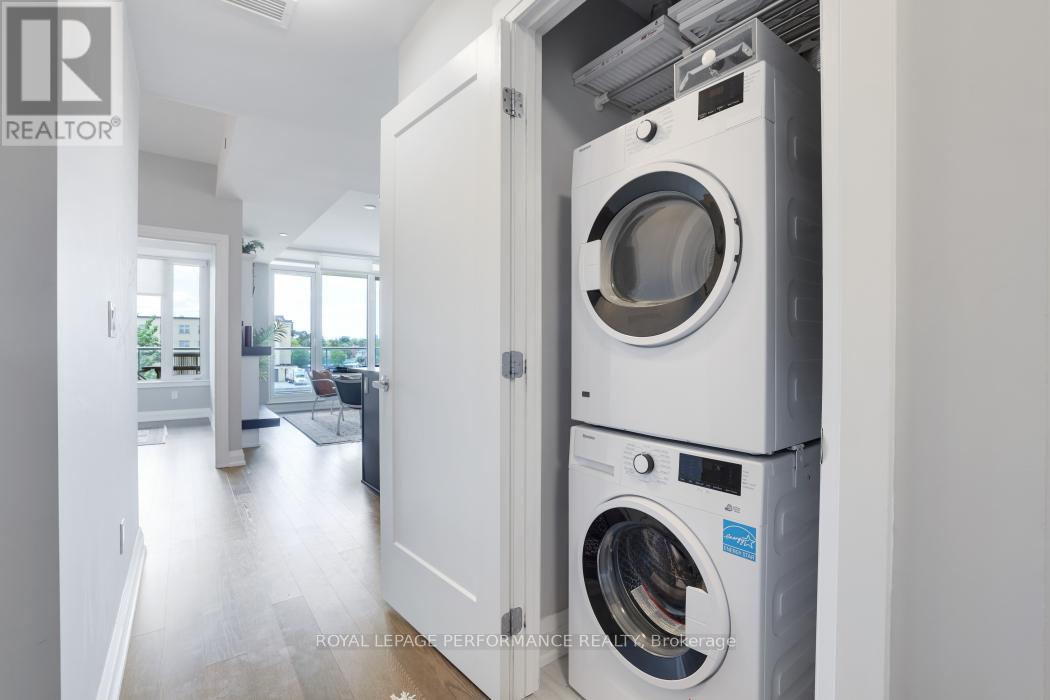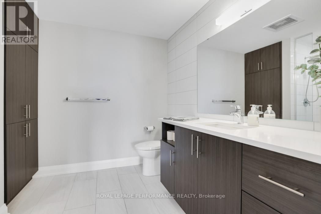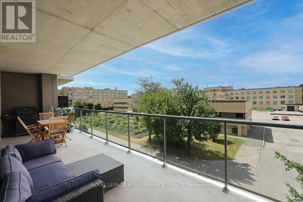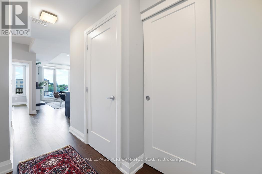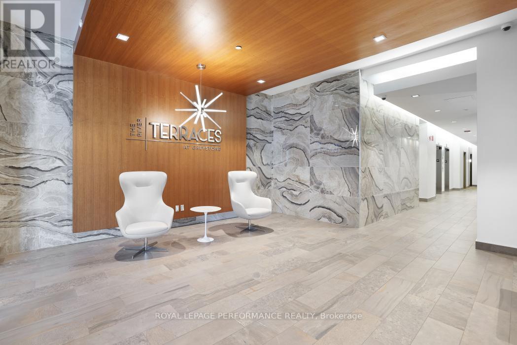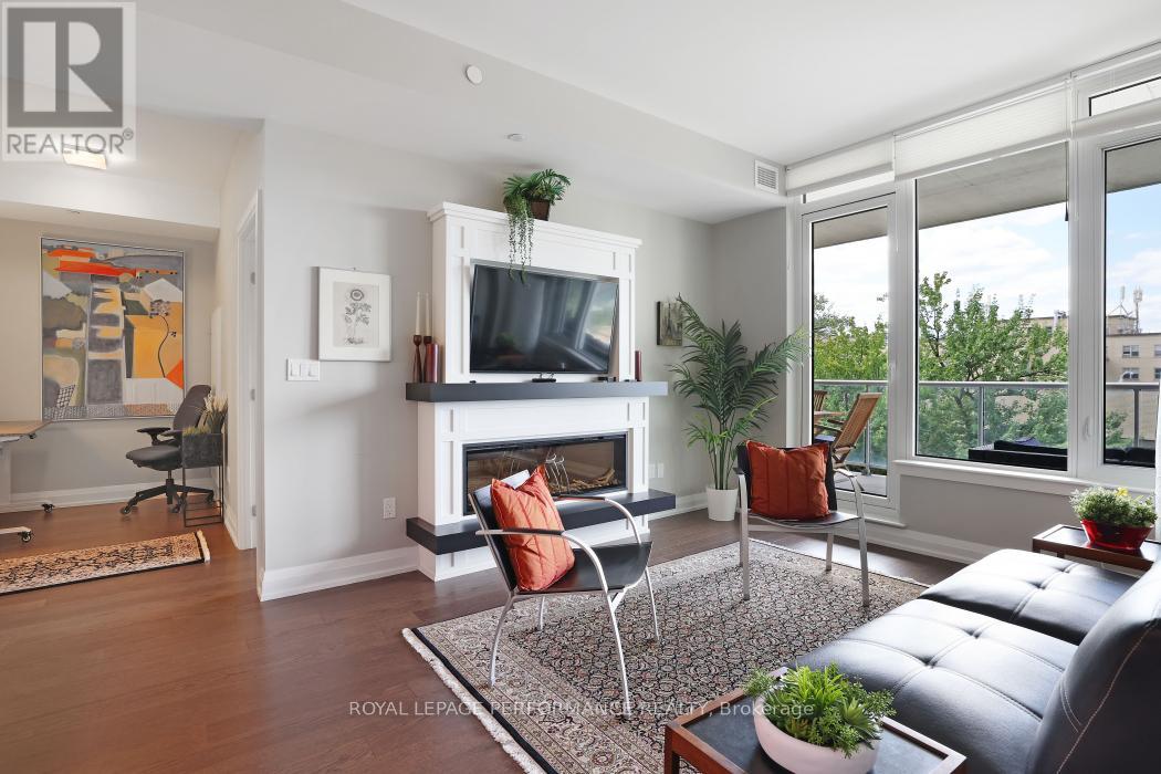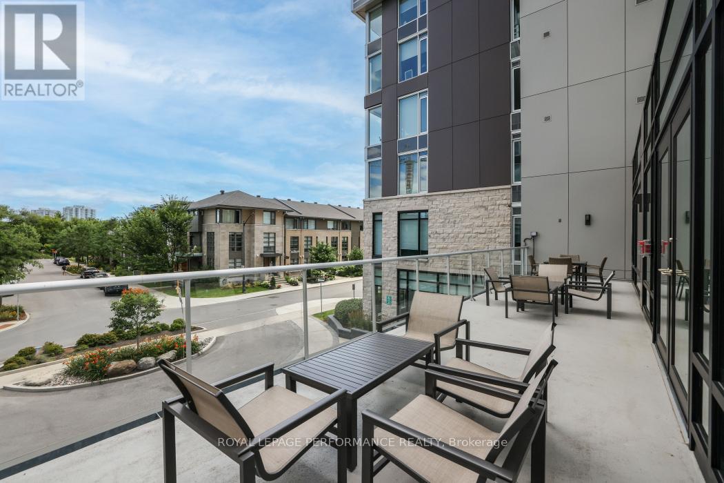 Set between Main Street and the Rideau River, The River Terraces at Greystone Village offers the convenience of being centrally located, while its proximity to the Rideau River and the Rideau Canal provides residents with easy access to nature and recreational pathways. Built by EQ Homes, this 2-bedroom + den, 2-bath Model 20 unit is approx. 1034sq. ft., and is ideal for anyone requiring space for a home office. The huge, covered balcony is approx. 258 sq. ft. and allows you to truly enjoy the warmer months with enough space for dining and seating areas, and includes a gas BBQ hookup. Ample daylight fills the interior space, giving a lively and warm feel throughout. The Primary Bedroom features a walk-through closet with built-in organizers, balcony access, and a spacious ensuite with a large walk-in shower and built-in floor-to-ceiling cabinets. Numerous upgrades including a Liebherr fridge, gas cooktop, dishwasher, and electric fireplace with custom millwork surround. This unit also offers ensuite laundry, neutral décor, hardwood & tile floors, underground parking for one and a storage locker. Condo amenities include a gym, lounge area with a library and fireplace, yoga studio, dining room with kitchen, kayak storage room, pet & car wash stations, plus commercial-grade laundry facilities. Don't forget the Main Street Farmers Market in Grande Allée Park, every Saturday from May-October. A wealth of diverse amenities are easily accessible, including the Flora Footbridge, uOttawa, Saint Paul University, downtown, the 417, Glebe amenities, Lansdowne Park, CHEO and the General and Riverside campuses of the Ottawa Hospital, plus cafés, services, and restaurants. 24-hour irrevocable on offers. (id:49712)