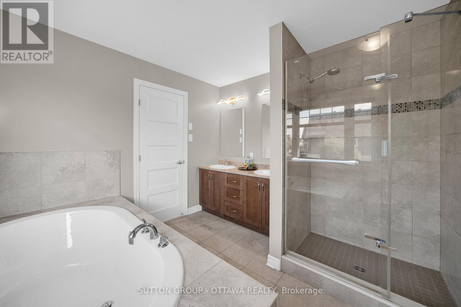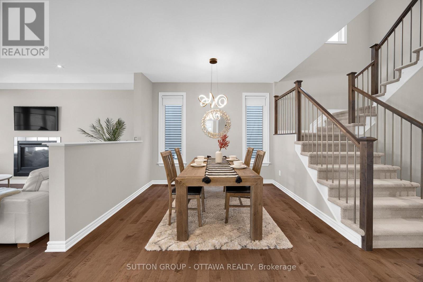 Welcome to 412 Odessa Way, a stunning 100 PRECENT ENERGY STAR CERTIFIED TARTAN ASHTON model with over 3000 SQ FT of living space, featuring 5 BEDROOMS, 4 BATHROOMS, plus a MAIN FLOOR DEN. From the widened INTERLOCK PATHWAY out front to the FULLY FENCED, SOUTH-FACING BACKYARD with INTERLOCK PATIO, this home is both inviting and low-maintenance. Inside, you'll love the soaring 9-FOOT CEILINGS, HARDWOOD FLOORS, and LIGHT CERAMIC TILES that create a CLEAN, CRISP feel throughout. The MAIN FLOOR DEN with FRENCH DOORS offers privacy, while the OPEN-CONCEPT layout flows beautifully with a FORMAL DINING ROOM, a MASSIVE FAMILY ROOM, and a CHEFS KITCHEN complete with BREAKFAST AREA. Thoughtful touches like the CATHEDRAL CEILING and ENLARGED PATIO DOORS flood the kitchen and breakfast nook with natural light and frame perfect views of the SOUTH-FACING BACKYARD. The OVERSIZED mudroom with built-ins keeps everything neat and organized. Upstairs, the PRIMARY SUITE is a showstopper with a SUN-FILLED BEDROOM, WALK-IN CLOSET, and a LUXURY ENSUITE with SOAKER TUB and GLASS SHOWER. This level also includes a 5-PIECE main bath, SECOND-FLOOR LAUNDRY, and 3 generous sized bedrooms. The FULLY FINISHED BASEMENT adds a 5TH BEDROOM, 4TH BATHROOM, and a HUGE REC ROOM perfect for a GYM, PLAYROOM, or HOME THEATER. All of this in the heart of Barrhaven, just minutes to HWY 416, COSTCO PLAZA, and walking distance to SCHOOLS, PARKS, and SHOPPING! (id:49712)
