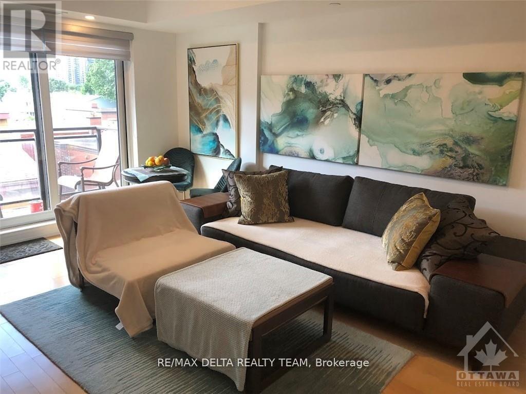 Embrace the urban lifestyle in this exceptional FULLY FURNISHED luxury condo unit nestled in the heart of Lower Town fronting onto the stunning Bordeleau Park and the Rideau River. Situated just a short walk from the renowned ByWard Market, this prime location offers unrivaled access to all the attractions and conveniences of downtown living. Step inside this 650 sqft unit to find an inviting open-concept layout, seamlessly integrating the living, dining, & kitchen areas featuring gleaming light oak hardwood flooring. Enjoy cooking in the kitchen complete with quartz counters, a wrap-around island, and breakfast bar. Embrace the ease of in-unit laundry, making daily chores a breeze. Beyond the confines of your new home, revel in the luxury of amenities, including a fully equipped gym for your fitness needs, a bike storage room, and a rooftop terrace with BBQs for entertaining. Don't miss the opportunity to experience the best of Ottawa's downtown living in this remarkable rental unit. (id:49712)
