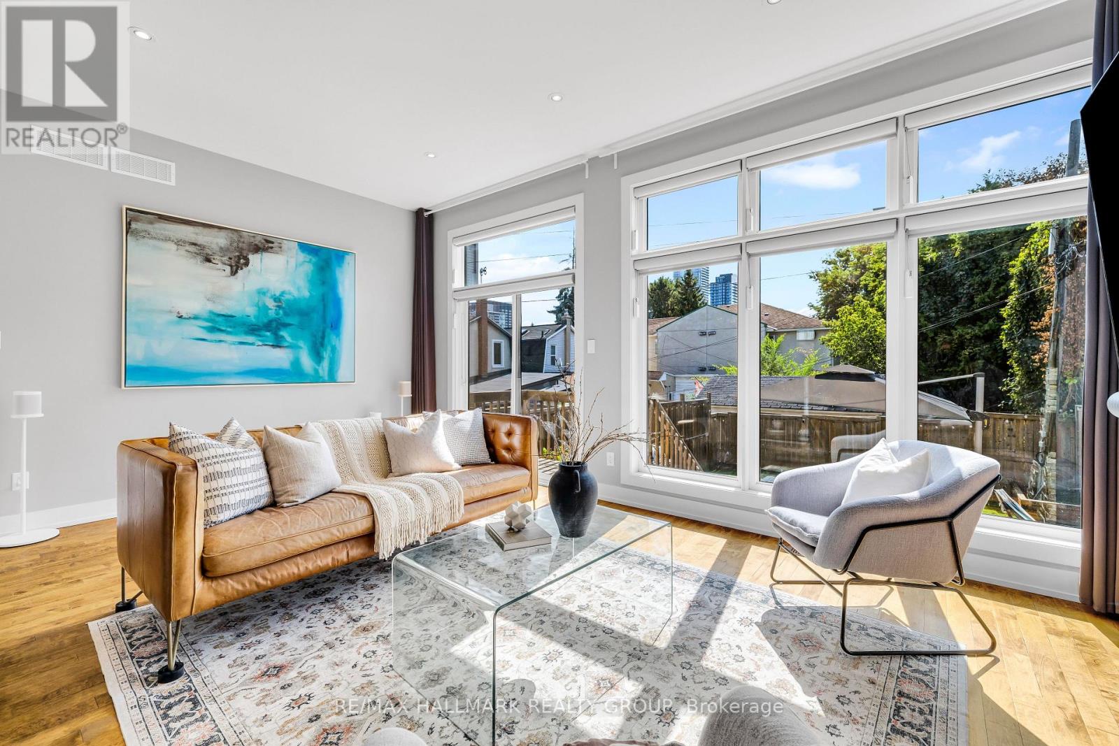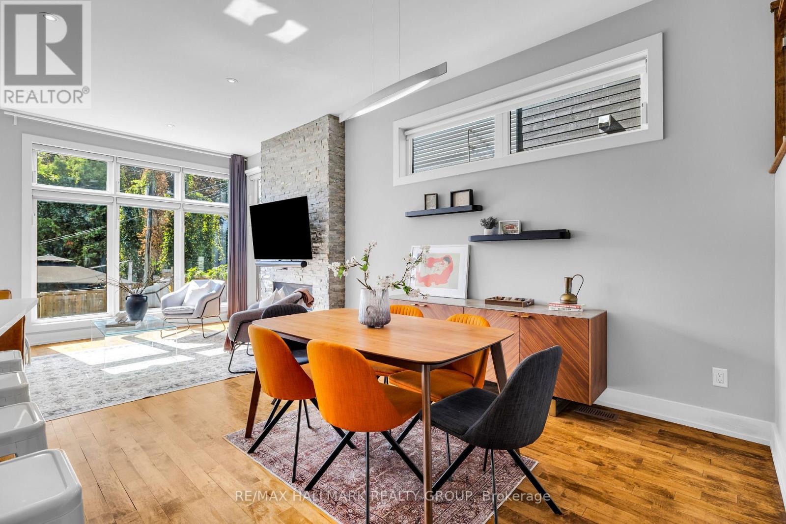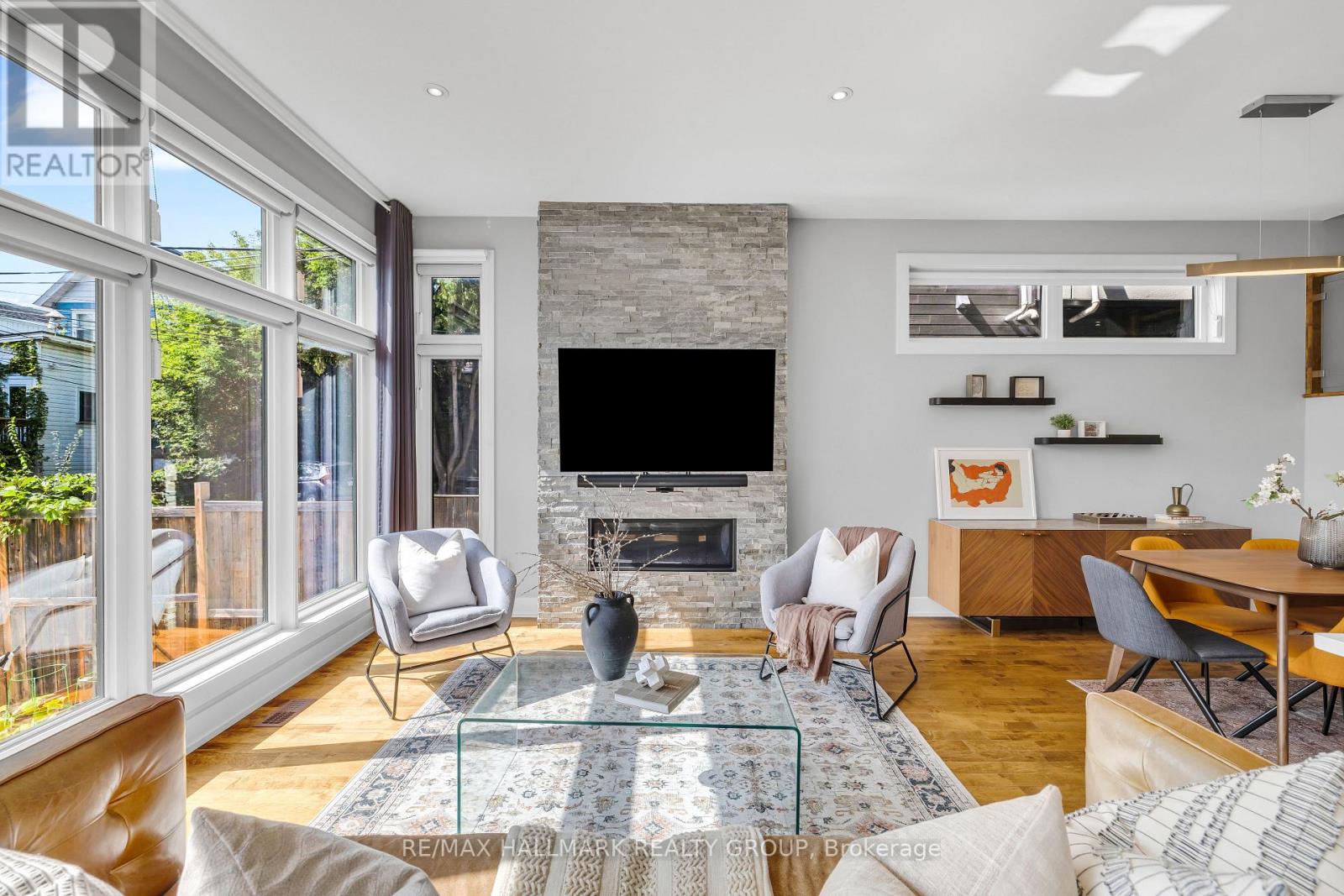 Nestled between trendy Little Italy, Civic Hospital, and vibrant Hintonburg, this stunning modern executive semi-detached home offers the perfect blend of luxury, space, and income potential, ideal for professional couples, downsizers, or families seeking stylish urban living. Enjoy being greeted with spectacular 14' ceilings in the entrance foyer, followed by soaring 10' ceilings throughout the remainder of the open-concept main floor featuring floor-to-ceiling windows, hardwood floors, and a show-stopping stone fireplace wall. At the heart of the home is a sleek, modern kitchen with a large island, quartz countertops, and high-end finishes, perfect for cooking and entertaining. Upstairs, enjoy 9' ceilings, a spacious primary suite with a walk-in closet and spa-like ensuite, two additional bedrooms (one with a private balcony), and convenient second-floor laundry. The fully finished lower level includes a stylish, income-generating one-bedroom apartment (currently rented for $1794/mth inclusive)with radiant heated floors, a private entrance, HRV system, stackable washer & dryer - ideal for rental income, extended family, or a home office suite. Outside, the south-facing, fully fenced backyard is a peaceful retreat with a large patio, low maintenance lawn, and raised garden beds. Smart home features include app-controlled blinds, lights, thermostat, garage door, video doorbell, and full security system, plus hardwired RJ45 internet points in all bedrooms and the living room. Additional perks include inside access from the garage and a spacious mezzanine above it, great for extra storage. Steps to Ottawa's best shops, cafés, bike paths, transit, and parks, and minutes to Dows Lake, the Rideau Canal, Chinatown, the Glebe, and year-round festivals and outdoor recreation. (id:49712)