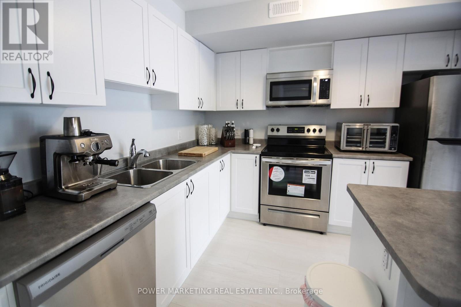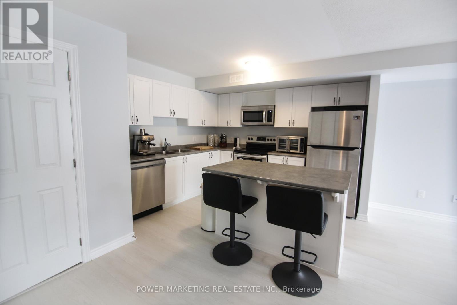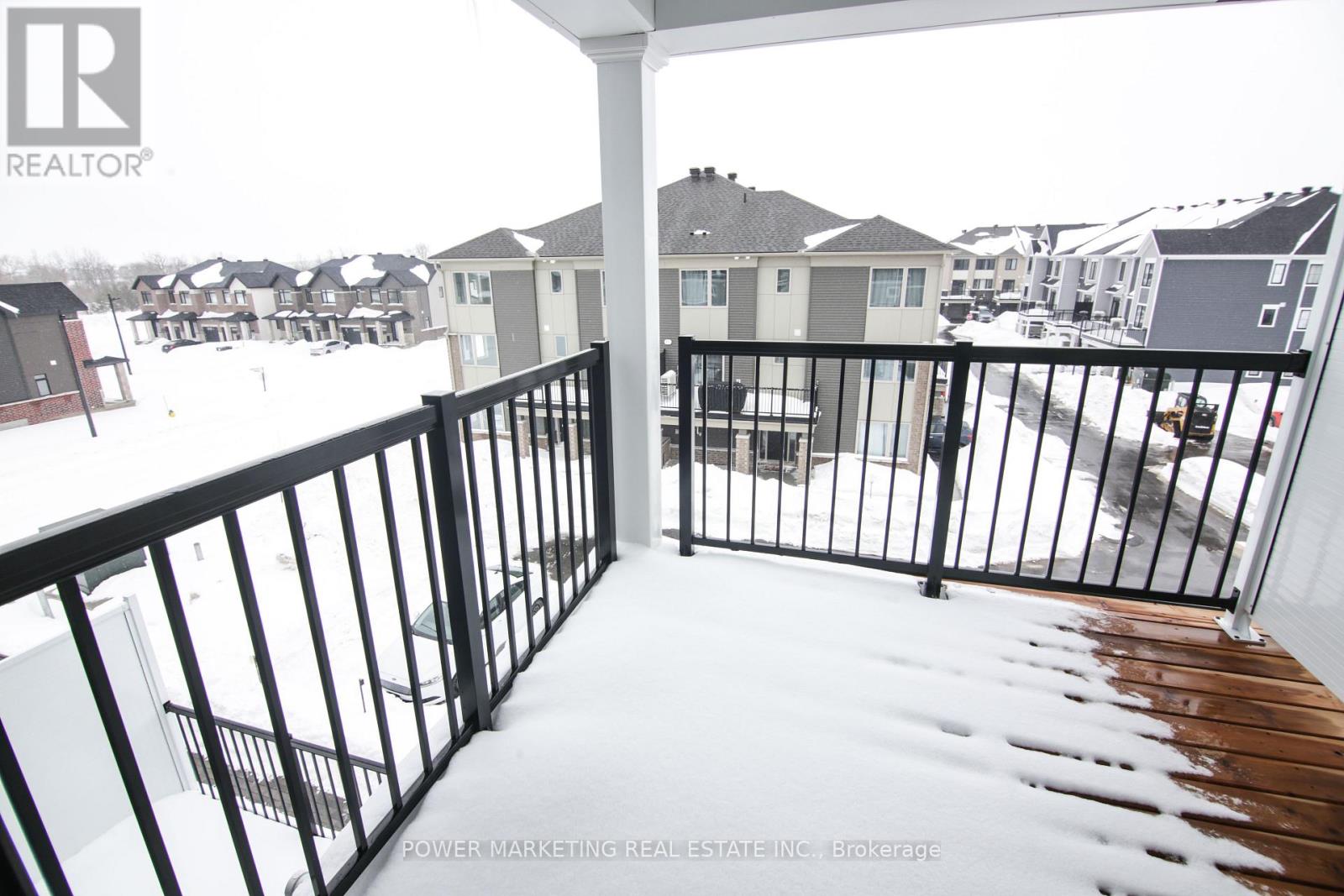 Welcome to this bright and spacious 2-bedroom, 2-bath stacked condo in the heart of Barrhaven, offering exceptional natural light, thoughtful upgrades, and the convenience of two balconies. The welcoming foyer features mirrored closets and leads to an open-concept second level with oversized windows and a comfortable flow between living and dining spaces. A large private balcony extends the main living area and provides an ideal space for morning coffee or relaxed evening gatherings. The upgraded kitchen includes a generous island, ample cabinetry, and modern finishes that make meal preparation both practical and enjoyable. The upper level features two well-proportioned bedrooms, each with a walk-in closet. The primary bedroom offers direct access to a full bathroom, while the second bedroom benefits from its own private balcony. Additional features include upgraded pot lighting, WiFi-enabled light switches, and mirrored closets in both the foyer and living areas. One parking space is included, with an additional parking spot available at $150/month. Located within minutes of shopping, restaurants, schools, parks, Costco, and public transit, this property delivers comfort, convenience, and a desirable Barrhaven lifestyle. (id:49712)