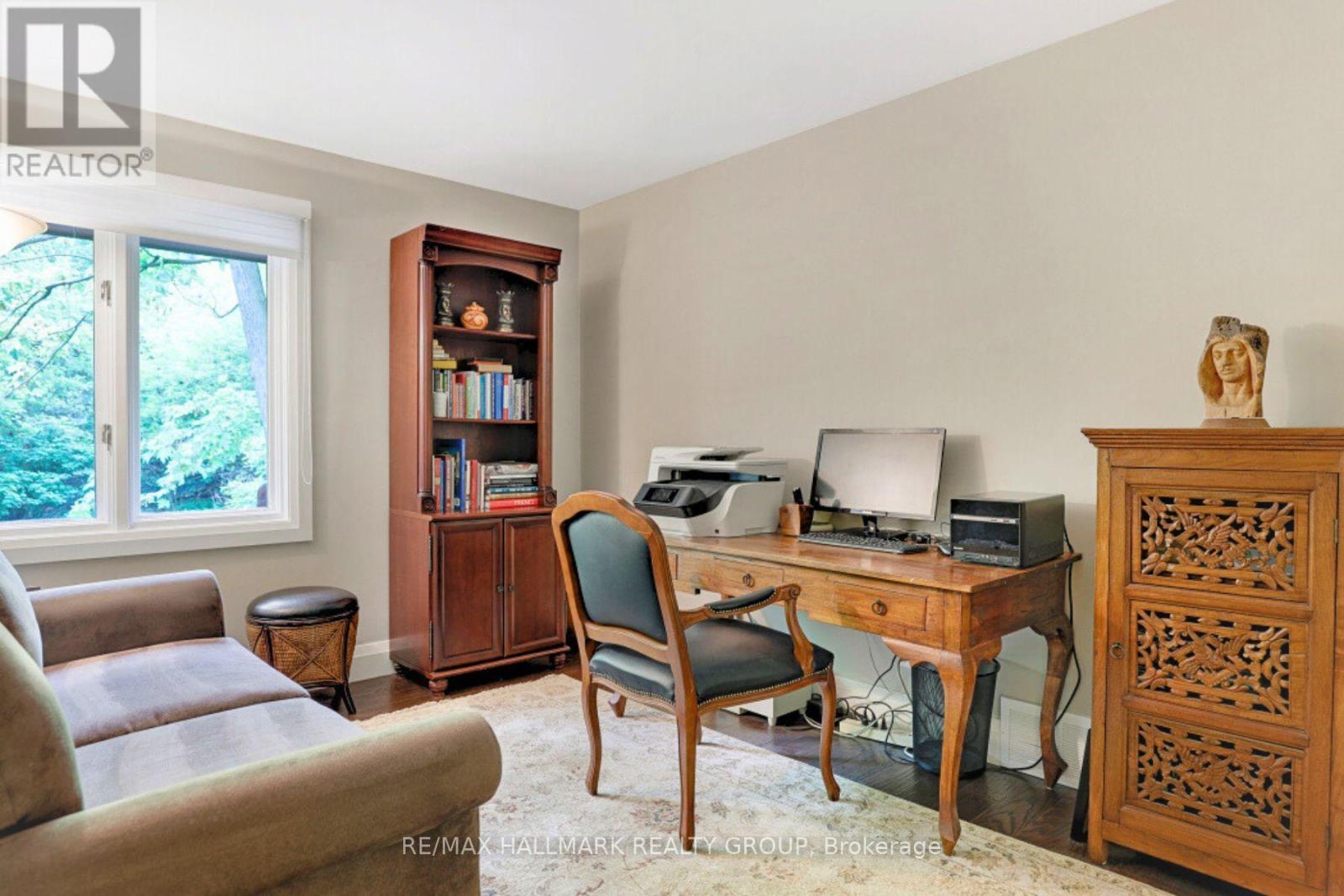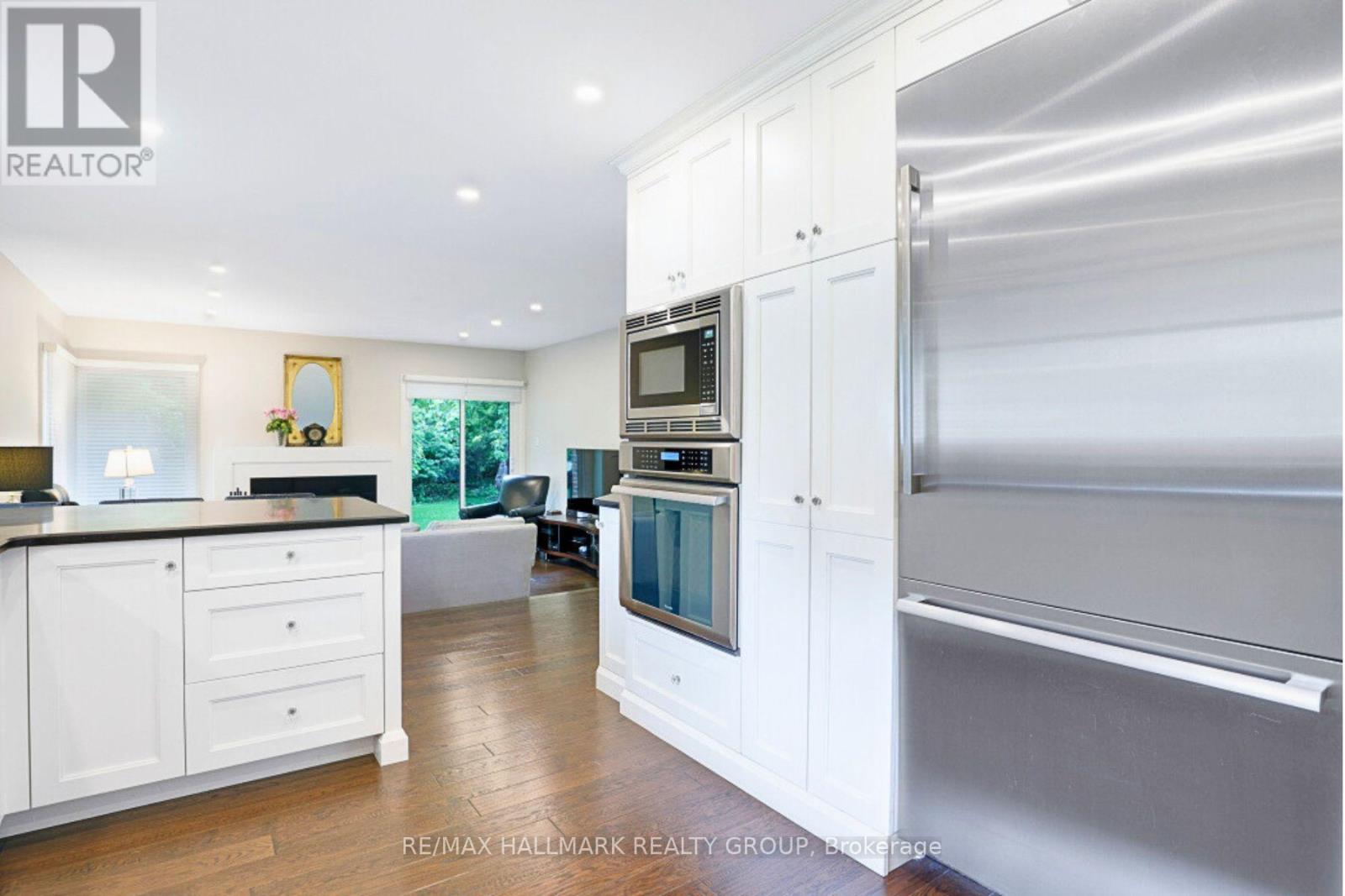 TIMELESS ELEGANCE IN A PARKLAND SETTING -- Prestigious Bungalow Near the Ottawa River. Nestled on a quiet street in one of Ottawa's most desirable enclaves, just steps from the scenic riverfront and parkway, this custom-built bungalow blends sophistication, comfort, and serenity. Surrounded by lush greenery on a magnificent 187-foot deep lot, it offers a peaceful retreat in a prestigious neighbourhood of executive homes. Inside, elegant upgrades and refined finishes elevate every room. Rich hardwood flooring flows through the gracious main level, beginning with a welcoming foyer and continuing into the formal living room, where a large bay window frames views of the treed landscape. Entertain with ease in the grand dining room, designed for memorable gatherings. The heart of the home is the beautifully renovated kitchen, featuring timeless white cabinetry, high-end appliances, and a seamless connection to the inviting family room. A few steps down, the family room exudes warmth with its gas fireplace and direct access to the private garden patio. The tranquil primary suite offers a restful escape, complete with a luxurious ensuite and walk-out access to the backyard. Two additional bedrooms and a stylish main bathroom complete the main level. The fully finished lower level provides exceptional versatility with a spacious recreation/media room, fourth bedroom, full bath, and office area perfect for guests, hobbies, or extended family living. Enjoy year-round natural beauty from your own backyard, with mature trees, a large stone patio, and complete privacy. Double garage, updated systems, and an unbeatable location just moments to the Ottawa River, NCC trails, and top schools. A rare opportunity to own a truly special home in a setting that feels miles away from the city yet minutes to downtown. *Some photos have been virtually staged. 24 Hours Irrevocable as per form 244. (id:49712)
