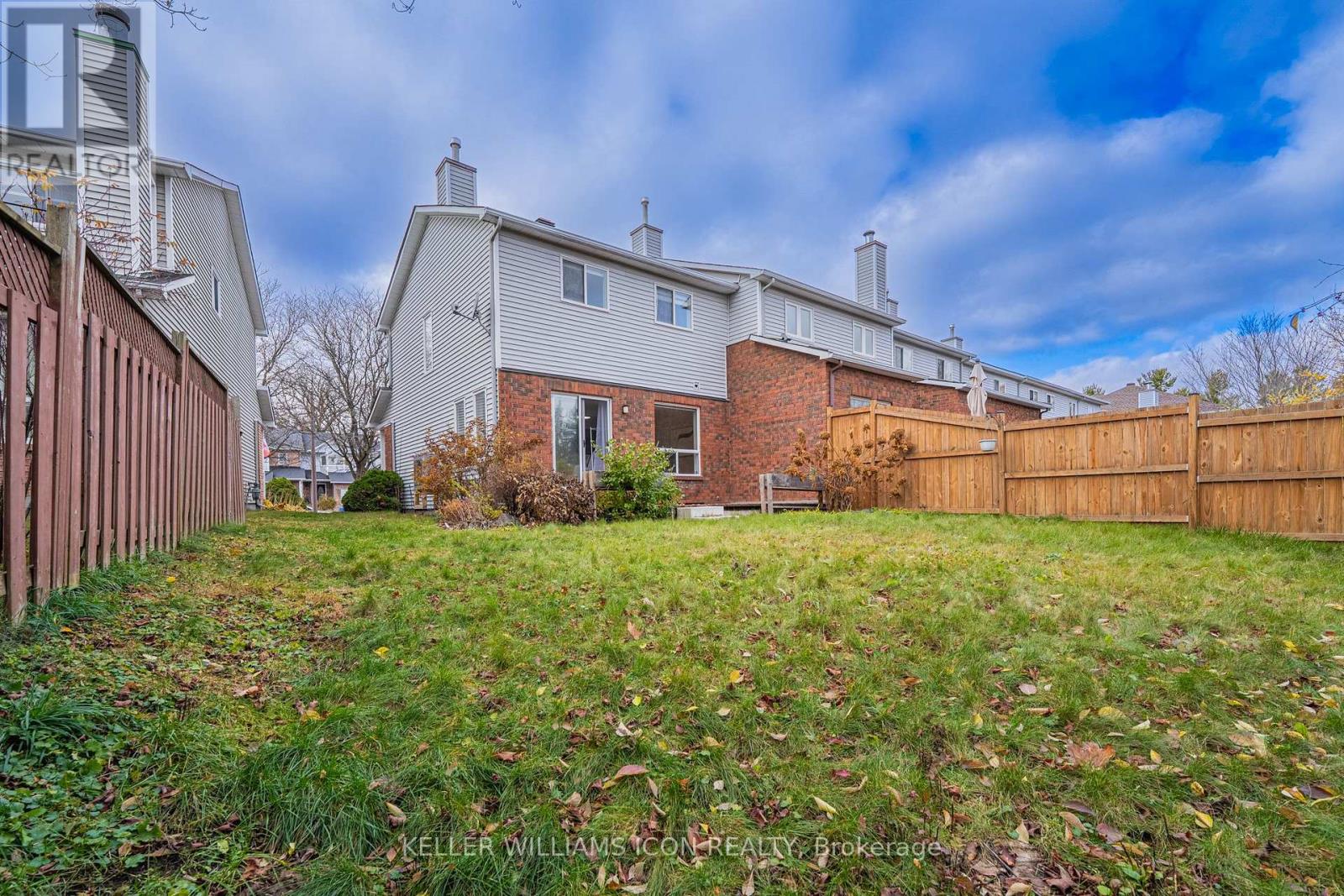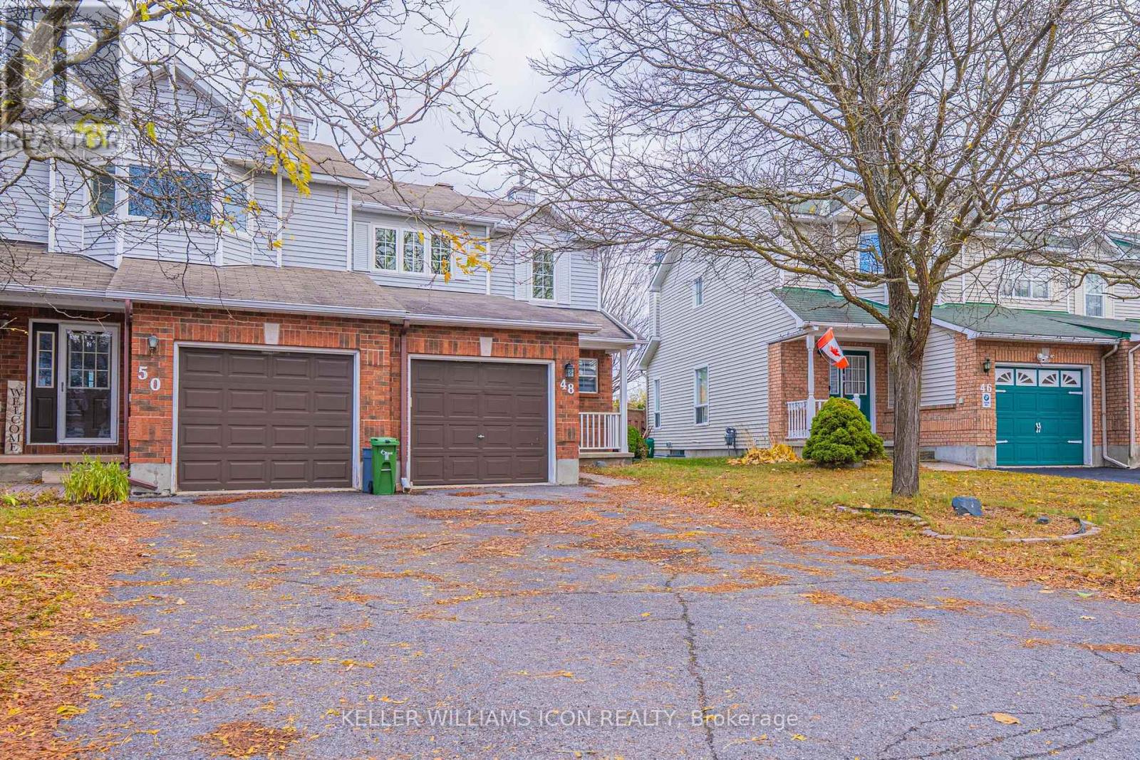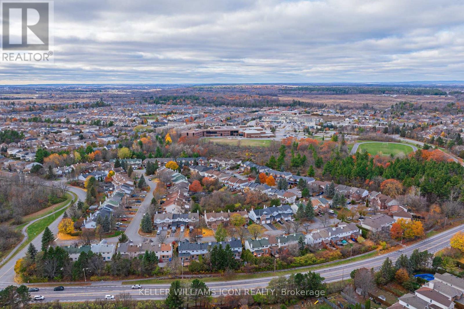 Charming 3-bedroom end-unit townhome in the highly sought-after Kanata Lakes community. Ideally located within top-ranked school zones - Stephen Leacock Public School (25/3032) and Earl of March Secondary School (8/689) - both highly regarded for their academic excellence. School bus pick-up points are conveniently close by, adding to the home's family-friendly appeal. Enjoy excellent privacy with no rear neighbours, backing onto Kanata Avenue - a quiet, 50 km/h residential street. The cozy front porch is the perfect spot to enjoy your morning coffee or unwind after a long day. The main level features a welcoming foyer, a bright open-concept living and dining area, and laminate flooring (2018) throughout. The spacious kitchen includes a breakfast bar, ideal for casual meals and entertaining.Upstairs offers laminate flooring (2018), a carpeted staircase (2018), and a generous primary bedroom with updated windows (2014), a full-wall closet, and a brand-new ensuite bath (2025). Two additional bedrooms and a shared main bath complete the level.The finished basement provides a versatile recreation area, laundry space, and storage. The oversized single garage offers additional room for storage or a small workshop - a rare and valuable feature in this area. Recent updates include: Roof 2010, windows 2014, laminate flooring & carpeted staircase 2018, deck painted 2022, heat pump, FOTILE range hood & added insulation 2024, primary ensuite renovated & modern light fixtures 2025. A well-maintained, move-in-ready home in one of Kanata's most desirable and family-oriented neighbourhoods - combining comfort, convenience, and outstanding value. (id:49712)