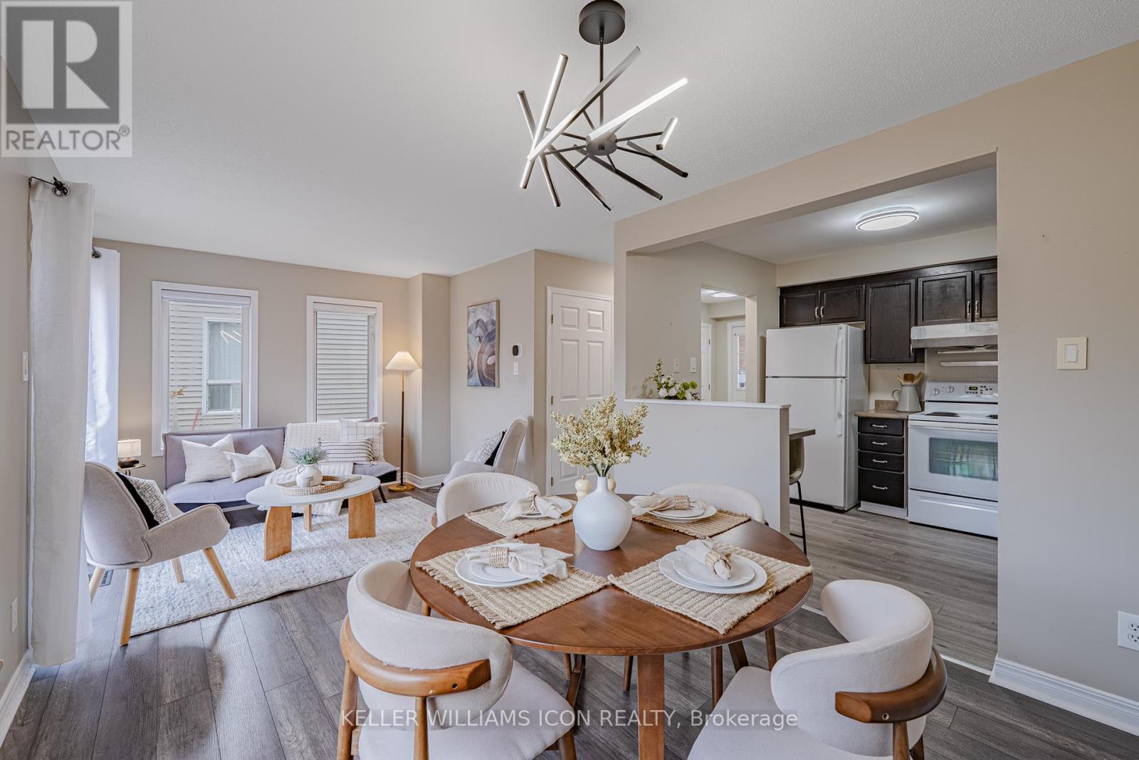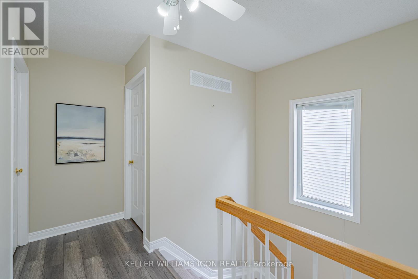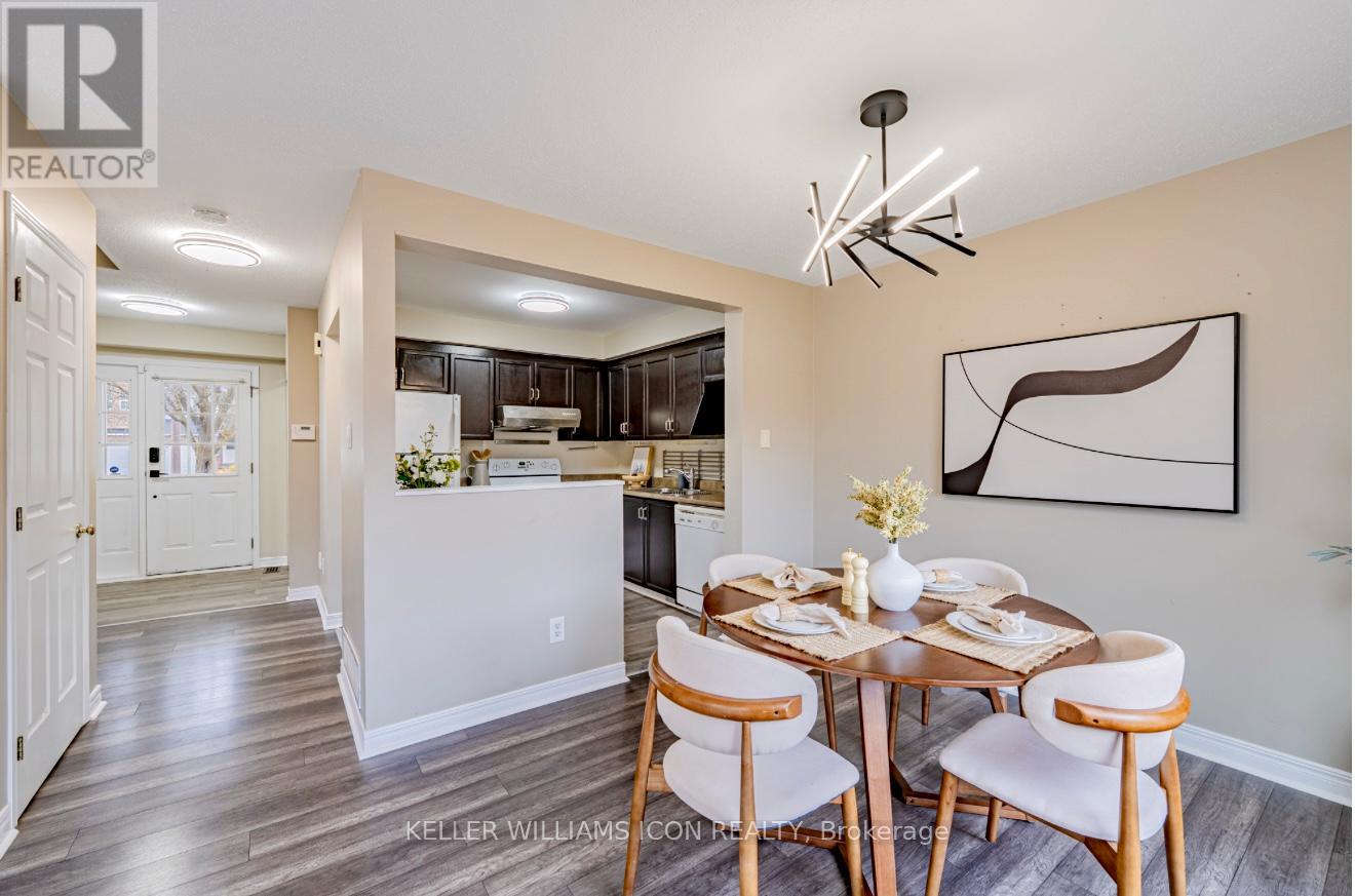 Charming 3-bedroom end-unit townhome in the highly sought-after Kanata Lakes community. Ideally located within top-ranked school zones - Stephen Leacock Public School (25/3032) and Earl of March Secondary School (8/689) - both highly regarded for their academic excellence. School bus pick-up points are conveniently close by, adding to the home's family-friendly appeal. Enjoy excellent privacy with no rear neighbours, backing onto Kanata Avenue - a quiet, 50 km/h residential street. The cozy front porch is the perfect spot to enjoy your morning coffee or unwind after a long day. The main level features a welcoming foyer, a bright open-concept living and dining area, and laminate flooring (2018) throughout. The spacious kitchen includes a breakfast bar, ideal for casual meals and entertaining.Upstairs offers laminate flooring (2018), a carpeted staircase (2018), and a generous primary bedroom with updated windows (2014), a full-wall closet, and a brand-new ensuite bath (2025). Two additional bedrooms and a shared main bath complete the level.The finished basement provides a versatile recreation area, laundry space, and storage. The oversized single garage offers additional room for storage or a small workshop - a rare and valuable feature in this area. Recent updates include: Roof 2010, windows 2014, laminate flooring & carpeted staircase 2018, deck painted 2022, heat pump, FOTILE range hood & added insulation 2024, primary ensuite renovated & modern light fixtures 2025. A well-maintained, move-in-ready home in one of Kanata's most desirable and family-oriented neighbourhoods - combining comfort, convenience, and outstanding value. (id:49712)