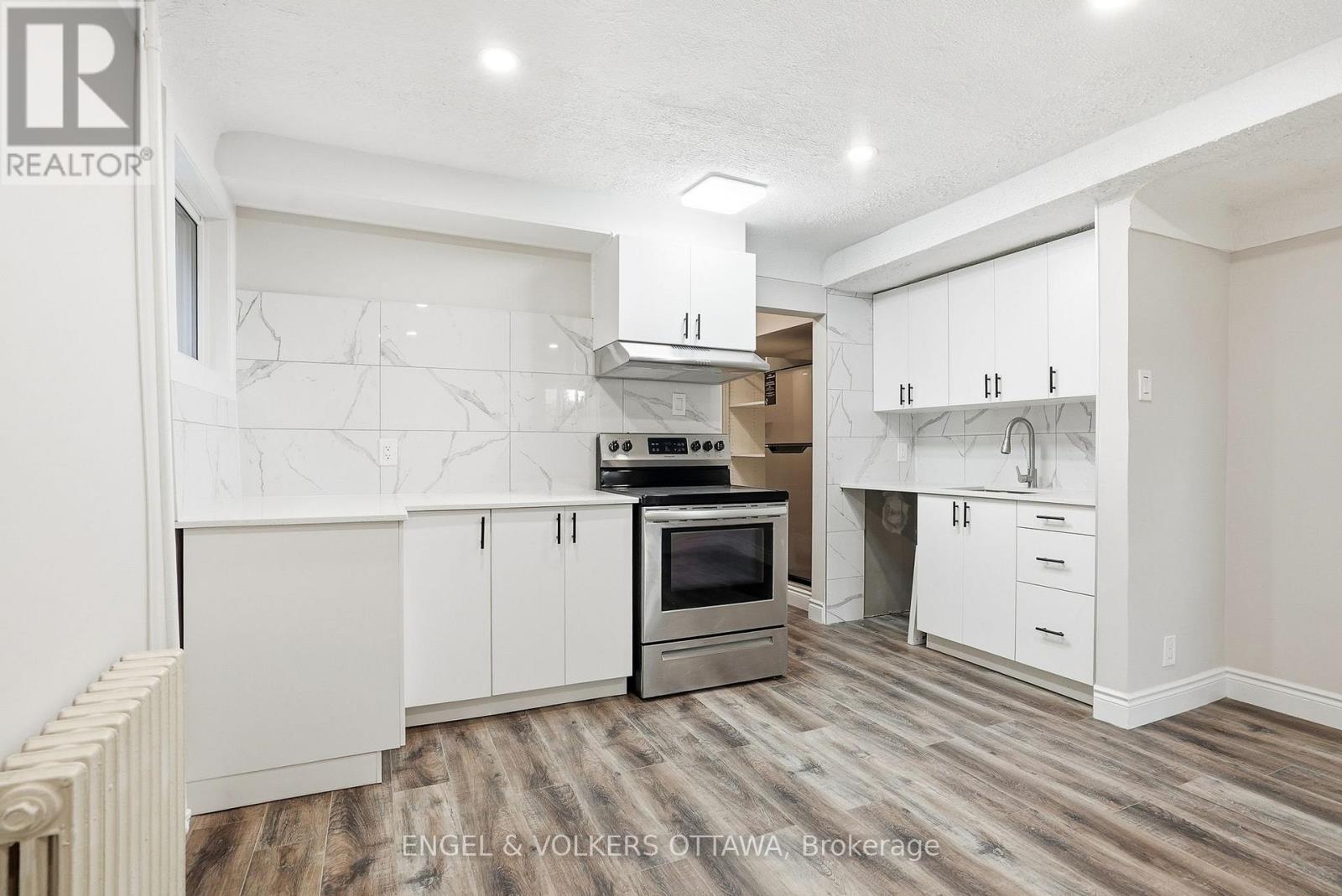 Newly renovated lower-level apartment in one of Ottawa's most sought-after neighbourhoods - Manor Park! This bright, clean, and spacious unit is just steps from parks, walking trails, the Ottawa River, transit, restaurants, shopping, and more. Beautifully updated, this 1-bedroom, 1-bathroom apartment features its own private entrance, sleek luxury vinyl flooring throughout, and plenty of natural light. The open-concept living and kitchen area offers modern stainless steel appliances, quartz countertops, and ample cabinet space. Additional highlights include in-suite laundry and an outdoor parking spot for added convenience. Heat and water are included in the rent; tenants are responsible for hydro. Don't miss out on this great opportunity to live in Manor Park! (id:49712)