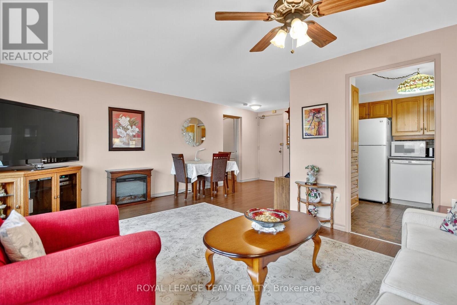 Welcome to this bright and spacious 2 bedroom, 1 bathroom condo, located on the 5th floor of a well-maintained building that combines comfort, style and convenience. Whether you are a first-time buyer, downsizer or investor, this apartment offers an excellent opportunity to own a functional and stylish space in a great location. Inside the unit you will find a thoughtfully designed layout featuring an open concept living and dining area, perfect for both relaxing and entertaining. The kitchen offers plenty of cabinet and counter space, plus a bonus pantry for extra storage. Both bedrooms are generously sized with large closets and windows that bring in plenty of natural light. A full 4-piece bathroom and a large balcony with city views complete the unit. All-inclusive condo fees cover heat, hydro, and water. The building boasts a wide range of amenities, including rooftop terrace with stunning views of the Ottawa River, penthouse party room, gym, sauna, games room, library, workshop, and two guest suites, shared laundry on every floor, heated underground parking (spot #46) and storage lockers (#513), bike storage, car wash station, outdoor pool and a picnic area with BBQ & gazebo. Located within walking distance to the Ottawa River, Andrew Haydon Park, Bayshore Shopping Centre, Cineplex Theatre, schools, public transit and with quick access to Highway 417, this condo offers the perfect blend of lifestyle, location and value. (id:49712)