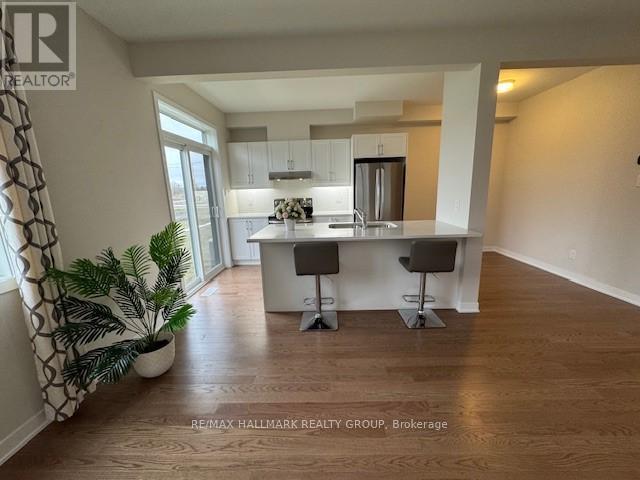 Welcome to this brand new 1,790 sq. ft. Nova End townhome in Kanata near the Technology Park. Bright end unit with nine-foot ceilings, hardwood on the main level, oversized windows, LED lighting and a smart thermostat. The kitchen offers LG stainless steel appliances, a pull-out faucet and an oversized quartz countertop. The second level includes wall-to-wall Berber-style carpet and a convenient laundry area. Finished basement recreation room. Ceramic tile in the foyer, powder room and bathrooms. Includes garage door opener, window rods and bathroom blinds. Snow removal for the laneway is included for the first year. Excellent location close to high-tech employers, schools, parks and shopping. Tenants are responsible for heat, hydro, water and sewer, internet, tenant insurance, lawn care, furnace filters, light bulbs, general cleanliness and minor maintenance caused by normal use. Brand new, never lived in and move-in ready. A clean start for the right tenant. (id:49712)