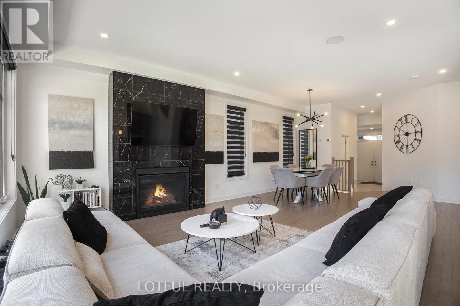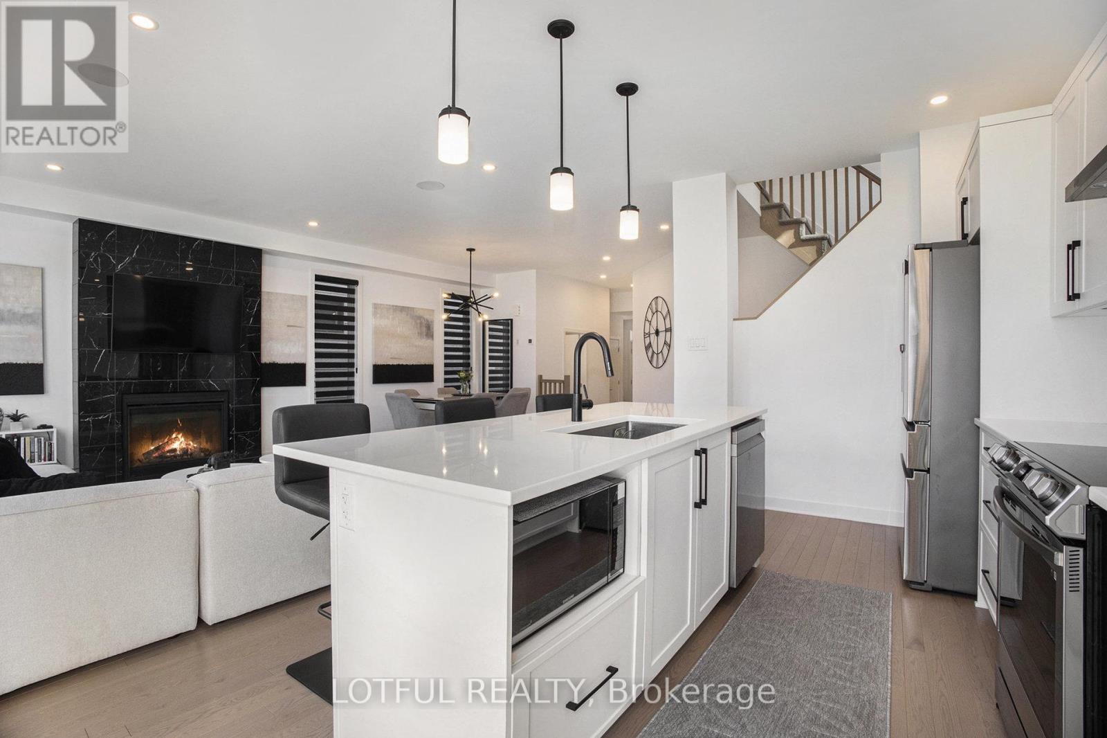 Step into this exceptional 3-bedroom home, where modern elegance meets thoughtful design. Nestled on a quiet, family-friendly street near top-rated schools, this residence offers the perfect blend of comfort, style, and convenience. The spacious, open-concept main floor is ideal for entertaining, featuring a chef-inspired kitchen with quartz countertops, a large island, and a cozy gas fireplace in the living room that adds warmth and charm. A bright and impressive foyer welcomes guests, while the powder room and inside access to the double garage enhance everyday convenience. Upstairs, the primary suite is a true retreat, featuring a beautiful accent wall, a luxurious ensuite with a soaker tub and his-and-her sinks, and a walk-in closet. Two additional bedrooms, a versatile loft area, and convenient second-floor laundry make daily living effortless for families. The fully finished basement offers a spacious family room, full bathroom, and ample storage, perfect for movie nights, playtime, or hosting guests. Enjoy outdoor living in the fully fenced backyard, ideal for relaxing or entertaining. Just minutes from parks, schools, the Orléans Health Hub, and major transit routes, this home seamlessly combines style, comfort, and convenience. (id:49712)