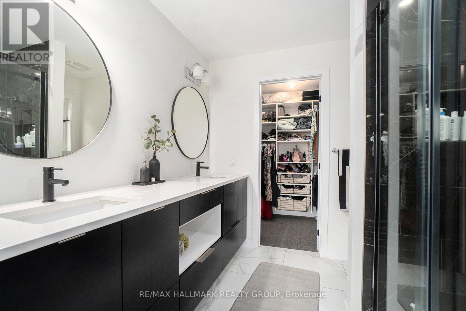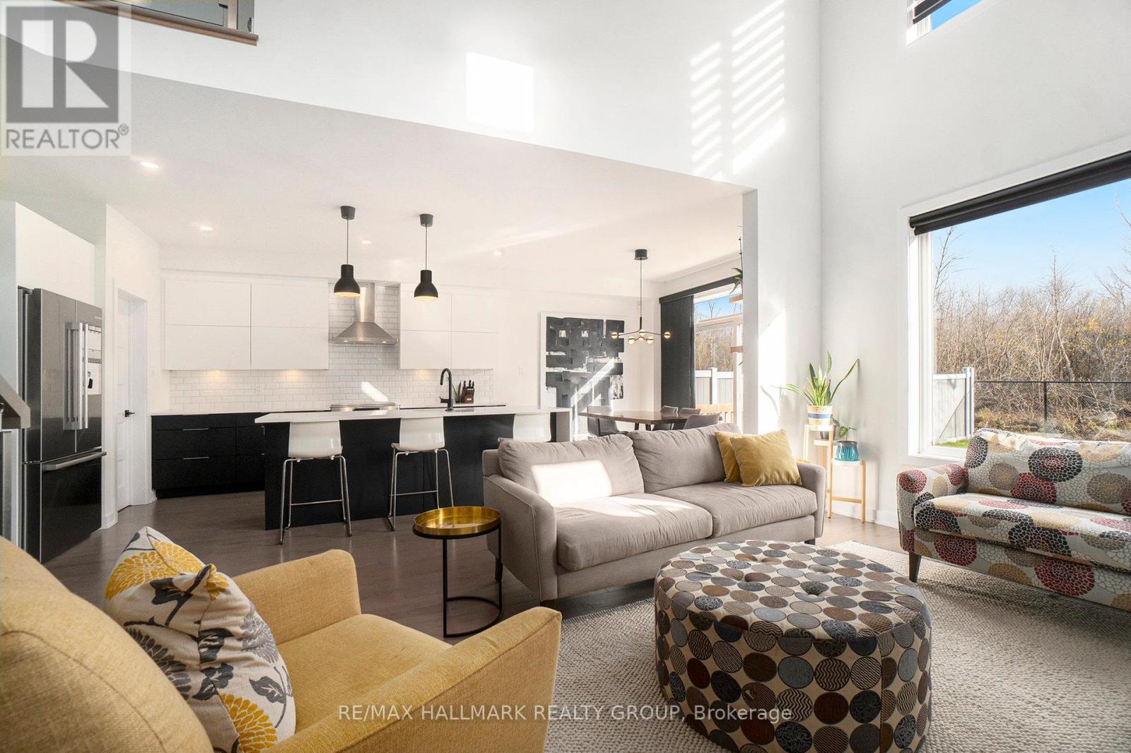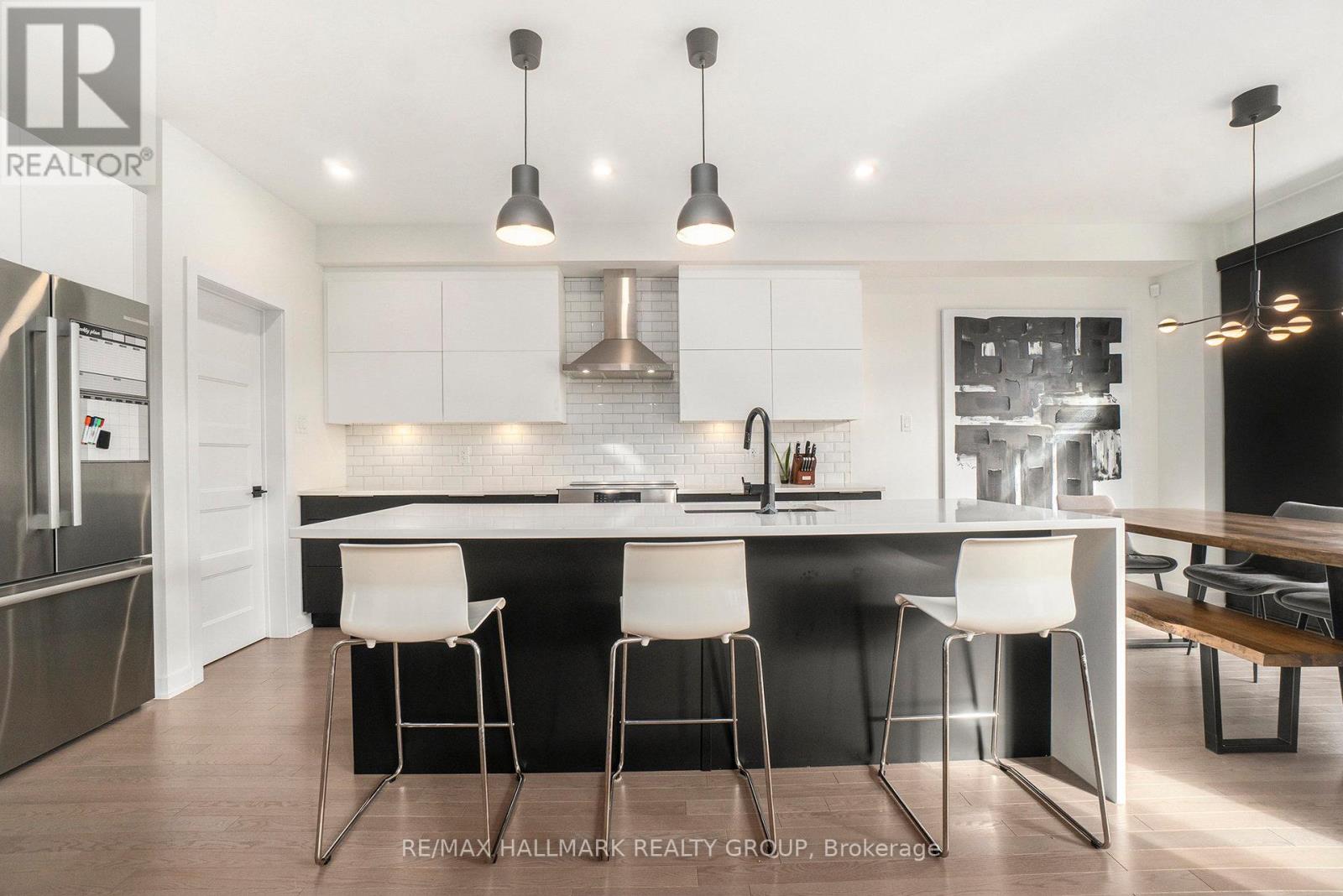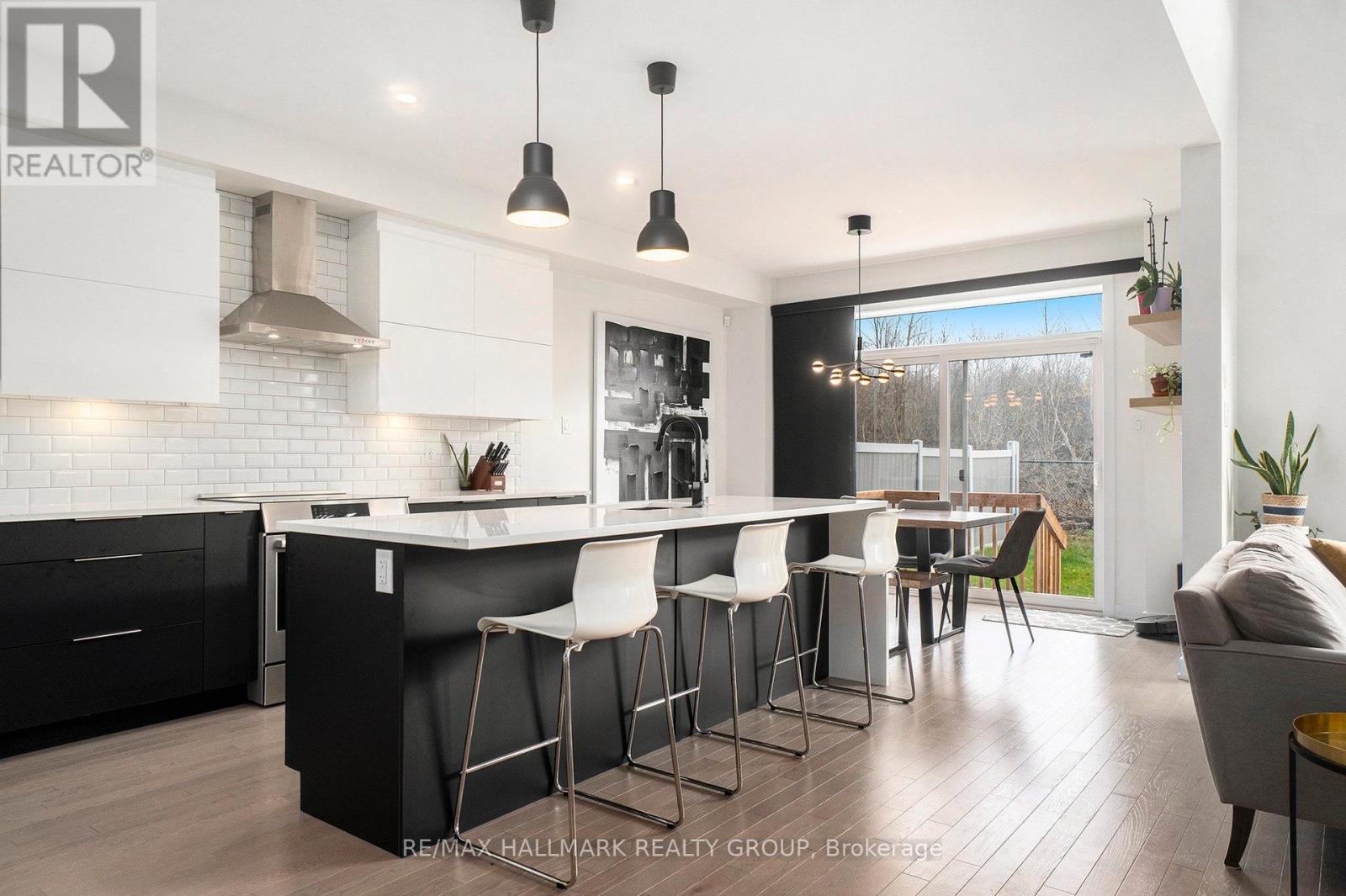 Welcome to an exceptional opportunity to own a truly upgraded single-family home in the highly sought-after Findlay Creek community. This striking 3-bedroom, 3-bathroom residence has been elevated by approximately $100,000 in premium upgrades, offering a level of sophistication rarely found in the area. From the curb, the home makes a commanding impression with its higher exterior elevation, immediately signaling the quality within. Step inside and be greeted by the dramatic entryway, featuring oversized, designer tiles, leading into a space defined by architectural elegance. The main living areas and the entire upper level boast rich, continuous hardwood flooring, connected by sleek hardwood stairs and a modern glass and metal railing. The heart of the home is the chef's kitchen, a true showpiece featuring premium custom cabinetry, a stunning waterfall quartz countertop, and a dedicated full coffee bar-perfect for entertaining. Upstairs, the luxury continues into the primary suite, where the ensuite offers the ultimate comfort with a heated bathroom floor. No detail has been overlooked, including practical luxuries like custom closet systems installed in all three bedrooms. This is a turn-key property where high-end craftsmanship meets contemporary style, offering a privileged lifestyle in a fantastic neighborhood. (id:49712)