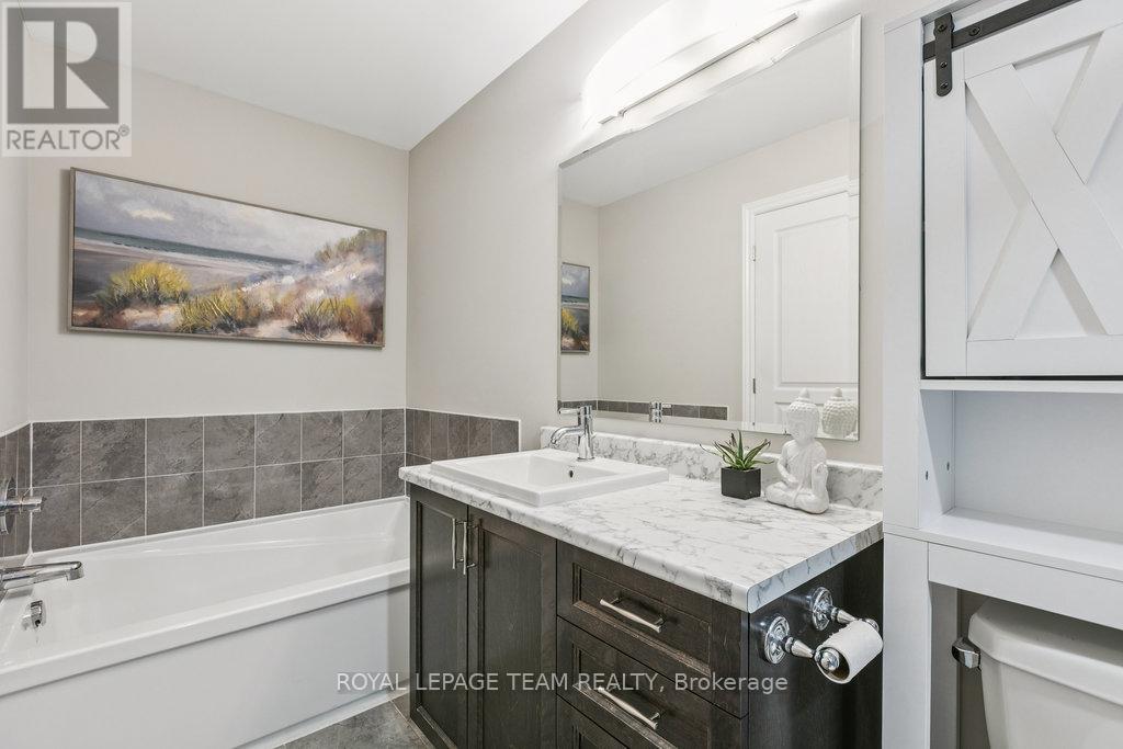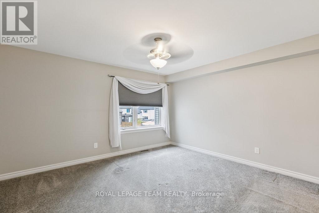 Beautifully upgraded Richcraft Addison townhome on a premium oversized lot in Riverside South. This bright and stylish 3-bedroom home offers a well-designed layout with quality finishes throughout. The open-concept main floor features a modern kitchen with granite counters, stainless steel appliances, and a dining area that flows into the living room. Vaulted ceilings, large windows, and a custom stone fireplace create an inviting space for relaxing or entertaining. Upstairs are three generous bedrooms and a convenient laundry room. The primary suite includes a walk-in closet and a 4-piece ensuite with a glass shower and separate tub. The finished lower level adds versatile living space-ideal for a media room, home office, or gym. Outside, enjoy the fully fenced yard with a large deck and low-maintenance shed. (id:49712)