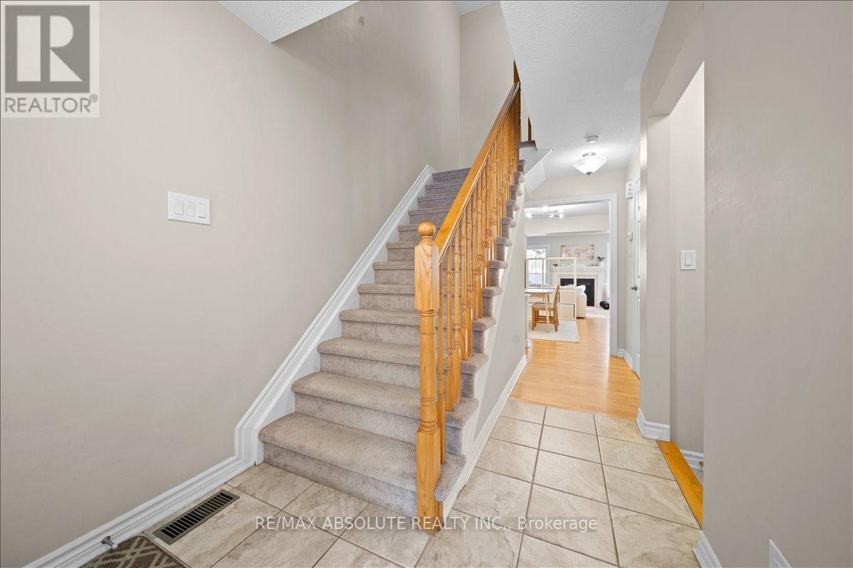 LGorgeous home on a VERY desired circle! This LARGE model offers a main floor den at the very front of the home, perfect if you work from home (currently used as a mudroom)! HARDWOOD THROUGHOUT! NEW modern lighting. Updated kitchen offers stainless appliances & LOTS of shaker style cabinets. There is a gas fireplace in the great room. The formal dining room could also be a super fun playroom.. this is one of the biggest townhomes available! 2nd level laundry! The big master has a 4 piece ensuite! 2 additional good size bedrooms complete the 2nd floor. Professionally FULLY finished bright lower level complete with a 3rd FULL bath. FENCED yard! A must see! Possession can be Dec 1ST- Utilities are EXTRA. Pets restriction in place (id:49712)