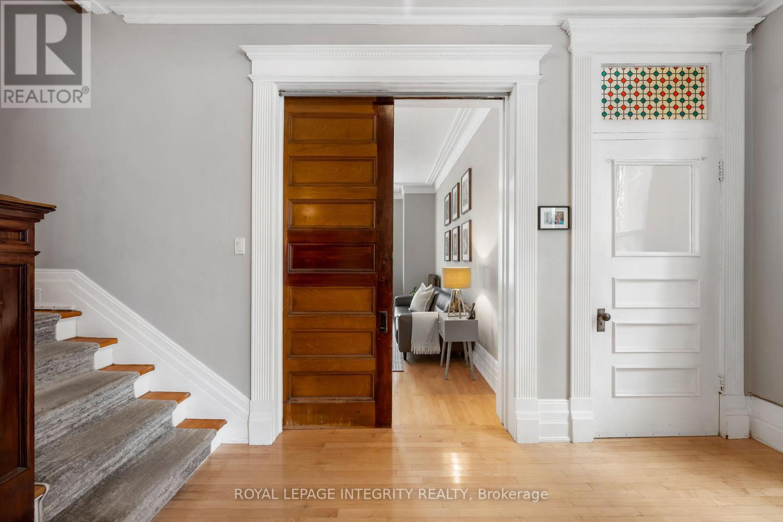 Welcome to 553 Gilmour Street, a rare & remarkable 6-bed, 2.5-bath home in the heart of Centretown, combining timeless charm w/ generous living spaces across 3 beautifully appointed levels. From the moment you step into the expansive foyer, this home sets a memorable tone. To one side, a grand living room welcomes you w/ soaring ceilings, a large picture window framing the charming streetscape & a cozy gas fireplace. Across the hall, the formal dining room offers an impressively sized space, truly a host's dream! The spacious kitchen features SS appliances, abundant cabinetry & ample counter space for cooking and entertaining. Just off the kitchen, a second set of stairs provides additional access to the upper level. The rear of the home features a mudroom, adding everyday convenience with direct access to the backyard & parking. Beneath the main staircase is a charming, multi-purpose nook, perfect for outerwear storage or a cozy reading corner. Upstairs, the 2nd floor offers 3 generously sized bedrooms (one w/ a private balcony!), each filled with natural light from the home's beautiful windows. An updated 3-piece bathroom completes this level. The 3rd level truly elevates the home's character, w/ stunning hardwood floors & charming architectural lines. Here, you'll find two additional bdrms, incl. the primary suite, complete w/ a spacious walk-in closet. A beautifully renovated 4-piece bath, ft. dual sinks, a freestanding tub & a large walk-in shower. The finished basement provides valuable additional living space, perfect as a family room, or flex space. Outside, the private backyard offers a quiet escape ideal for summer gatherings or simply relaxing. Situated moments from Ottawa's most vibrant neighbourhoods and countless shops & restaurants, this location offers unmatched walkability. A truly rare opportunity to own a grand, character-filled home in one of Ottawa's most well-connected communities. (id:49712)