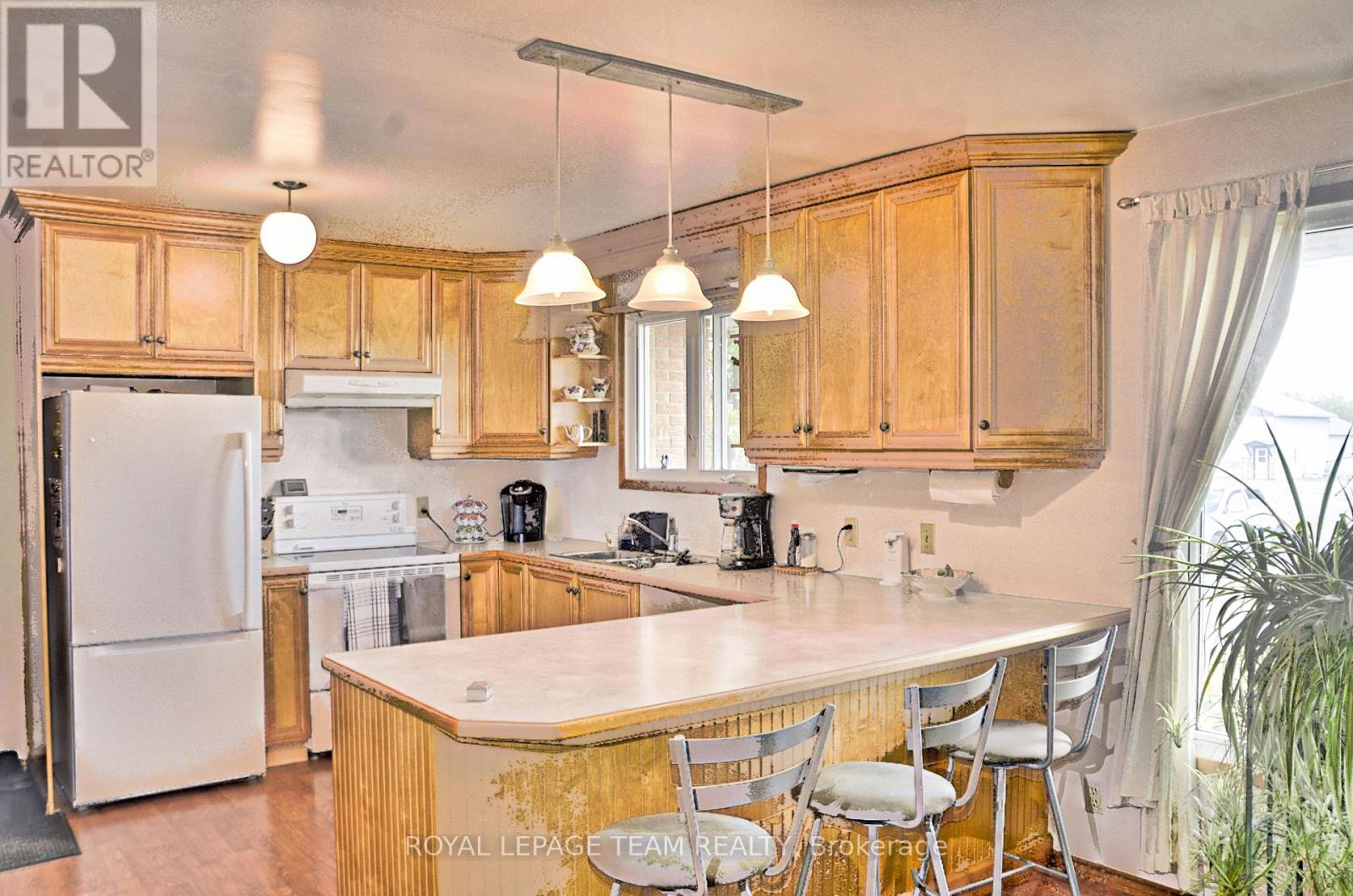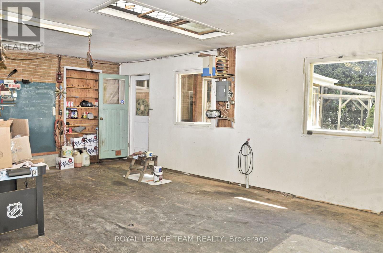 All brick, 3 BR bungalow with attached garage and an attached studio/workshop with lots of windows for natural light. If you are tired of town-sized lots that don't give access to the backyard then this property is for you. Drive your pickup truck and trailer past the garage into the large treed backyard is not a problem. Entering the house through the garage offers you a 3pc bath/laundry room on the right and turning left you walk into the large kitchen. This used to be two rooms but a wall was taken down to make a large kitchen and create an open living space to the kitchen/dining room/living room combination. This layout will make entertaining family and friends a breeze as they can move easily from living room back to the kitchen. Getting up in the morning will be a treat as you grab that first cup of coffee and head into the sunroom right off the dining room that also let's you stroll on out to the backyard deck. The primary bedroom, two more bedrooms and the main bath are located at the opposite end of the home and give a quiet retreat as you drift off the the land of slumber. The basement will be the place the family room will be for a winter's evening and Hockey Night in Canada or the latest movie thriller. The workshop/studio, attached to the back of the garage is where you can explore your hobbies, interests or do pilates, a workout or that latest woodworking project. It has plenty of windows and even a skylight. The backyard is not to be overlooked. It has space, privacy, trees and another garage for storage. You can walk to the shopping plaza, the bank, post office, schools or enjoy launching your boat at the local marina. An 18 hole golf course is at the opposite end of town, if you need some frustration in your life. 2 minutes to Hwy 401, 15 minute to 416, half way between Cornwall and Brockville, this is an ideal location. Allow 24 hour irrevocable times on offer. Electrical costs $1720, natural gas $1330. See video below. (id:49712)