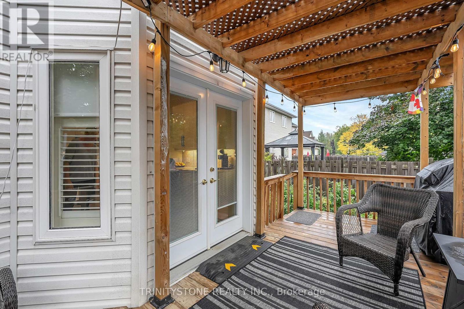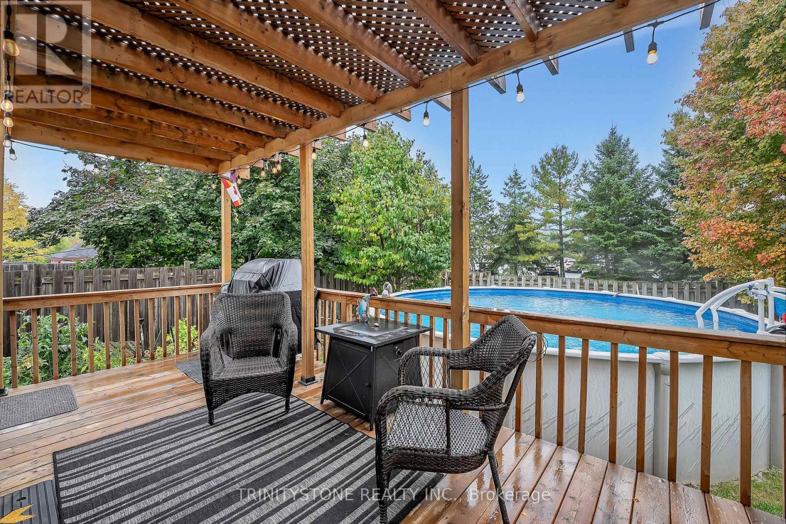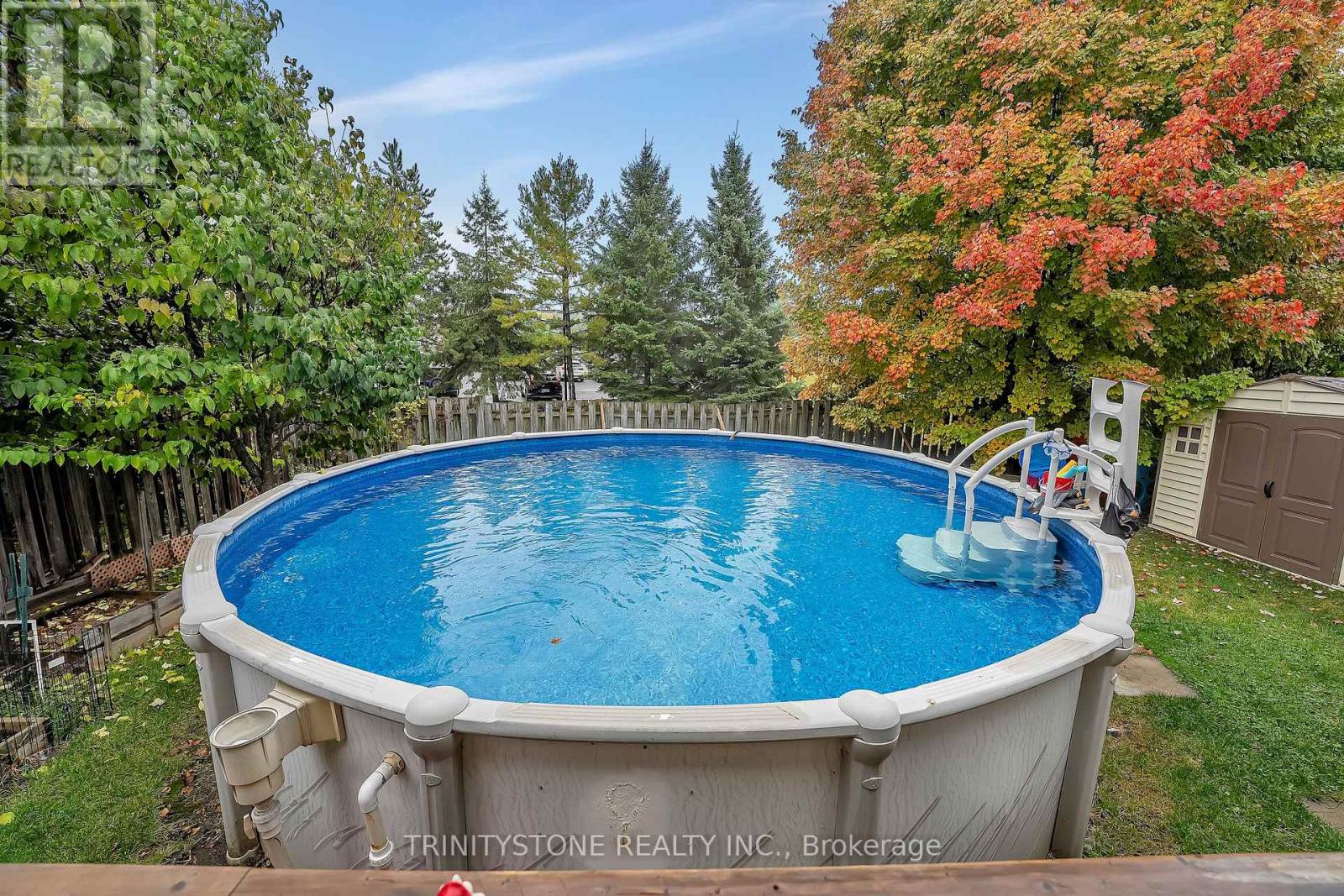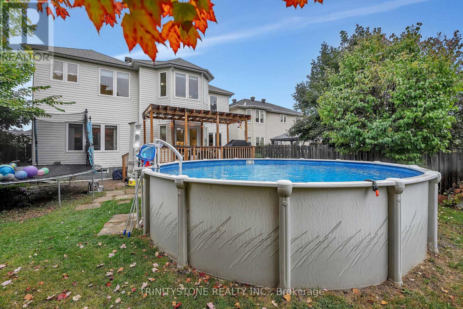 Welcome to 6 Cinnabar Way located in the neighborhood of Granite Ridge, Stittsville. This updated 4-bedroom, 4-bath home family home with no rear neighbors is conveniently located within walking distance of several schools, the Cardel Rec Center, as well as many other amenities. On the bright main level you will enter to a large inviting foyer leading to a hardwood circular staircase, a separate living-dining room, a huge, recently updated open kitchen with eat in area, quartz counters, and walk-in pantry, as well as a large family room with gas fireplace, all overlooking the private, treed yard with above ground pool. There is hardwood and ceramic flooring throughout the main level, as well as a large mudroom with laundry area. The second floor, with hardwood and laminate flooring, has 4 bedrooms that are all a great size, with large windows letting in ample natural light, 4 pc main bathroom. The oversized primary bedroom has a separate sitting area, an updated 3-pc ensuite and walk-in closest. The lower level is fully finished with a huge rec room, a 3-pc bathroom, and two other rooms. Off the eating area, you will find a large deck with pergola, overlooking the private fully fenced yard with above ground pool. Recent upgrades: 2024: Full kitchen reno; 2023: Ensuite bathroom reno, pool heater, pool liner, pool filter; 2022: Garage door, Pergola. New pantry, Whole house painted, Laminate flooring in bedrooms; 2021 Roof, Deck, Patio door (id:49712)