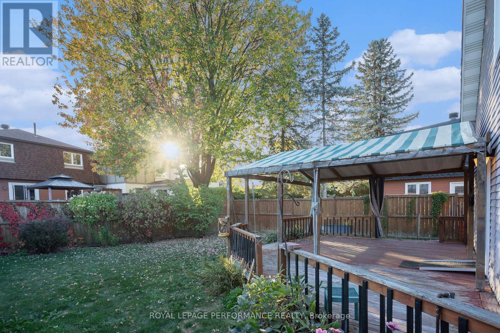 Welcome to this beautifully maintained and thoughtfully updated 4-bedroom family home, ideally situated on a generous LOT in a highly sought-after neighbourhood! From the moment you step inside, you'll be impressed by the warmth and elegance throughout. The main floor showcases gleaming hardwood flooring in all principal living areas and ceramic tile in the kitchen, creating a seamless blend of style and durability. A formal living room with French doors and a large picture window fills the space with natural light, while the separate formal dining room offers the perfect setting for family gatherings and entertaining. The spacious kitchen is sure to impress with brand-new counters and backsplash (2025), stainless-steel appliances, and an abundance of cabinetry offering excellent storage. The adjacent family room features a brick-surround fireplace and patio doors leading to a deck that overlooks the fenced, expansive backyard. A 2-piece powder room and inviting foyer complete this well-designed level. A side entrance provides convenient access to a deck and patio area, also accessible from the garage. Upstairs, you'll find newer carpet on the staircase, hallway, and one of the bedrooms. The primary bedroom offers hardwood flooring and a renovated 3-piece ensuite featuring an oversized luxury shower. The additional bedrooms are all generous in size one with hardwood flooring and another with laminate complemented by a fully renovated 4-piece main bathroom. The SECOND FLOOR LAUNDRY room adds comfort and functionality. This home has been meticulously cared for, with all major components replaced: PVC windows, furnace (2013), air conditioner (2014), roof (2017), and water heater (2025) offering peace of mind for years to come. Located in an amazing area just steps to schools, multiple parks, and close to all amenities, this home perfectly combines space, comfort, and convenience, a truly exceptional opportunity for your family! 24 hours irrevocable on offer.. (id:49712)