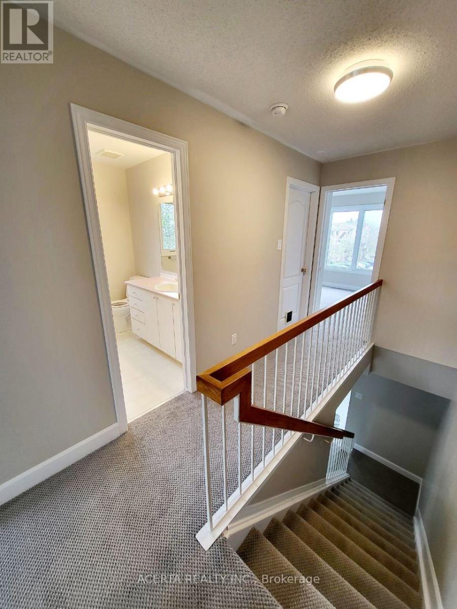 Spacious corner unit spanning two levels, with a picturesque park view. The main floor offers an expansive open-concept dining area with a bay window, a living room featuring a cozy gas fireplace and a generous balcony, a large eat-in kitchen, and a powder room with ample storage. Upstairs, find a remarkably large primary bedroom with wall-to-wall closets and an additional balcony, alongside a bright second bedroom with another sizable closet. Also on this level, a full bathroom and convenient second-floor laundry. Recently painted in neutral tones, the unit boasts newer plush carpeting throughout, glass top stove, dishwasher, high-efficiency furnace, and central A/C. Rent includes one parking spot right at the door, plus ample in-unit storage. Conveniently located near parks, schools, library, shopping, dining, entertainment, public transit, and highway access. Situated in a quiet, safe, and family-friendly neighborhood. Available for occupancy on December 1st. (id:49712)