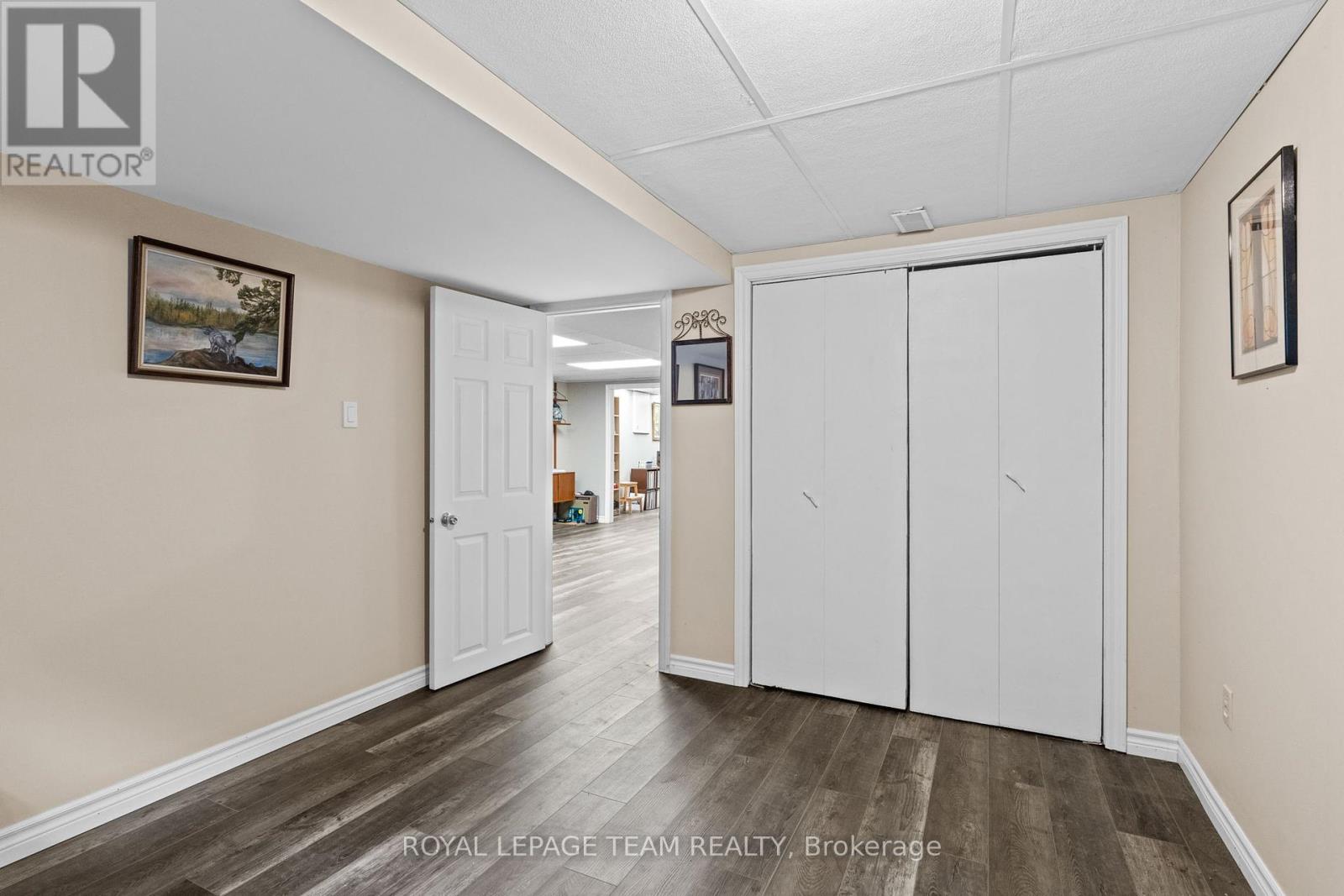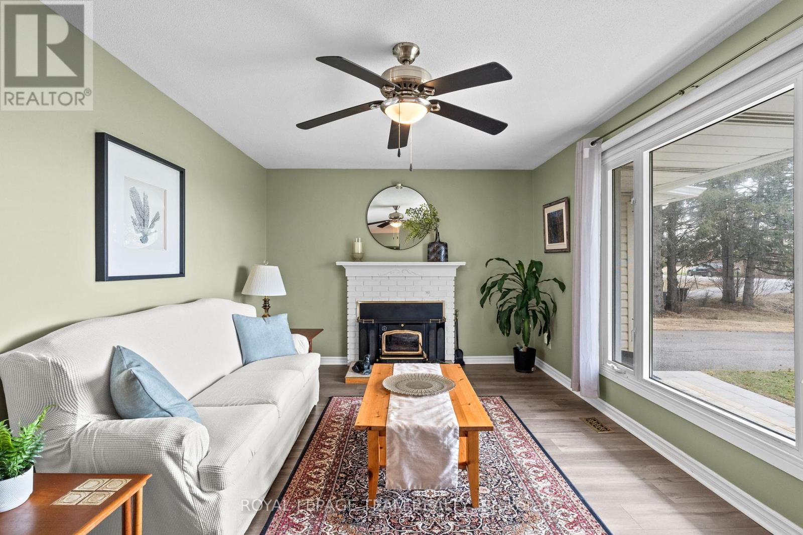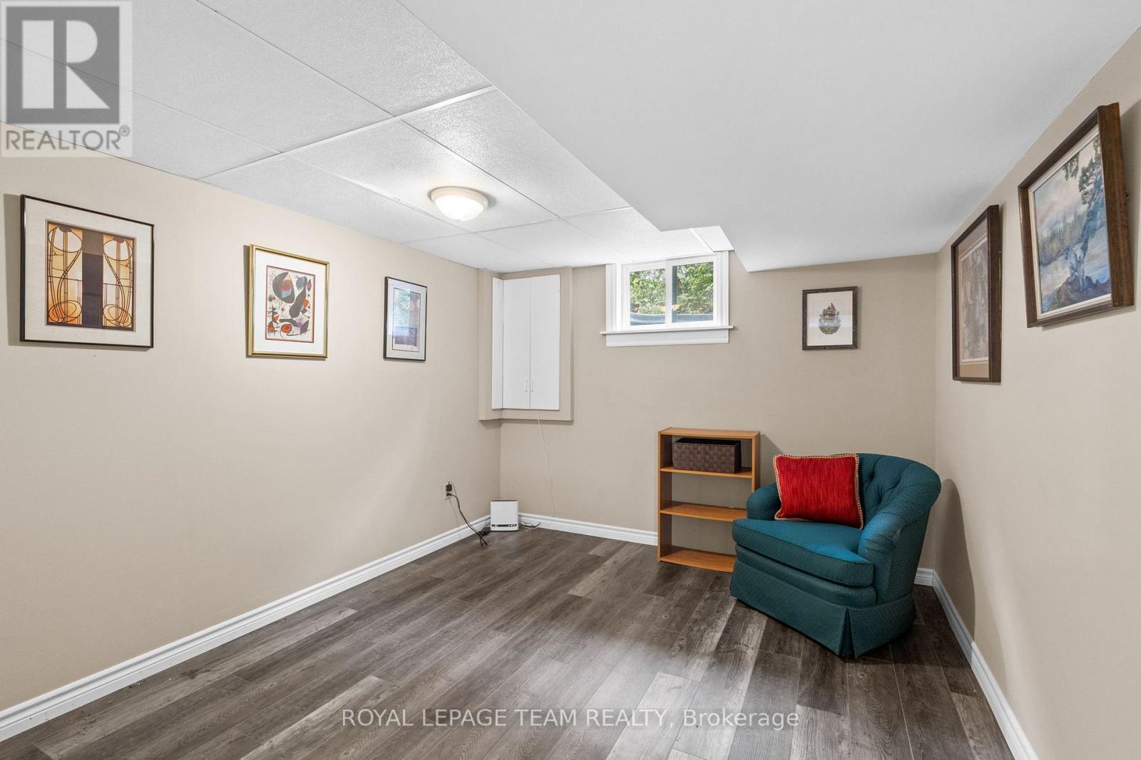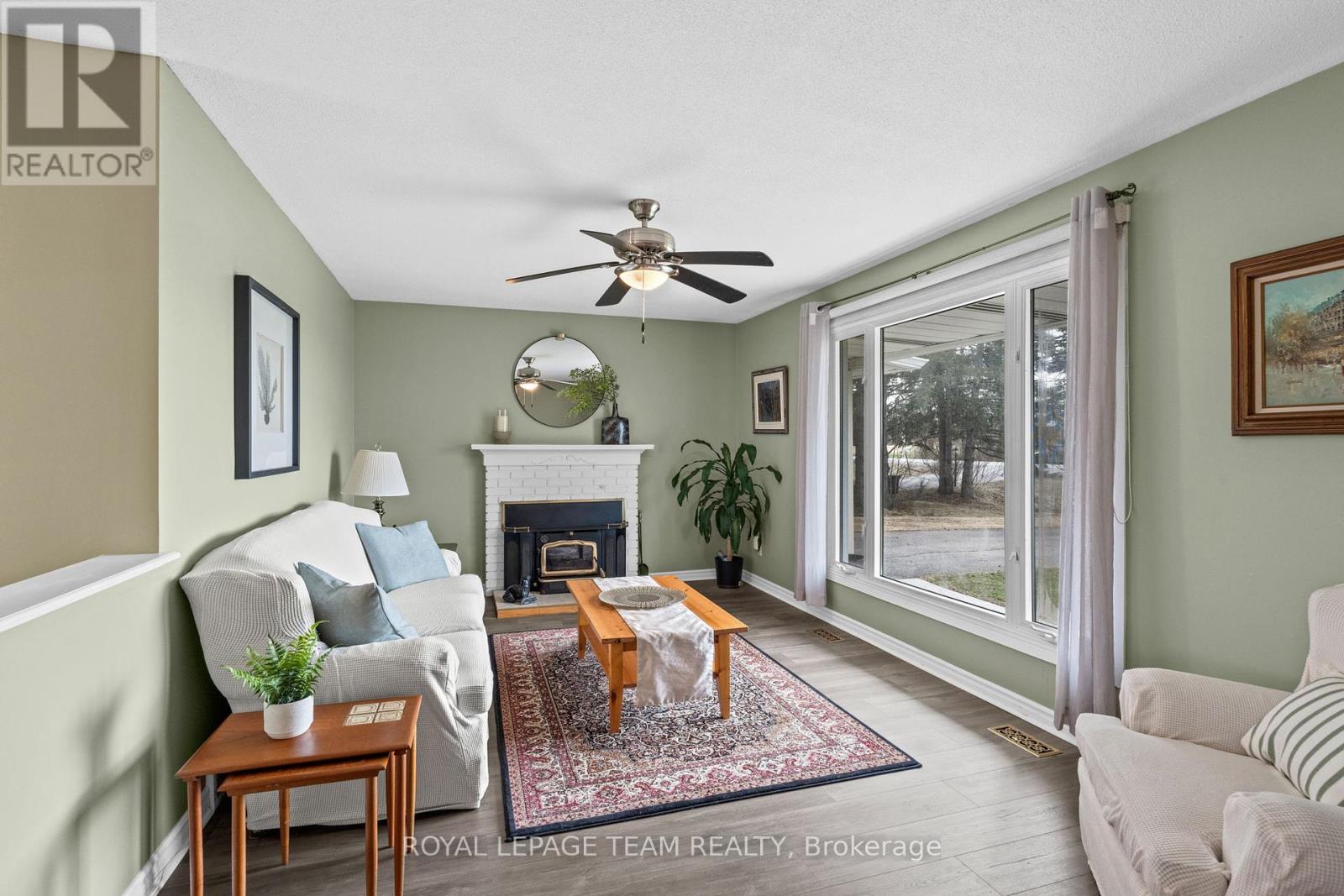 Charming bungalow nestled on a beautiful half-acre lot at the edge of the prestigious Carleton Golf & Yacht Club community in Manotick. This delightful home offers the perfect blend of comfort, privacy, and convenience, ideal for those seeking a tranquil lifestyle with close proximity to essential amenities. The open-concept main floor is filled with natural light from large east and west-facing windows, creating a warm and inviting living space. The bright living room flows seamlessly into a functional kitchen and dining area, with direct access to a private backyard surrounded by mature trees and lush gardens, perfect for outdoor entertaining. Two well-appointed bedrooms and a full main bathroom complete the main level. The second bedroom appears to have previously been two separate rooms, which were combined into one; it may offer potential for conversion back to a three-bedroom layout. The finished basement extends your living space with a generous recreation room, a versatile den, a convenient powder room, and abundant storage options. Stylish, waterproof, and durable Rigid Core flooring runs throughout both levels, combining practicality with contemporary appeal. A spacious double-car garage with inside entry offers both parking and additional storage. Two garden sheds provide even more outdoor storage for tools, equipment, or seasonal items. Work from home with fast Bell Fibe internet. Located just south of Manotick's charming village core, this home is minutes from the Rideau River, local shops, scenic parks, and great restaurants. Manotick is known for its historic mill, vibrant community events, and small-town charm with big-city convenience. You'll love the farmers markets, local boutiques, and cozy cafés, plus the excellent schools and community services nearby. Hwy 416 ensures an easy commute to Ottawa and surrounding areas, and just an 18-minute drive to the Bowesville Station O-Train Park & Ride, making transit into the city even more accessible. (id:49712)