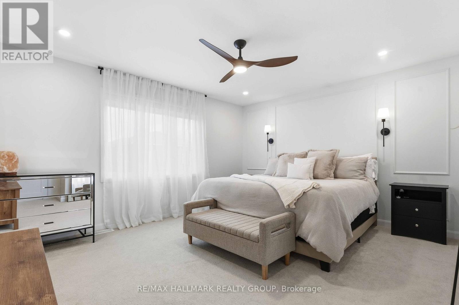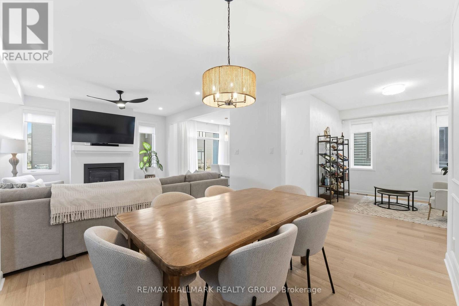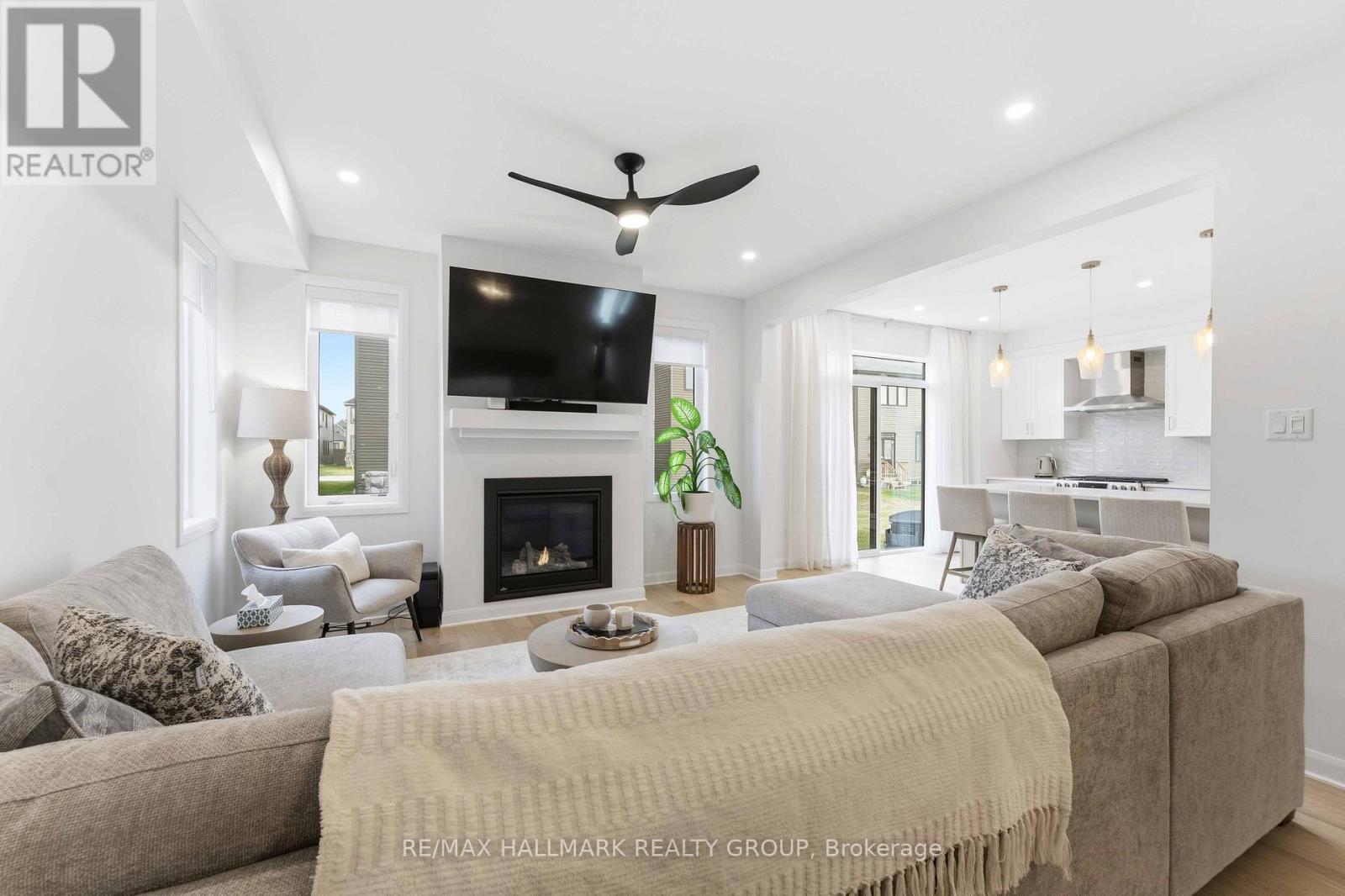 This exceptional 4-bedroom home showcases modern luxury and timeless finishing choices in one of Ottawa's most desirable communities; Mahogany in Manotick. Step inside to discover an elegant layout highlighted by 9-foot ceilings, hardwood flooring, a bright entrance foyer, a main level den, and an open concept living/dining area with a sleek gas fireplace creating a warm and sophisticated atmosphere. The custom-designed kitchen is a chef's dream, featuring quartz countertops, soft-close cabinetry, and upgraded lighting that beautifully complements the space. A semi-circular oak staircase leads to the upper level, where you'll find a spacious primary retreat complete with a walk-in closet and a spa-inspired ensuite offering double sinks and a stand-alone soaker tub-perfect for relaxation, three additional bedrooms, a full bathroom and second floor laundry room complete the upper level. Set within the prestigious Mahogany community, this home offers the perfect blend of tranquility and convenience, moments from the Manotick Village core, parks, trails, and the Rideau River. (id:49712)