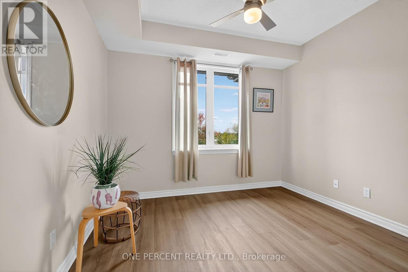 $330 MonthlyWelcome to this beautifully appointed 2-bedroom, 2-bathroom condo that perfectly blends style, comfort, and modern upgrades. The open-concept layout showcases gleaming hardwood floors in the living and dining areas and brand new flooring in both bedrooms, creating a fresh and inviting atmosphere throughout.The kitchen is a true highlight - a chef's delight featuring granite countertops, abundant cabinetry, and brand new stainless steel refrigerator and stove. A convenient island, pantry, and undermount sink make this space as functional as it is elegant. Enjoy abundant natural light streaming through the living areas, enhanced by pot lighting, and step through the dining area to a spacious balcony overlooking a tranquil wooded setting - the perfect spot to relax and unwind. The primary bedroom offers a private retreat with a walk-in closet, 3-piece ensuite, and ceiling fan for added comfort. The second bedroom is equally generous in size, complemented by a full 4-piece bathroom with granite countertops and undermount sink. Additional conveniences include in-suite laundry, washer (2025) and dryer (2025), and ample visitor parking. Parking space C31 is ideally located right out front. Situated close to shopping, recreation, public transit, and every essential amenity, this home offers the perfect balance of luxury and lifestyle. 24-hour irrevocable on offers. (id:49712)