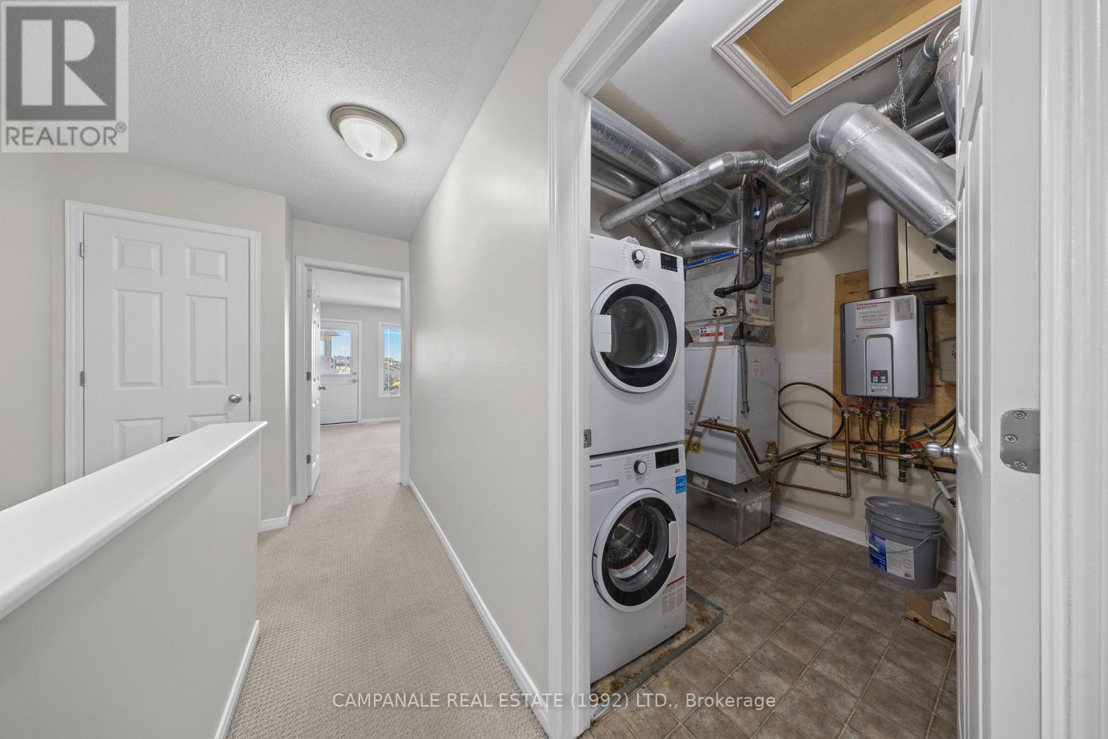 $414.13 MonthlyLooking for a spacious upper unit that truly stands out? This Energy Star-certified homes offers 1,477 sq. ft. of bright, modern living with two private balconies and two ensuite bathrooms-a rare and sought-after combination. Ideally situated across from a tranquil forested area, you'll enjoy peaceful views while being just minutes from schools, parks, shopping, and transit. The open-concept main level features a modern kitchen with stainless steel appliances, ceramic tile flooring, a stylish backsplash, pantry, breakfast bar, and plenty of cabinet space. A sunlit eating area opens to the first private balcony, perfect for morning coffee or an at-home workspace. The adjoining living and dining area is filled with natural light and showcases hardwood flooring and a cozy corner gas fireplace-ideal for entertaining or relaxing at the end of the day. Upstairs, you'll find two spacious bedrooms, each with its own 3-piece ensuite for ultimate comfort and privacy. The primary suite also includes the second private balcony, while the secondary bedroom offers a charming sitting area. A convenient laundry/storage/utility room completes the upper level. Additional features include small BBQs permitted on balconies, and a dedicated parking space. (id:49712)