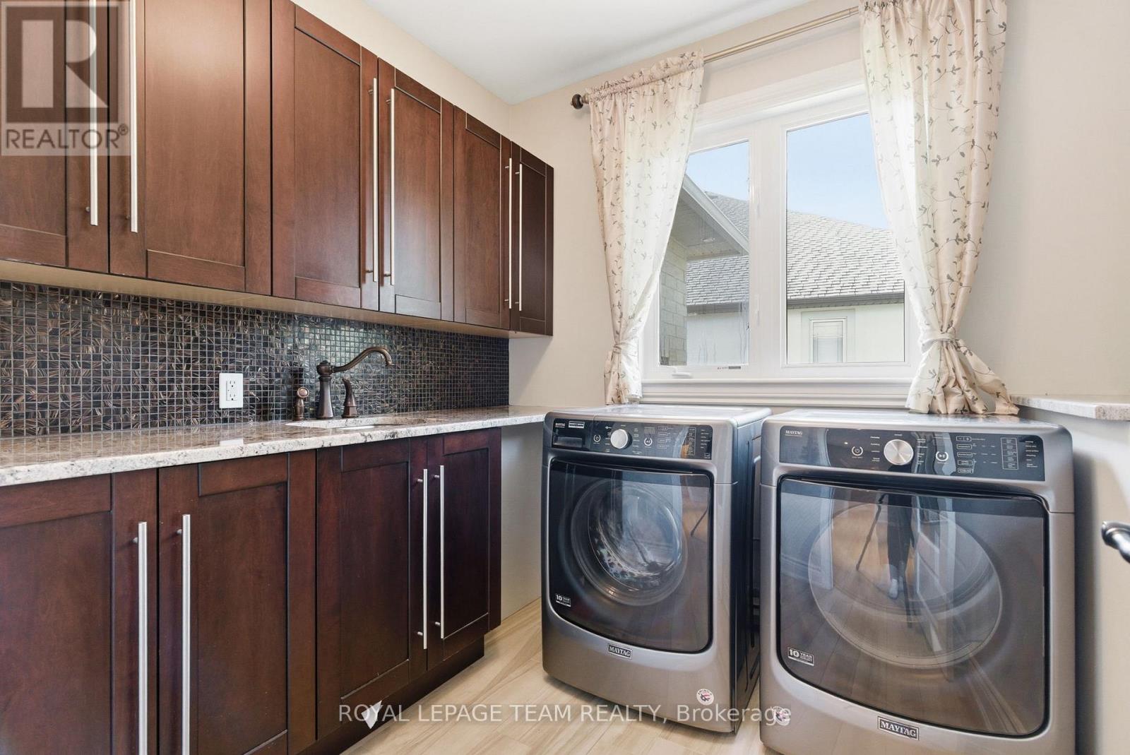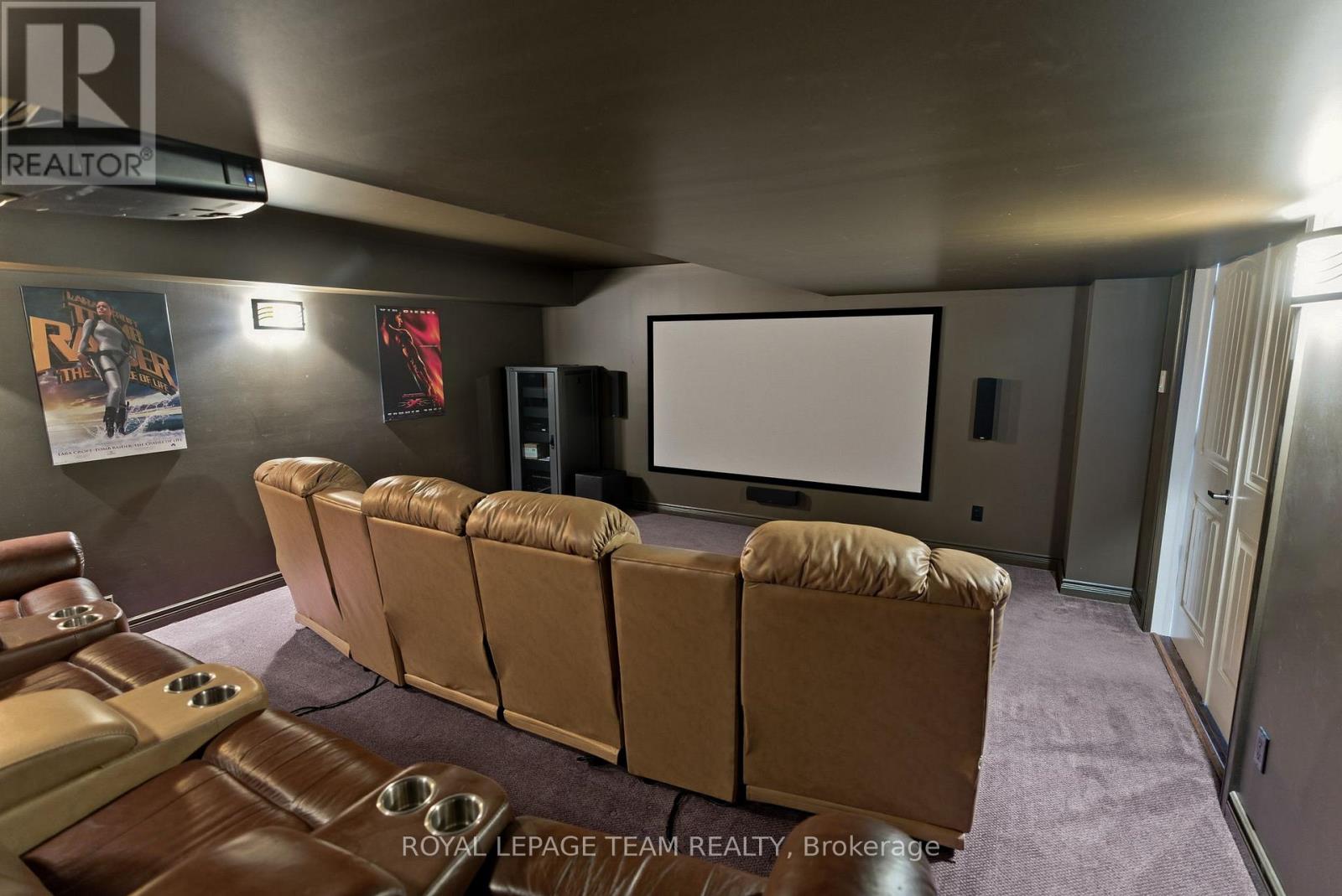 Welcome to 6903 Lake Forest Walk, an exquisite custom-built waterfront bungalow with finished lower level flooded in natural light; and perfectly nestled on Fawn Lake in Greely's prestigious South Village community. Designed for luxurious living and effortless entertaining, this 3+2 bedroom, 4-bath residence blends timeless craftsmanship with modern upgrades spanning more than a decade of thoughtful enhancements. An elegant open-concept layout showcases hardwood floors, soaring ceilings and refined architectural detailing throughout. The gourmet kitchen features a large walk-in pantry, spacious island, gas range, built-in appliances and granite counters; flowing seamlessly with the eat-in, living area and separate dining room/office. A heated, insulated 4-season sunroom offers tranquil waterfront views year-round. The primary suite is a serene retreat with dual walk-in closets and a tastefully renovated 5pc ensuite. Bespoke in-law accessible bedroom and bathroom (wheelchair lift in garage). Custom storage and built-in solutions throughout. The finished lower level includes a complete home theatre incl seating & equipment, gym, steam-shower bathroom & 2 bedrooms, ideal for guests & extended family. Outdoors, resort-style living awaits on a meticulously landscaped 0.57-acre lot with private shoreline, irrigation, dock and naturalized beach entry with a gentle slope to the water's edge. A stately stone facade with mature trees and elegant front hardscaping provide both curb appeal and privacy. Function meets luxury with a heated 4-car garage, epoxy floors, car lift, wheelchair lift & updated overhead doors 2021. Recent upgrades: Generator 2019, custom closets, front door 2024, driveway/hardscape 2021 & sunroom heat exchanger 2025/transf warranty. Experience refined lakefront living just mins from Ottawa, where every detail has been elevated for comfort, beauty & ease. Min 48 hr irrev. $350/annual association fee. Some photos have been virtually staged. (id:49712)