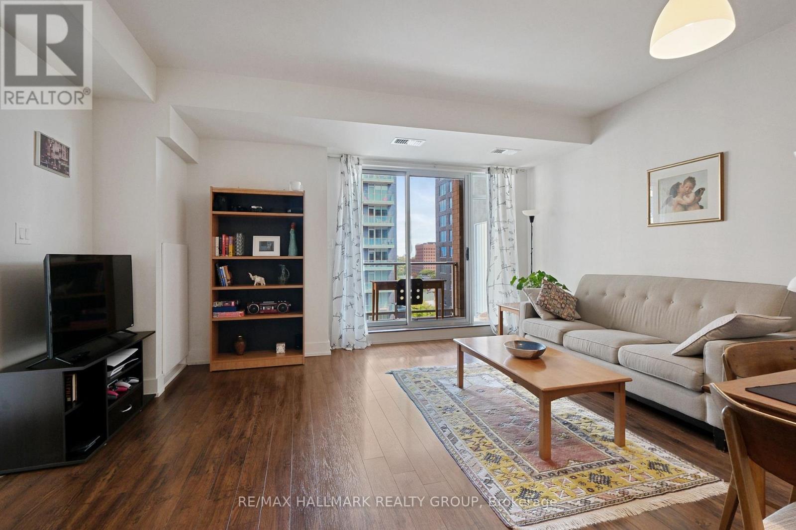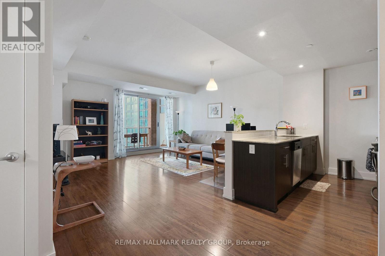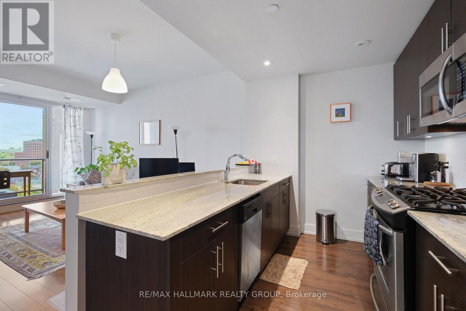 $483.02 MonthlyBright, comfortable, and perfectly placed in Little Italy. Suite 706 at HOM by Domicile is a one-bedroom with real living space and an easy, city-ready routine. This unit comes with one parking spot and one storage locker. Morning light pours across the open living and dining area through large windows, while hardwood floors keep the space warm and cohesive. The kitchen is larger than most condos in this price range, with full-height cabinetry, a gas range, stone counters, tile backsplash, and an island that works for prep, coffee, and casual meals. The bedroom is quietly tucked away for restful nights, and the full bath and in-suite laundry keep day-to-day life simple. Step outside to a private balcony with open urban views that stretch across the neighbourhood.Life at HOM adds practical amenities you will actually use. Work out in the fitness room, meet friends on the outdoor terrace with barbecue stations, and book the lounge with a kitchen when you want to host. There is also secure bike storage for weekend rides.The location is the point. You are a short walk to Preston Street with cafes, bakeries, and restaurants for every mood. Dows Lake and the Rideau Canal are close for runs, paddles, skating, and festivals that mark every season. Commuting is simple without relying on a car. The Hickory Street footbridge connects you to the O-Train, with paths and bike routes all around.If your version of Ottawa living is an espresso on Preston, a loop around the lake, and an easy ride to the office, this home fits the rhythm. A bright one-bedroom with a big kitchen, natural light, large windows, hardwood floors, a balcony, and views, set in a quiet concrete building in one of the city's most loved neighbourhoods. (id:49712)
