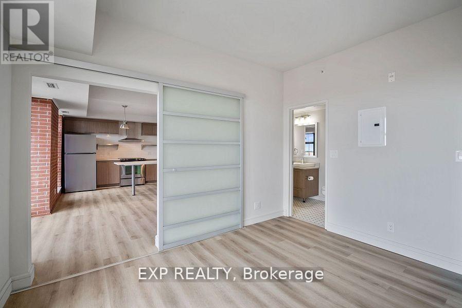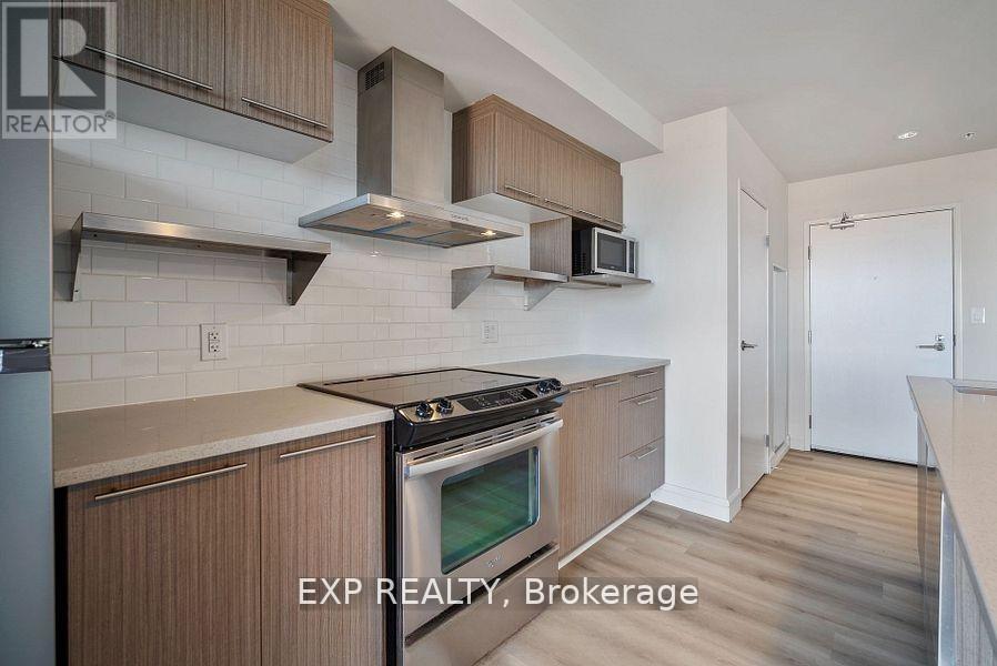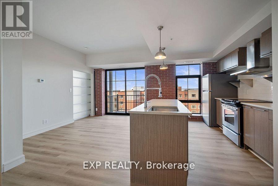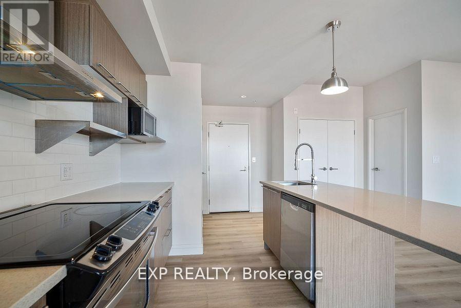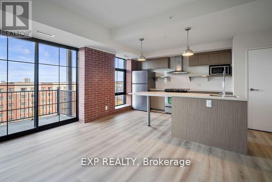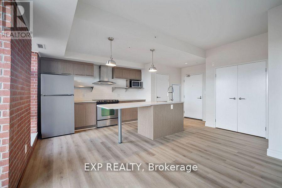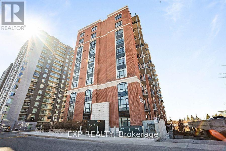 Modern 1-bed, 1-bath condo with parking and locker! This bright north-facing unit (689 sq. ft.) features brand-new flooring, new appliances, exposed brick, and sleek vessel sinks. Oversized windows bring in tons of natural light. Enjoy a stylish kitchen with quartz countertops, floating shelves, breakfast bar, and stainless steel appliances. Step out to your spacious 90 sq. ft. balcony with a gas BBQ hookup.Top-tier amenities: full gym, pet spa, party/lounge room with WiFi, scenic walking paths & more. Underground parking + locker included. Steps to the new Walkley LRT station, close to Carleton U, Mooneys Bay, shopping, dining, and 417 access. Move-in ready. Urban, sleek, and unbeatable location. (id:49712)