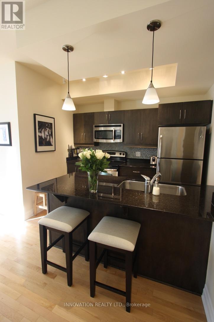 Welcome to Hudson Park by Charlesfort-one of Ottawa's premier condominium residences nestled in the heart of Centretown. This stylish unit offers an open-concept layout with contemporary design and high-end finishes throughout. Enjoy granite countertops, modern hardwood flooring, custom dark cabinetry, and sleek stainless steel appliances.Nine-foot ceilings and expansive windows fill the space with natural light and offer beautiful views of the iconic St. Patrick's Basilica. Whether you're hosting in your suite or entertaining on the rooftop terrace, you'll appreciate the building's exceptional amenities, including a fitness centre, resident lounge, second-floor courtyard, and rooftop terrace with sweeping urban vistas.Utilities: Gas and water included; hydro extra. Hot water tank rental: $30/month.Parking: C-61Locker: C-51Deposit: $5,500 (id:49712)
