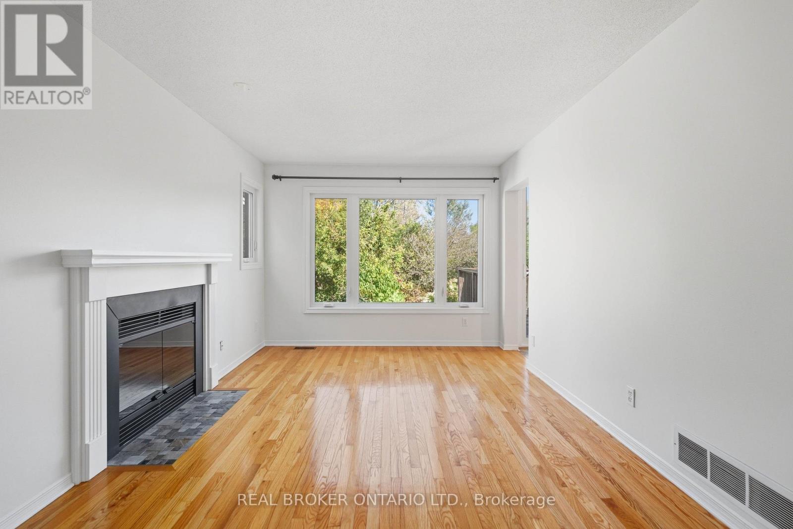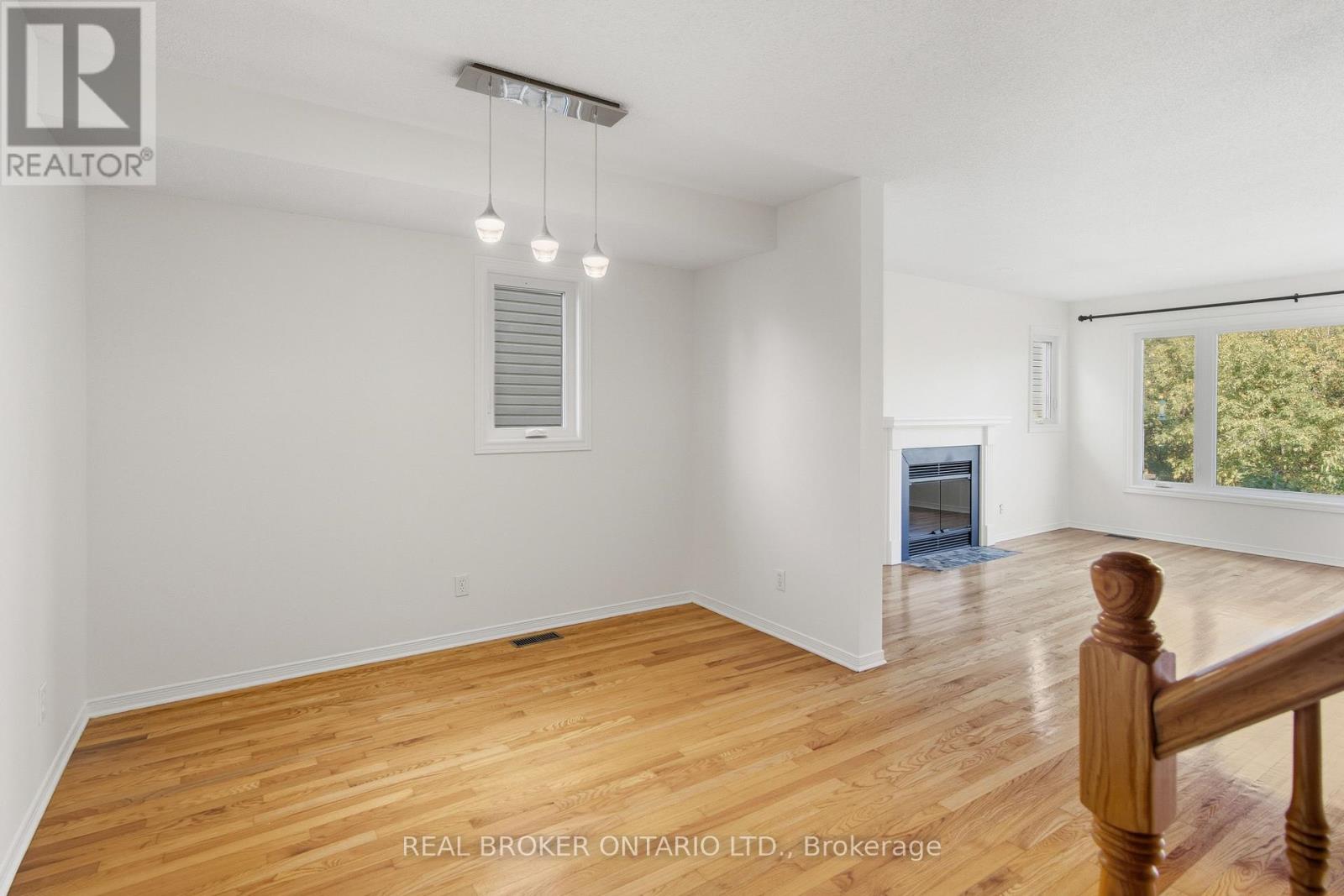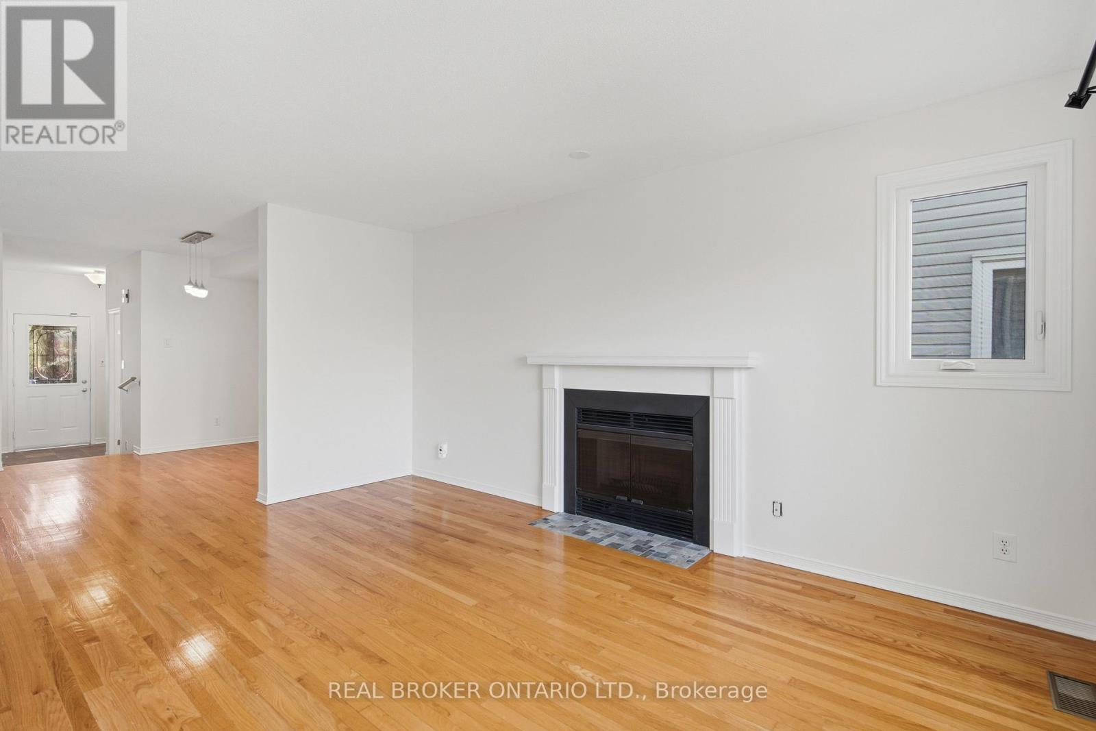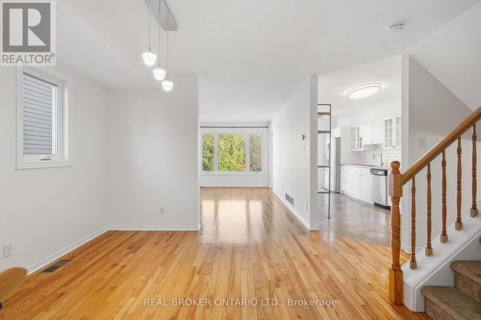 Welcome to this bright and inviting 3-bed, 2-bath end-unit townhome in the Morgan's Grant / South March neighbourhood of Kanata North. Backing onto Shirleys Brook forest and creek, this home offers rare privacy with no rear neighbours and a fenced yard. Inside, a sunken foyer with double closet and powder room leads to a spacious open living/dining area with hardwood floors. The bright kitchen features white shaker cabinetry, butcher block counters, stainless steel appliances, and direct access to an elevated deck overlooking nature. Upstairs are 3 comfortable bedrooms, including a large primary with walk-in closet. The finished walkout lower level adds a bright rec room, laundry, and storage. You'll appreciate parking for up to 3 vehicles (garage + driveway) and a walkable lifestyle close to the Kanata North Tech Park, transit, schools, parks, trails, and all amenities. A perfect next step for those seeking space, privacy, and a connection to nature. (id:49712)