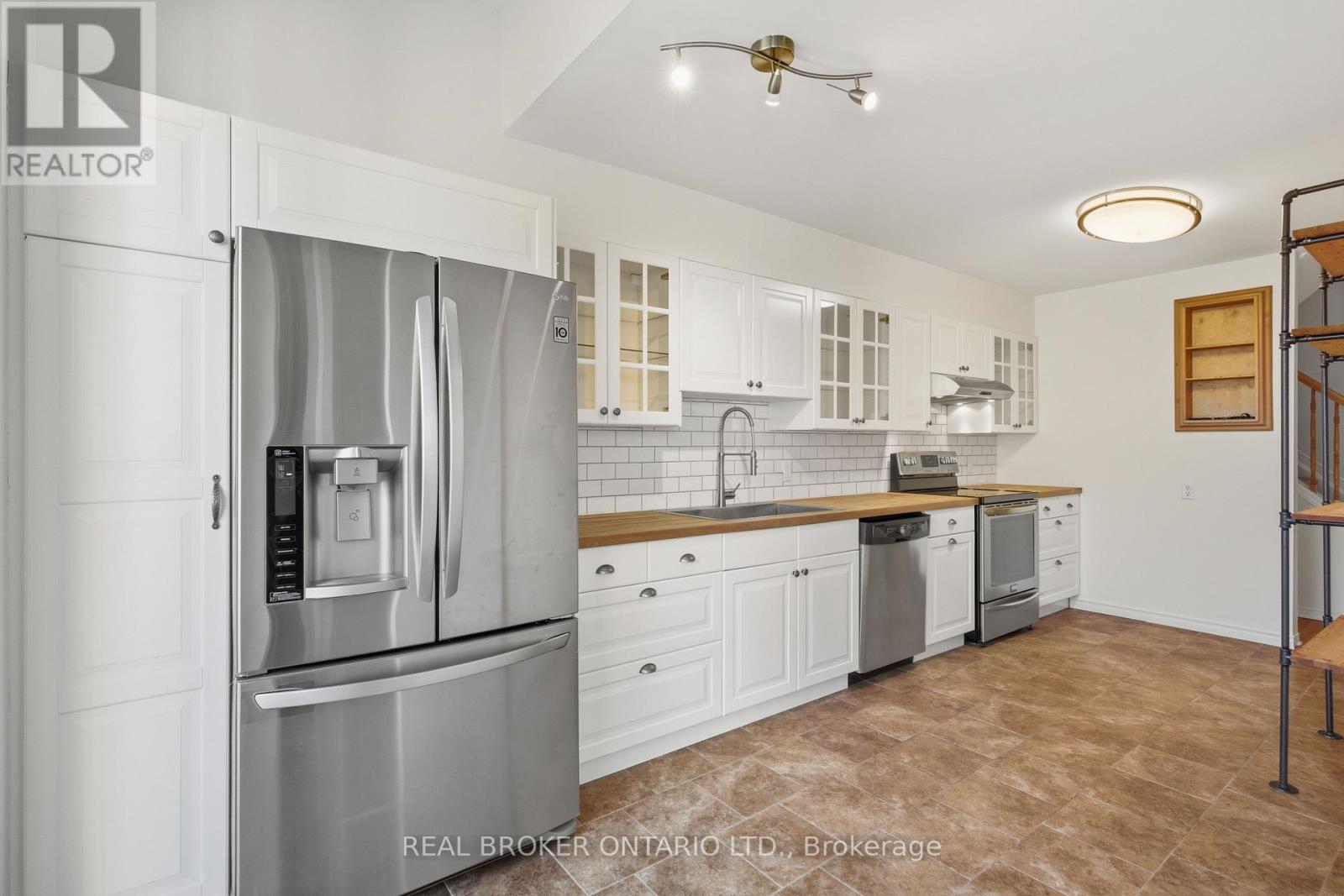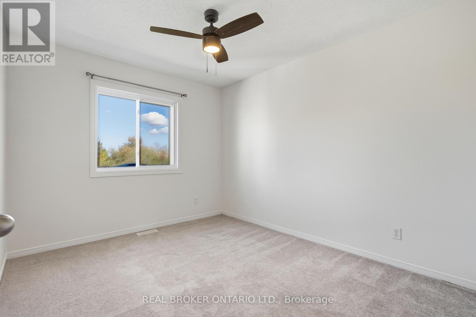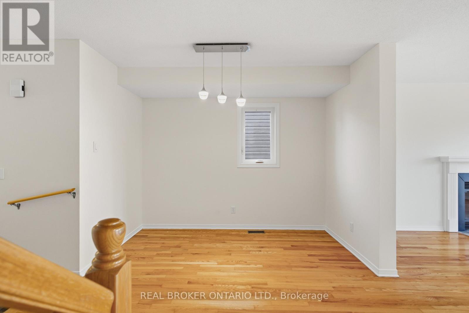 Welcome to this bright and inviting 3-bed, 2-bath end-unit townhome in the Morgan's Grant / South March neighbourhood of Kanata North. Backing onto Shirleys Brook forest and creek, this home offers rare privacy with no rear neighbours and a fenced yard. Inside, a sunken foyer with double closet and powder room leads to a spacious open living/dining area with hardwood floors. The bright kitchen features white shaker cabinetry, butcher block counters, stainless steel appliances, and direct access to an elevated deck overlooking nature. Upstairs are 3 comfortable bedrooms, including a large primary with walk-in closet. The finished walkout lower level adds a bright rec room, laundry, and storage. You'll appreciate parking for up to 3 vehicles (garage + driveway) and a walkable lifestyle close to the Kanata North Tech Park, transit, schools, parks, trails, and all amenities. A perfect next step for those seeking space, privacy, and a connection to nature. (id:49712)