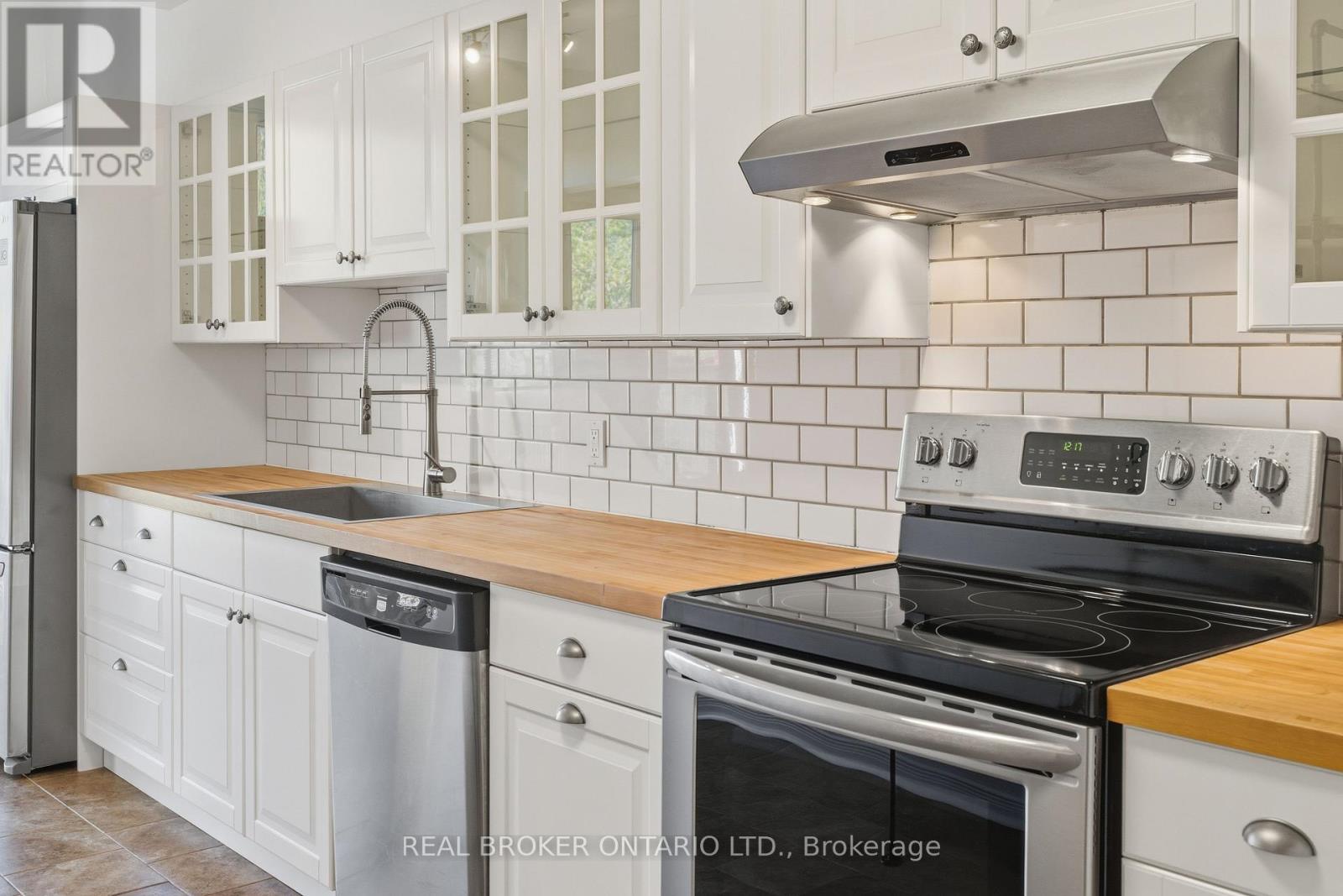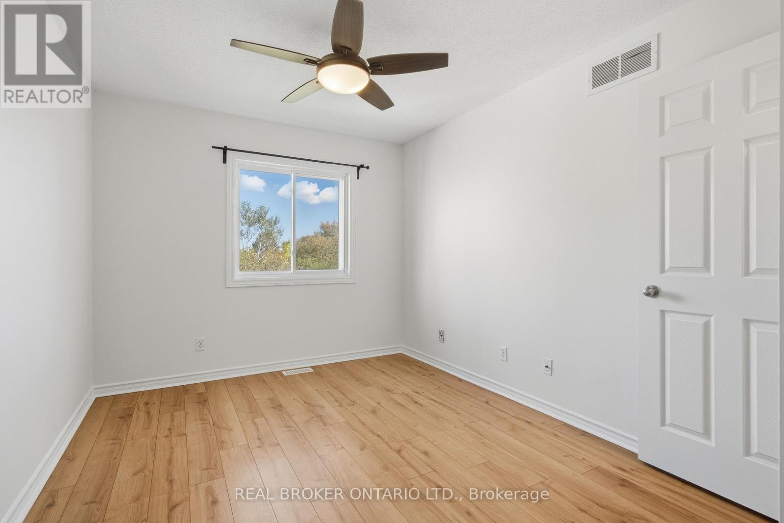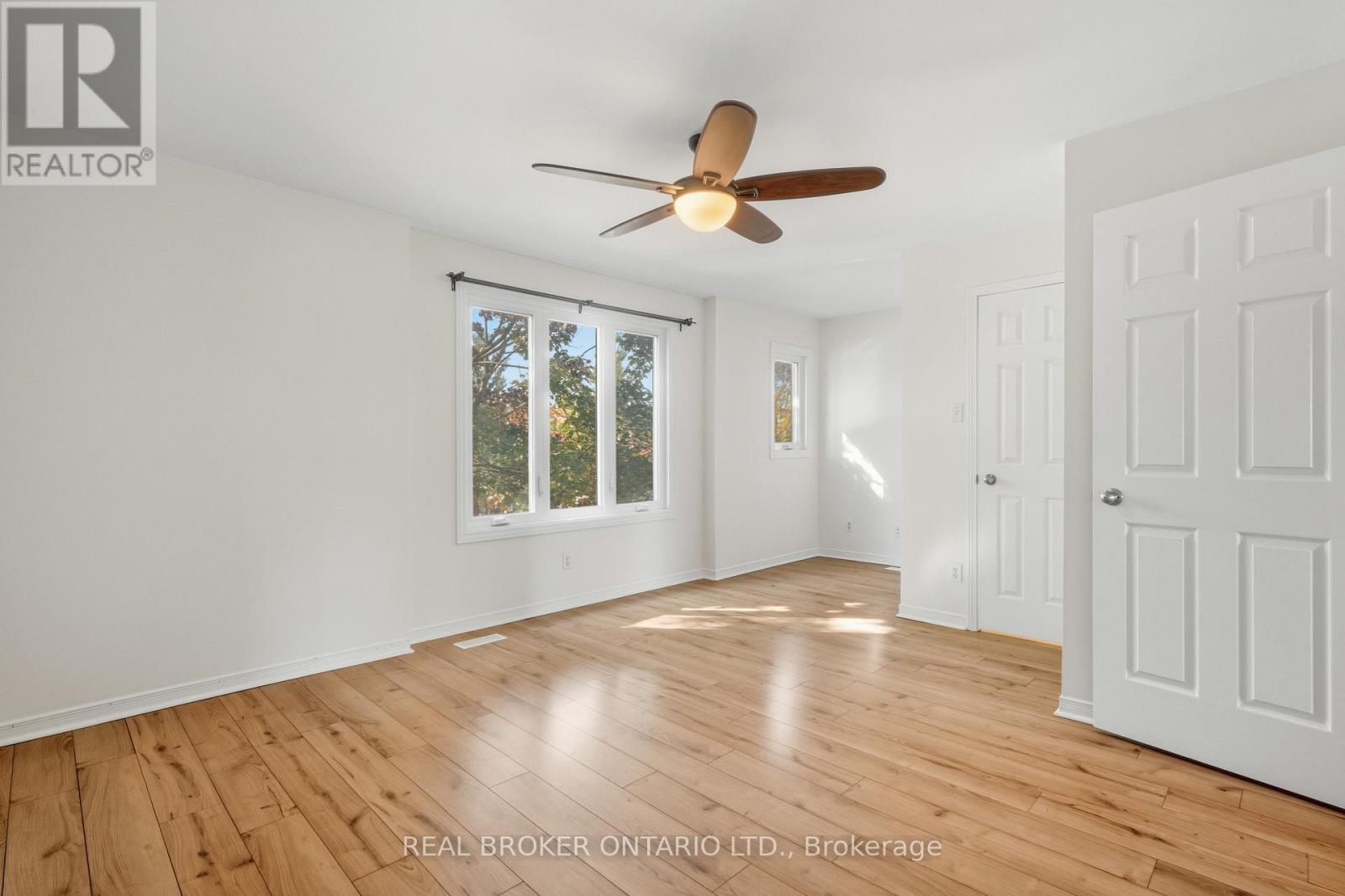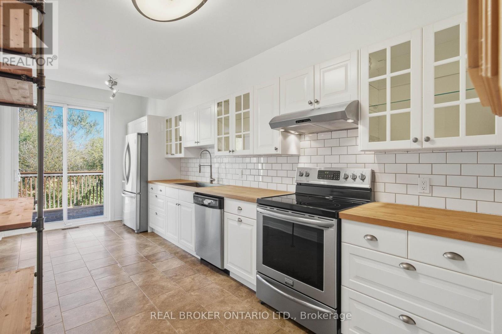 Welcome to this bright and inviting 3-bed, 2-bath end-unit townhome in the Morgan's Grant / South March neighbourhood of Kanata North. Backing onto Shirleys Brook forest and creek, this home offers rare privacy with no rear neighbours and a fenced yard. Inside, a sunken foyer with double closet and powder room leads to a spacious open living/dining area with hardwood floors. The bright kitchen features white shaker cabinetry, butcher block counters, stainless steel appliances, and direct access to an elevated deck overlooking nature. Upstairs are 3 comfortable bedrooms, including a large primary with walk-in closet. The finished walkout lower level adds a bright rec room, laundry, and storage. You'll appreciate parking for up to 3 vehicles (garage + driveway) and a walkable lifestyle close to the Kanata North Tech Park, transit, schools, parks, trails, and all amenities. A perfect next step for those seeking space, privacy, and a connection to nature. (id:49712)