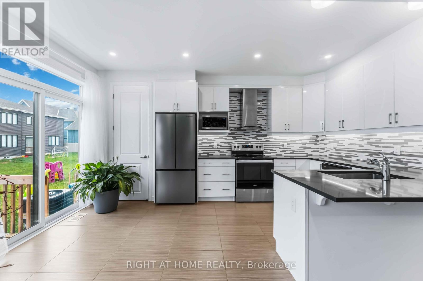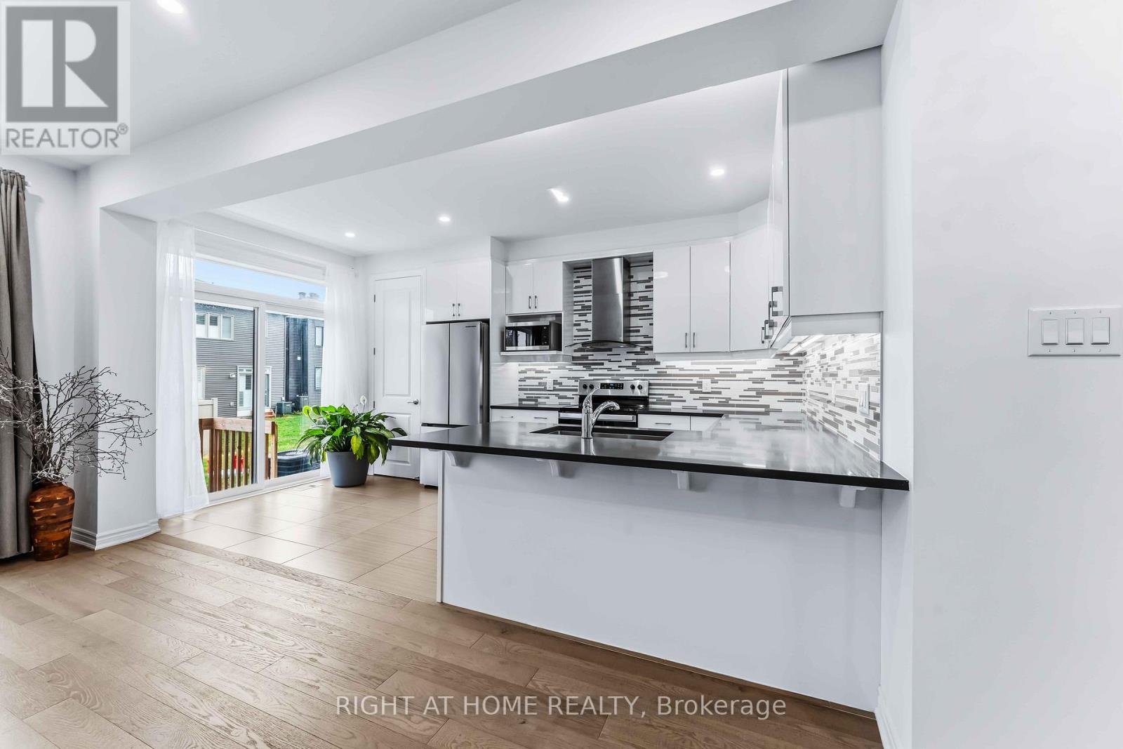 Beautifully designed, this 3-bedroom, 3-bathroom townhome offers the perfect blend of modern comfort, functionality, and style. Step inside to an inviting open-concept main floor, where natural light fills the spacious living room-an ideal space for relaxing or entertaining. The contemporary gourmet kitchen features SS appliances, quartz countertops, a central island, modern backsplash, and ample cabinetry. The adjoining bright dining area opens directly to a large, perfect for family gatherings, barbecues, or simply unwinding outdoors. A convenient powder room, welcoming foyer, and attached garage with inside entry complete the main level, adding comfort and practicality to the home's modern layout. Upstairs, the generous primary suite, complete with a private en-suite bath and a spacious walk-in closet. Two additional bedrooms, a full main bath, a convenient upstairs laundry and linen storage provide plenty of space for a growing family or guests. Located in a family-friendly neighbourhood close to top-rated schools, scenic parks, and everyday amenities, this property delivers the perfect balance of convenience and community. (id:49712)