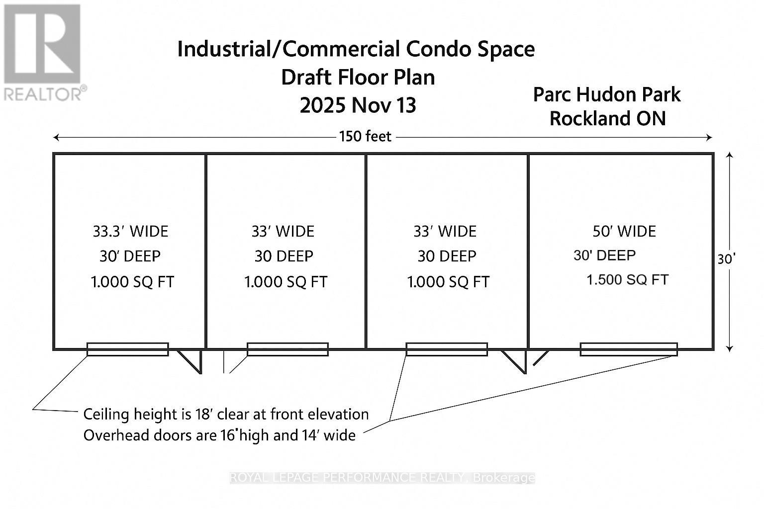 Own your own space/stop renting! Build equity in both your space and your business. Prime commercial/industrial condo bays in Rockland available for purchase on County Road 17 highway. A great place for your business to succeed in a fast developing area. Close to Belanger Chrysler, Rockland Golf Club, Clarence-Rockland Arena, stores, restaurants, new homes and many successful enterprises. Be part of an emerging new business park called Parc Hudon Park. Traffic count (2017) shows 12,000 to 12,500 vehicles per day. Highway Commercial zoning allows for custom workshops, personal service establishments, day care, outside miniature golf, tourist establishment, motor vehicle body shop, motor vehicle dealership, motor vehicle rental facility, industrial condos, retail store, chip wagon, farmers market, restaurant, and much more. Excellent signage opportunities. Locate your business plus own your own property and space next to the new Flixbus Eastern Ontario HQ and GetSpace Ltd's storage and workshop site. Be part of the New Parc Hudon Business Park. Get your own address on Summit Private. Bays range from 1,000 sq ft to 1,500 sq ft each. Great space with large overhead doors (16' high, 14' wide), person door, ceiling height of 18', bathroom. Brand new. 4 bays available in Phase 1. Be part of a supportive community. If you need more space, just combine bays. Perfect for Trades & Contractors, Makers & Fabricators, Automotive, Storage & Logistics, Artists &photographers, Film, stage, or set designers, Nonprofits or community groups, yoga studios, Registered Massage Therapists, Physiotherapists, Acupuncturists, etc etc. Take advantage of nearby small and large secure contractors yards for IOS (Industrial Outdoor Storage): Smaller yards available: 50' x 50' (2,500 sq ft) yard for just $350 per month plus HST. Larger ones available on request. (id:49712)