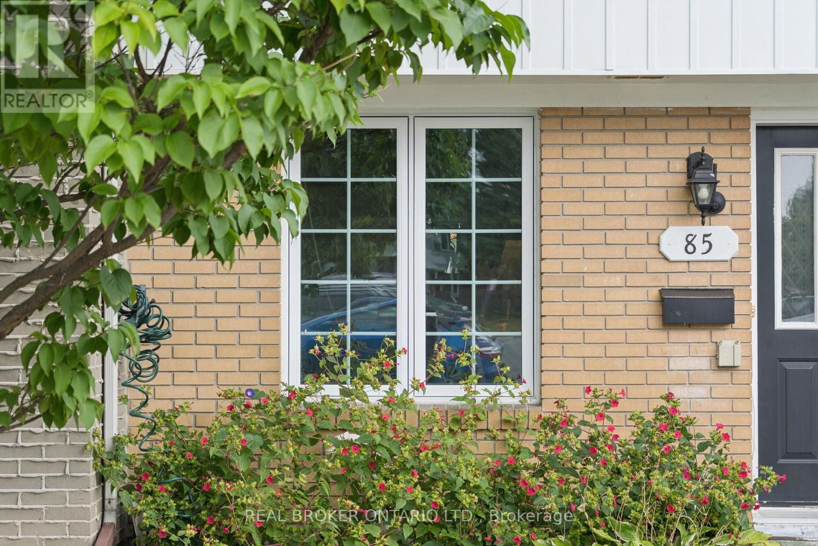 Welcome to 85 Monterey Drive in the mature and family-friendly Leslie Park community of Nepean. This charming three-bedroom, two-bathroom townhouse is full of curb appeal, featuring classic black shutters and a welcoming entryway. Inside, the tiled foyer leads to hardwood floors throughout the main level. The spacious living and dining room offers an open-concept feel, perfect for family gatherings. The kitchen showcases rich dark cabinetry, and a convenient powder room completes the main floor. Upstairs, you'll find three generously sized bedrooms and a stunningly updated full bathroom with a double vanity and oversized walk-in glass shower. The fully finished basement provides a large rec room ideal for kids, a home office, or movie nights. Step outside to a fully fenced backyard, perfect for pets and kids. Located close to schools, public transit, parks, and major amenities including the Queensway Carleton Hospital and IKEA, with an easy commute downtown. A wonderful opportunity for first-time buyers or growing families! (id:49712)