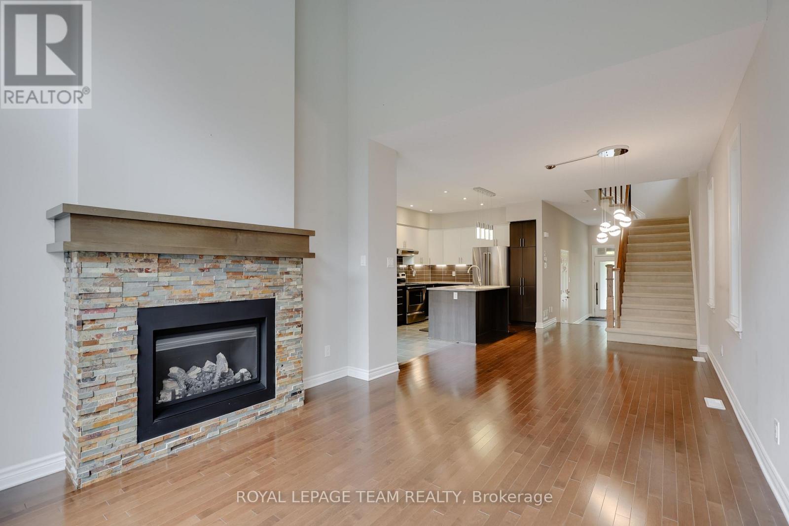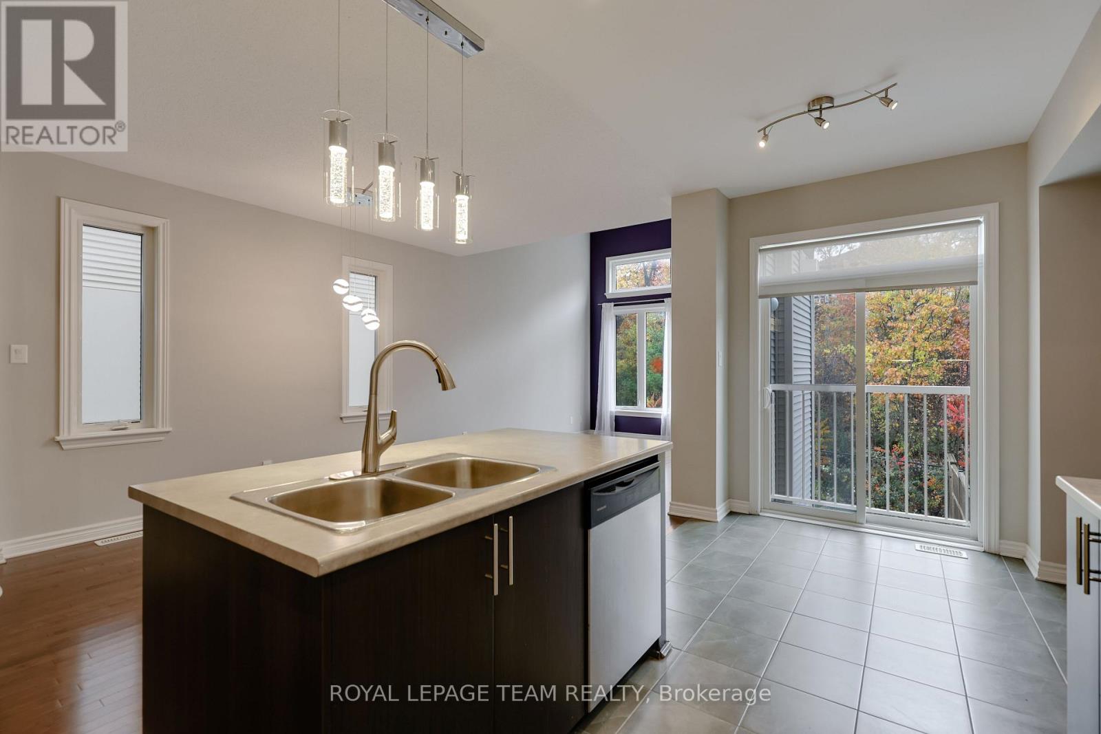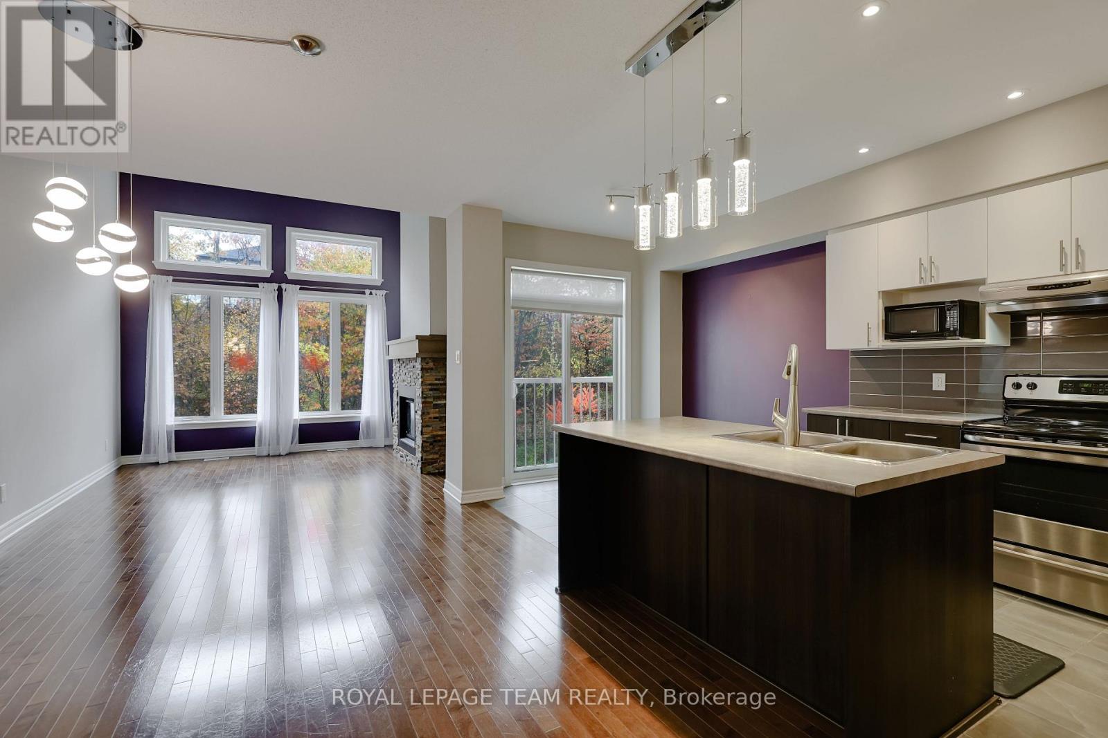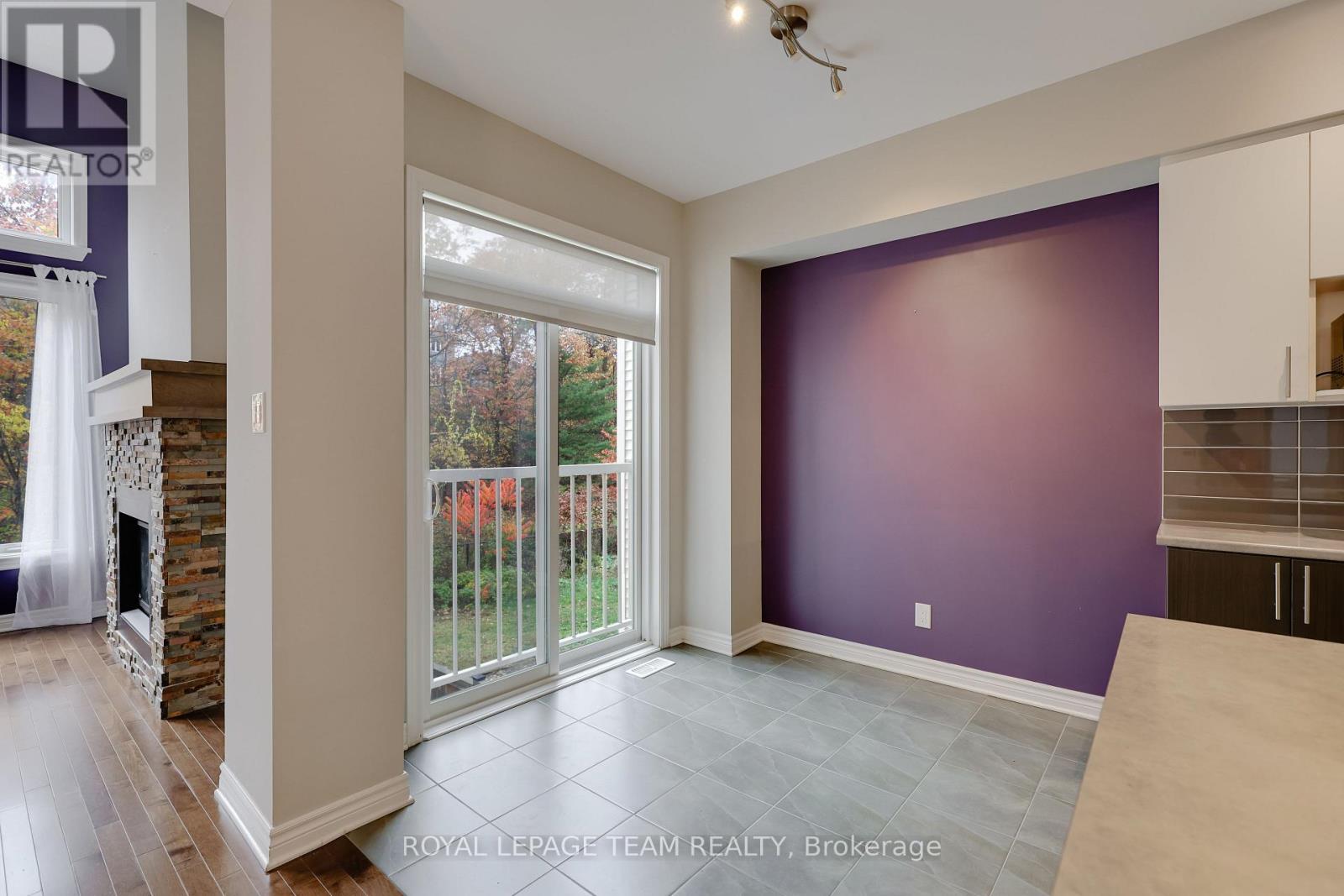 Welcome to this elegant and contemporary 3-bedroom, 2.5-bath Addison model end-unit townhome in prestigious Kanata Lakes - a residence that blends functionality, comfort, and charm in one beautiful package. The highlight of this home is the bright walk-out basement, expanding your living space and leading to a private, fully fenced backyard where you can relax, garden, or entertain under open skies. From the moment you arrive, the widened interlock driveway, tasteful brick exterior, single-car garage, and neat front entry create a polished first impression, offering 1+4 total parking spaces for added convenience. Inside, the main floor greets you with an open-concept layout featuring hardwood flooring, large windows, and a cozy gas fireplace that anchors the living and dining areas beneath a vaulted ceiling. The kitchen offers both style and efficiency with tile flooring, a breakfast bar, generous cabinetry, and a sunny eating nook that opens to a charming Juliette balcony - perfect for morning coffee. Upstairs, the spacious primary bedroom includes a walk-in closet and spa-inspired ensuite, while two additional bedrooms share a bright full bath. A convenient laundry closet completes this level for modern everyday ease. The finished lower level adds remarkable versatility - ideal as a recreation room, home gym, or office - with patio doors opening directly to the backyard, creating a seamless indoor-outdoor flow. With a fenced yard for privacy, central A/C, and garage entry access, this home is fully equipped for comfortable living. Set in a quiet, family-friendly community near top-rated schools, parks, golf courses, and the Kanata High Tech Park, plus just minutes from shops, restaurants, and transit, it offers the perfect balance of tranquillity and convenience. Stylish, well-maintained, and move-in ready - this is the one you've been waiting for. (id:49712)