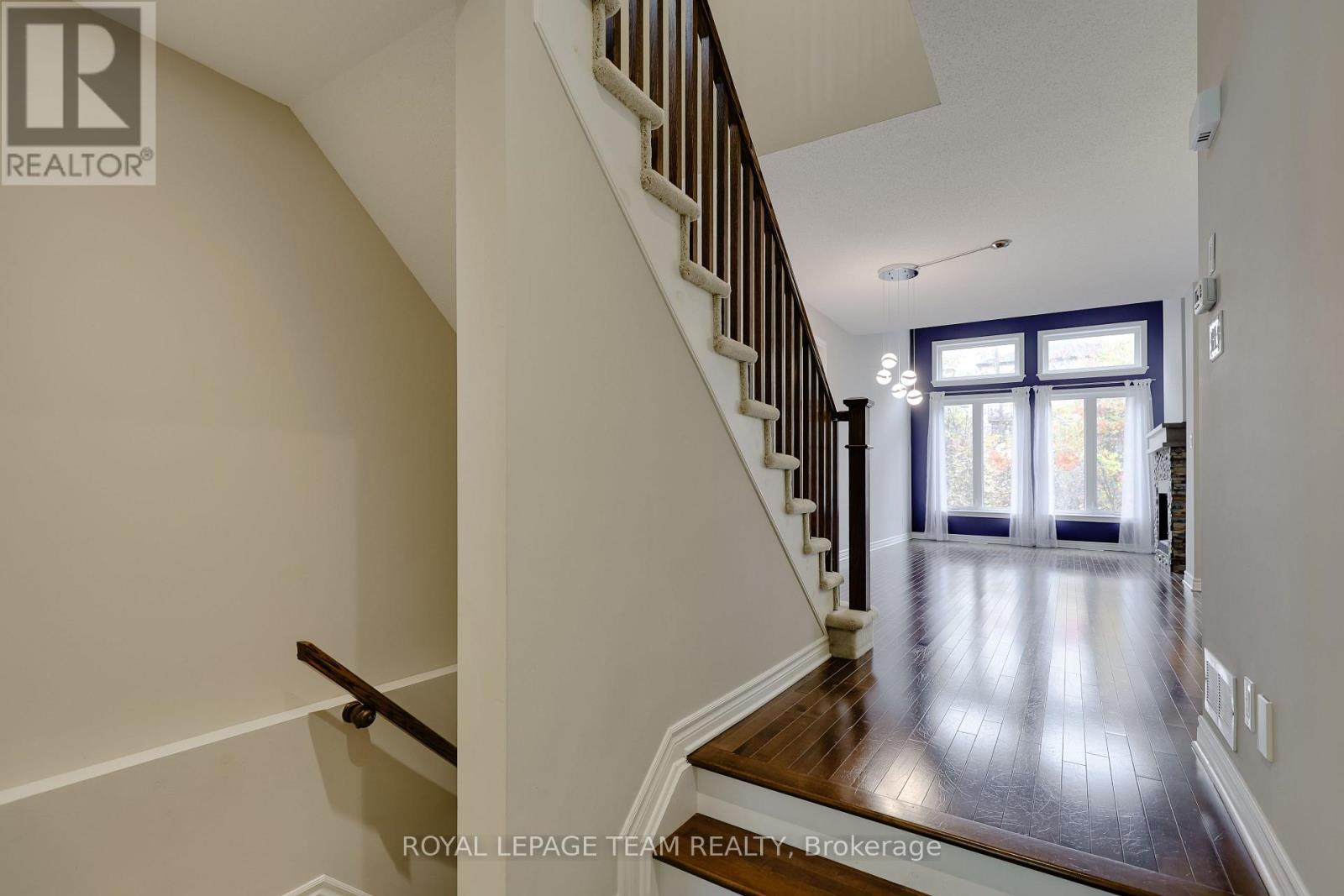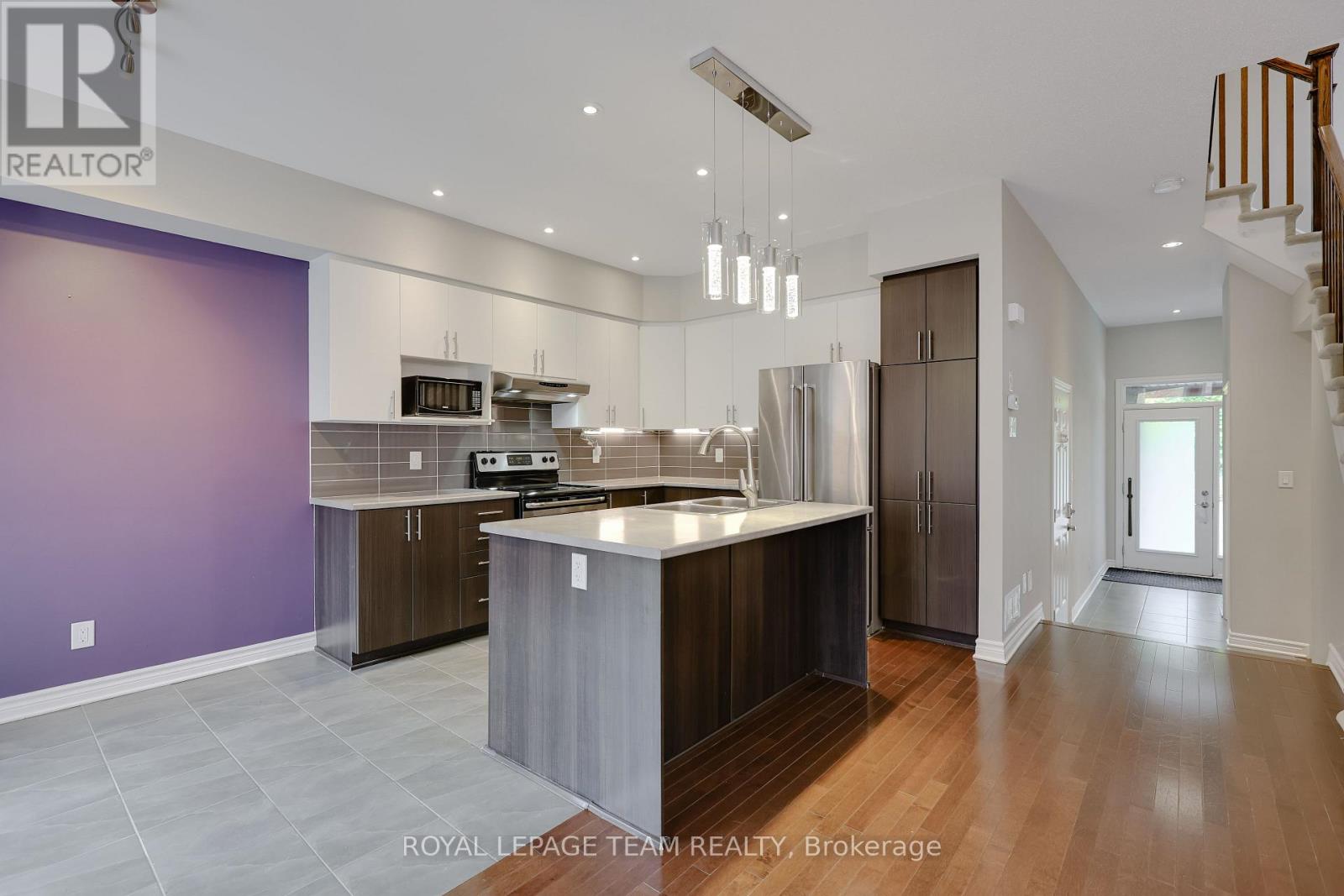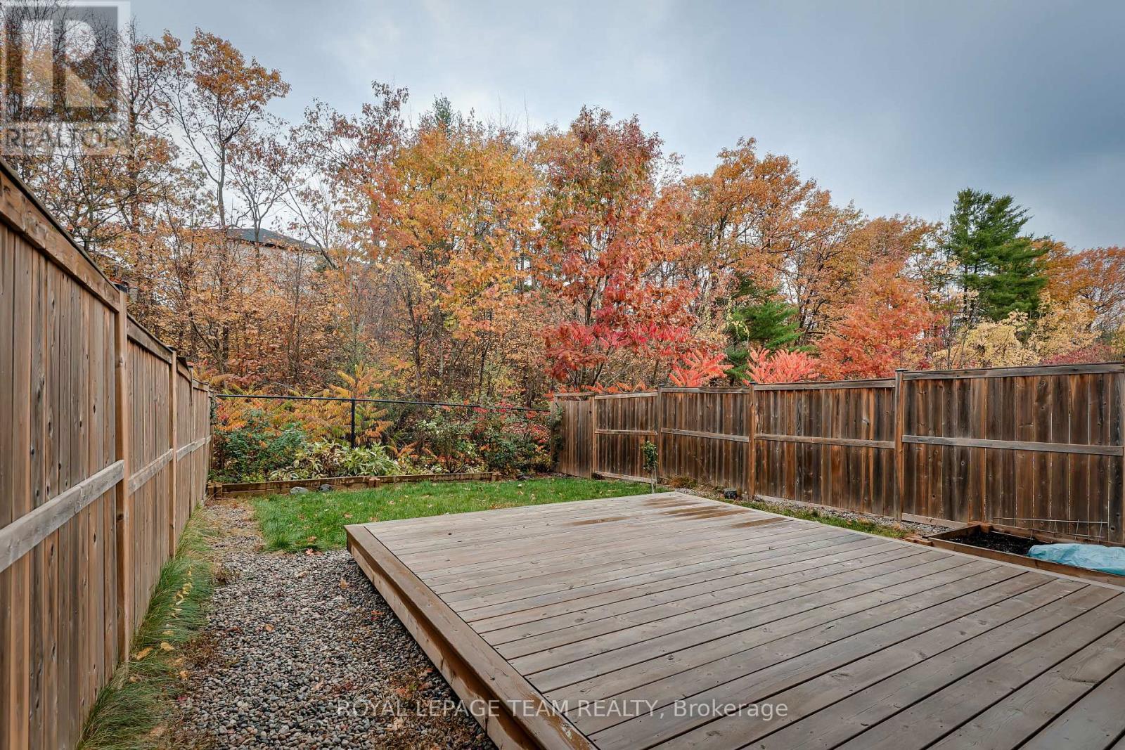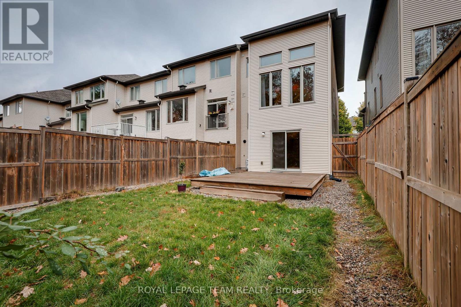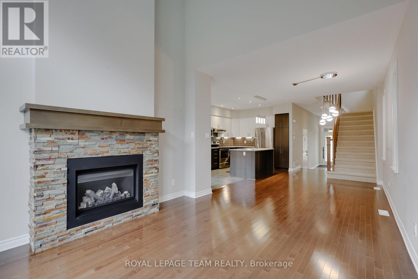 Welcome to this elegant and contemporary 3-bedroom, 2.5-bath Addison model end-unit townhome in prestigious Kanata Lakes - a residence that blends functionality, comfort, and charm in one beautiful package. The highlight of this home is the bright walk-out basement, expanding your living space and leading to a private, fully fenced backyard where you can relax, garden, or entertain under open skies. From the moment you arrive, the widened interlock driveway, tasteful brick exterior, single-car garage, and neat front entry create a polished first impression, offering 1+4 total parking spaces for added convenience. Inside, the main floor greets you with an open-concept layout featuring hardwood flooring, large windows, and a cozy gas fireplace that anchors the living and dining areas beneath a vaulted ceiling. The kitchen offers both style and efficiency with tile flooring, a breakfast bar, generous cabinetry, and a sunny eating nook that opens to a charming Juliette balcony - perfect for morning coffee. Upstairs, the spacious primary bedroom includes a walk-in closet and spa-inspired ensuite, while two additional bedrooms share a bright full bath. A convenient laundry closet completes this level for modern everyday ease. The finished lower level adds remarkable versatility - ideal as a recreation room, home gym, or office - with patio doors opening directly to the backyard, creating a seamless indoor-outdoor flow. With a fenced yard for privacy, central A/C, and garage entry access, this home is fully equipped for comfortable living. Set in a quiet, family-friendly community near top-rated schools, parks, golf courses, and the Kanata High Tech Park, plus just minutes from shops, restaurants, and transit, it offers the perfect balance of tranquillity and convenience. Stylish, well-maintained, and move-in ready - this is the one you've been waiting for. (id:49712)