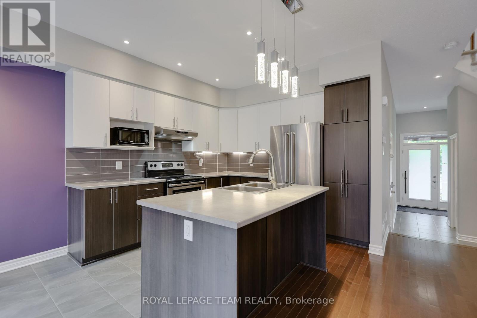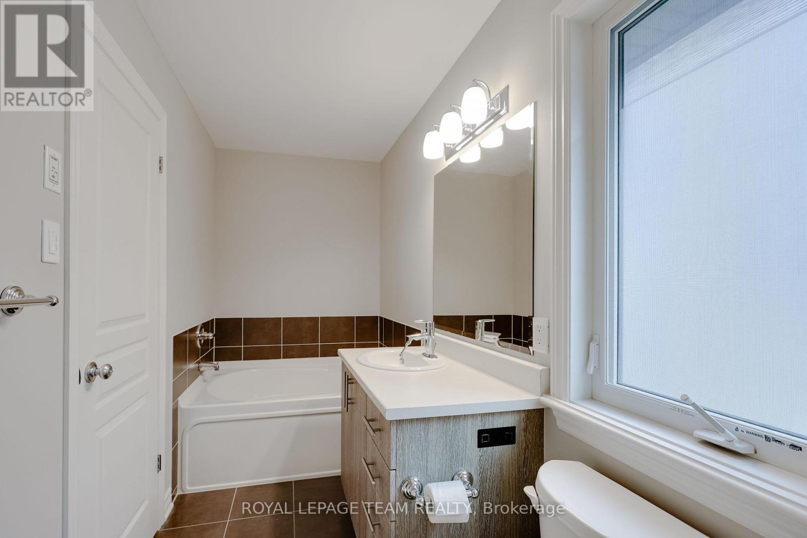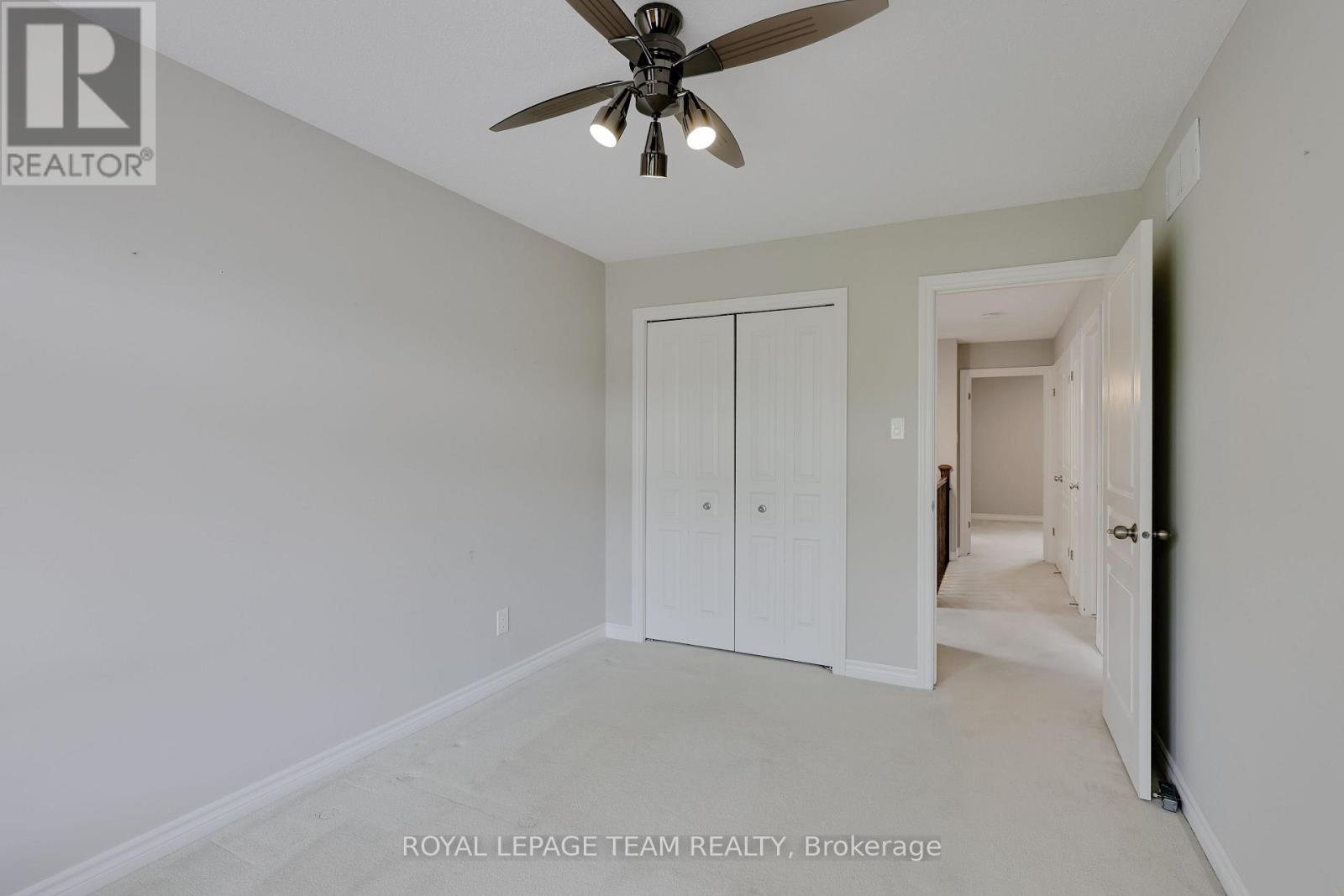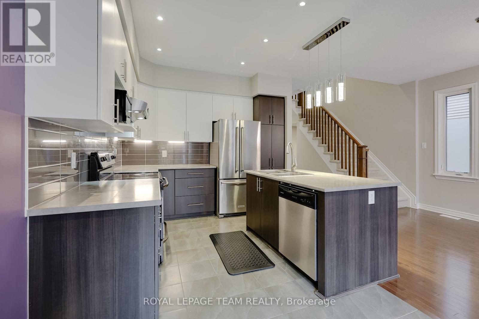 Welcome to this elegant and contemporary 3-bedroom, 2.5-bath Addison model end-unit townhome in prestigious Kanata Lakes - a residence that blends functionality, comfort, and charm in one beautiful package. The highlight of this home is the bright walk-out basement, expanding your living space and leading to a private, fully fenced backyard where you can relax, garden, or entertain under open skies. From the moment you arrive, the widened interlock driveway, tasteful brick exterior, single-car garage, and neat front entry create a polished first impression, offering 1+4 total parking spaces for added convenience. Inside, the main floor greets you with an open-concept layout featuring hardwood flooring, large windows, and a cozy gas fireplace that anchors the living and dining areas beneath a vaulted ceiling. The kitchen offers both style and efficiency with tile flooring, a breakfast bar, generous cabinetry, and a sunny eating nook that opens to a charming Juliette balcony - perfect for morning coffee. Upstairs, the spacious primary bedroom includes a walk-in closet and spa-inspired ensuite, while two additional bedrooms share a bright full bath. A convenient laundry closet completes this level for modern everyday ease. The finished lower level adds remarkable versatility - ideal as a recreation room, home gym, or office - with patio doors opening directly to the backyard, creating a seamless indoor-outdoor flow. With a fenced yard for privacy, central A/C, and garage entry access, this home is fully equipped for comfortable living. Set in a quiet, family-friendly community near top-rated schools, parks, golf courses, and the Kanata High Tech Park, plus just minutes from shops, restaurants, and transit, it offers the perfect balance of tranquillity and convenience. Stylish, well-maintained, and move-in ready - this is the one you've been waiting for. (id:49712)