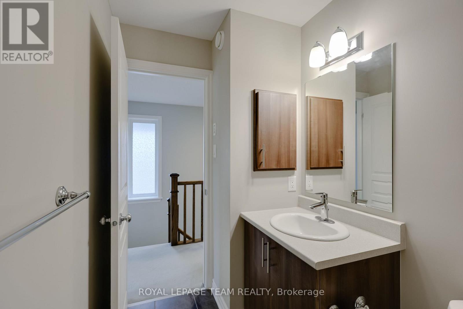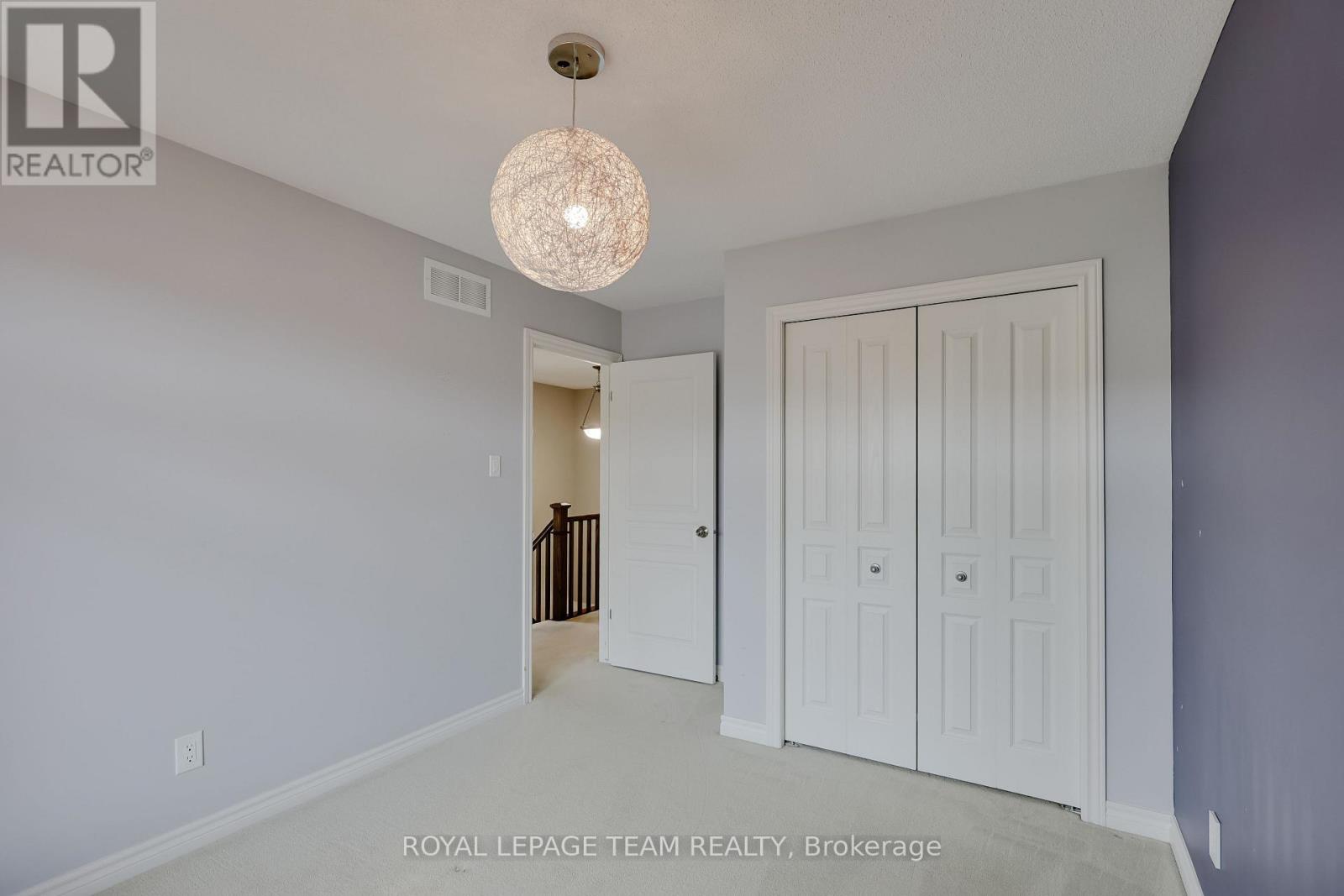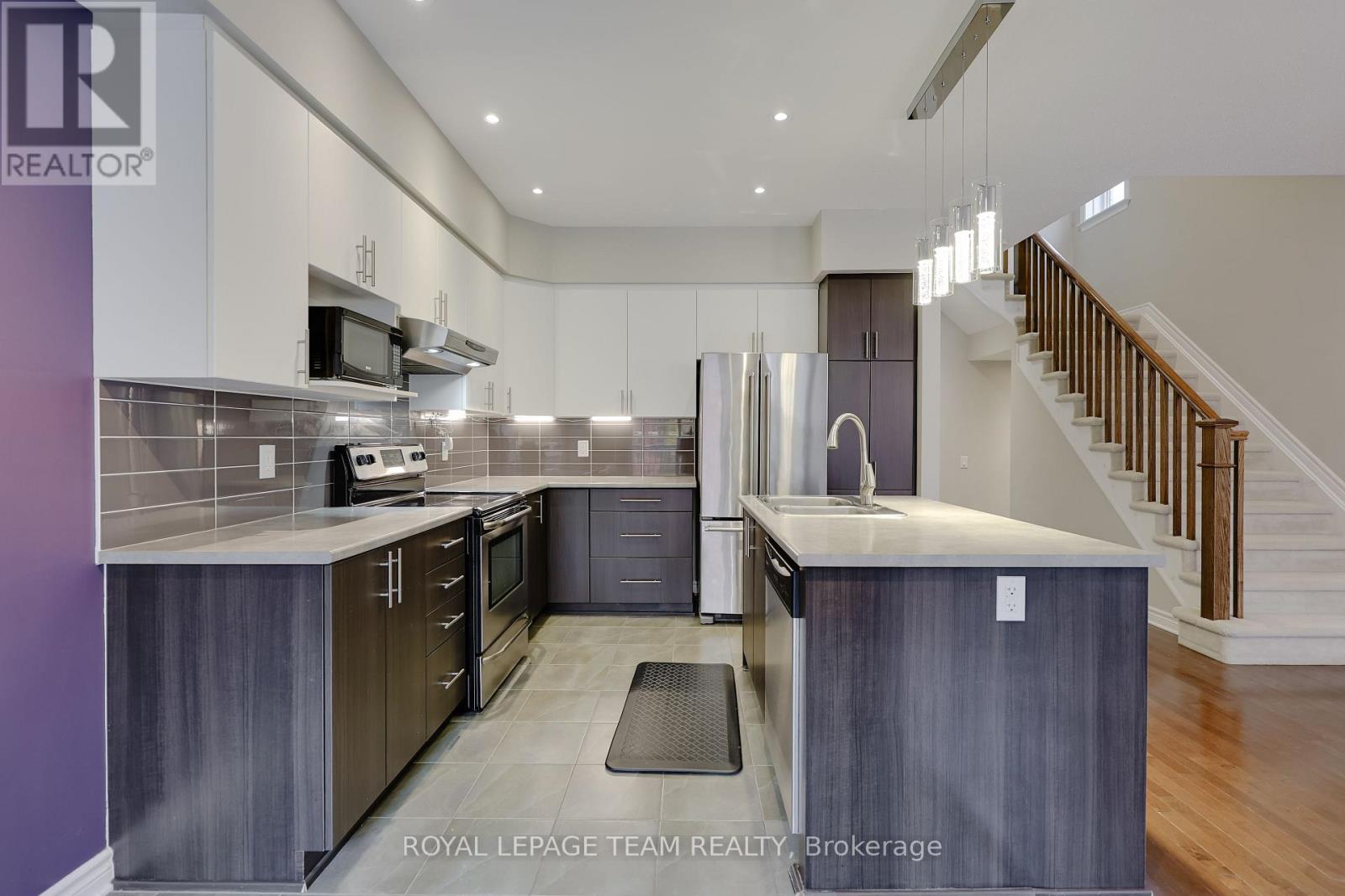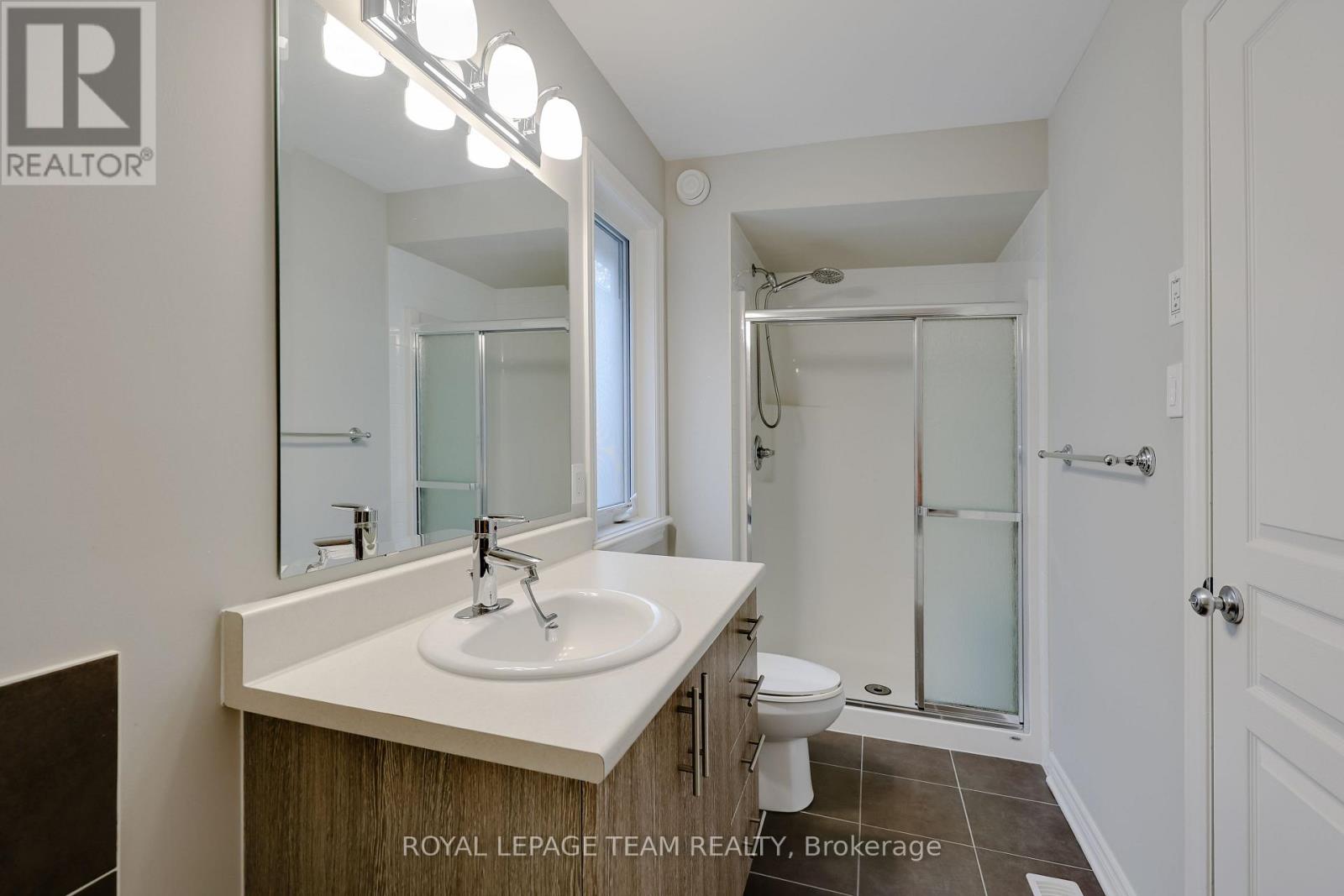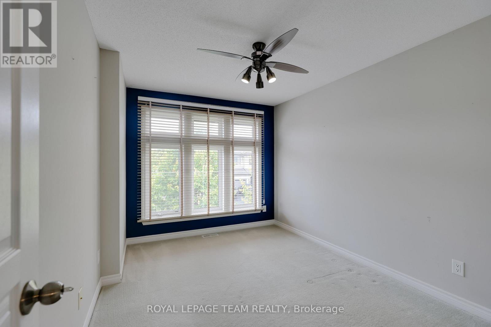 Welcome to this elegant and contemporary 3-bedroom, 2.5-bath Addison model end-unit townhome in prestigious Kanata Lakes - a residence that blends functionality, comfort, and charm in one beautiful package. The highlight of this home is the bright walk-out basement, expanding your living space and leading to a private, fully fenced backyard where you can relax, garden, or entertain under open skies. From the moment you arrive, the widened interlock driveway, tasteful brick exterior, single-car garage, and neat front entry create a polished first impression, offering 1+4 total parking spaces for added convenience. Inside, the main floor greets you with an open-concept layout featuring hardwood flooring, large windows, and a cozy gas fireplace that anchors the living and dining areas beneath a vaulted ceiling. The kitchen offers both style and efficiency with tile flooring, a breakfast bar, generous cabinetry, and a sunny eating nook that opens to a charming Juliette balcony - perfect for morning coffee. Upstairs, the spacious primary bedroom includes a walk-in closet and spa-inspired ensuite, while two additional bedrooms share a bright full bath. A convenient laundry closet completes this level for modern everyday ease. The finished lower level adds remarkable versatility - ideal as a recreation room, home gym, or office - with patio doors opening directly to the backyard, creating a seamless indoor-outdoor flow. With a fenced yard for privacy, central A/C, and garage entry access, this home is fully equipped for comfortable living. Set in a quiet, family-friendly community near top-rated schools, parks, golf courses, and the Kanata High Tech Park, plus just minutes from shops, restaurants, and transit, it offers the perfect balance of tranquillity and convenience. Stylish, well-maintained, and move-in ready - this is the one you've been waiting for. (id:49712)
