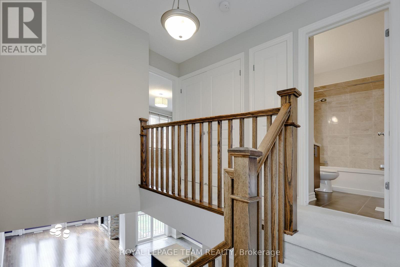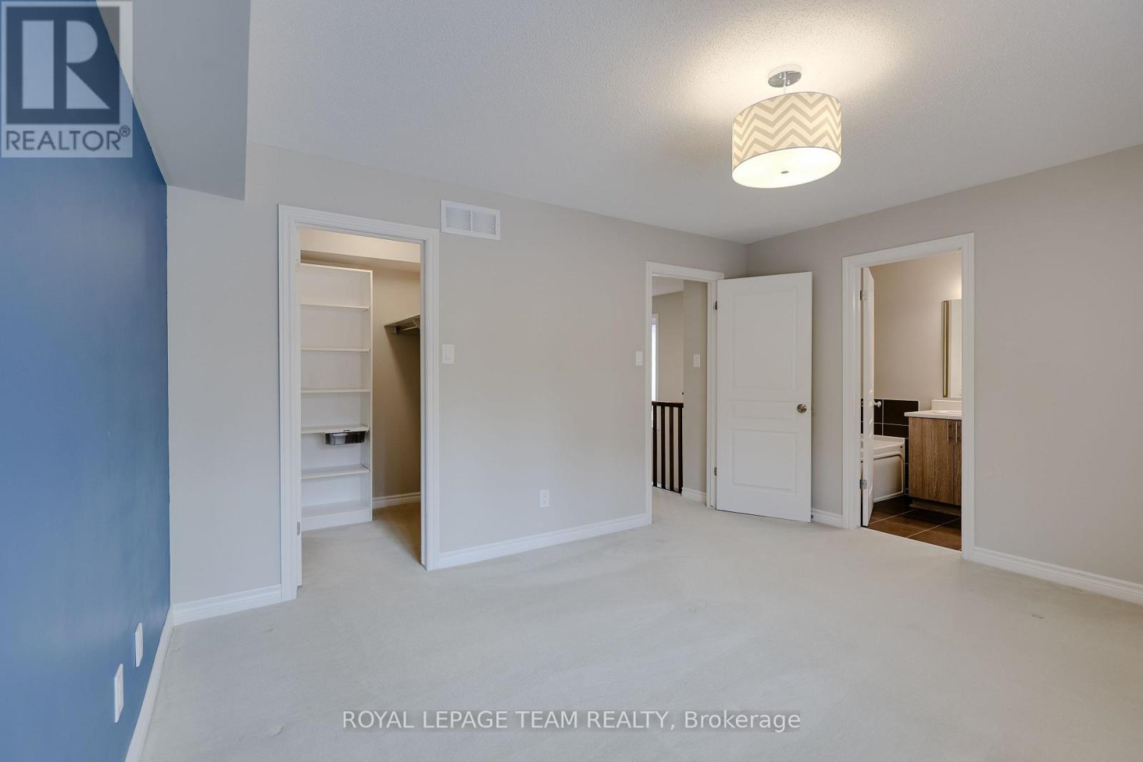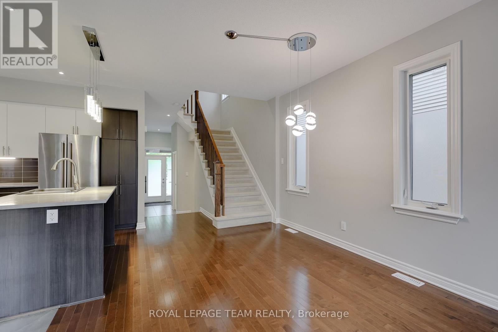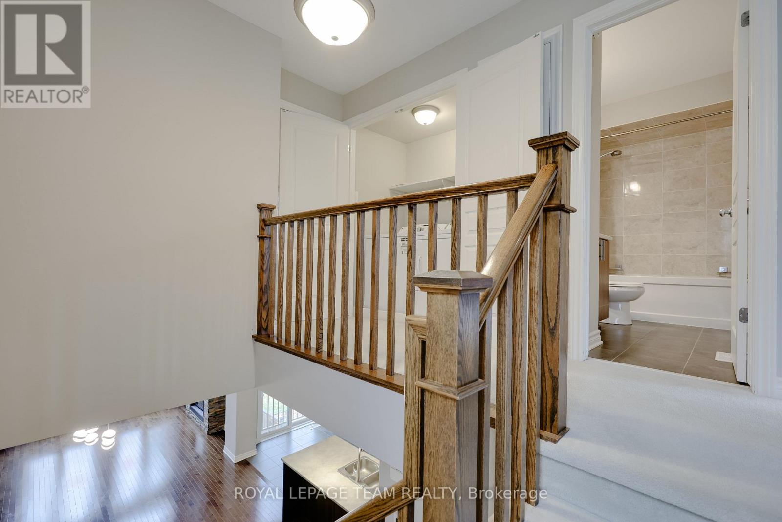 Welcome to this elegant and contemporary 3-bedroom, 2.5-bath Addison model end-unit townhome in prestigious Kanata Lakes - a residence that blends functionality, comfort, and charm in one beautiful package. The highlight of this home is the bright walk-out basement, expanding your living space and leading to a private, fully fenced backyard where you can relax, garden, or entertain under open skies. From the moment you arrive, the widened interlock driveway, tasteful brick exterior, single-car garage, and neat front entry create a polished first impression, offering 1+4 total parking spaces for added convenience. Inside, the main floor greets you with an open-concept layout featuring hardwood flooring, large windows, and a cozy gas fireplace that anchors the living and dining areas beneath a vaulted ceiling. The kitchen offers both style and efficiency with tile flooring, a breakfast bar, generous cabinetry, and a sunny eating nook that opens to a charming Juliette balcony - perfect for morning coffee. Upstairs, the spacious primary bedroom includes a walk-in closet and spa-inspired ensuite, while two additional bedrooms share a bright full bath. A convenient laundry closet completes this level for modern everyday ease. The finished lower level adds remarkable versatility - ideal as a recreation room, home gym, or office - with patio doors opening directly to the backyard, creating a seamless indoor-outdoor flow. With a fenced yard for privacy, central A/C, and garage entry access, this home is fully equipped for comfortable living. Set in a quiet, family-friendly community near top-rated schools, parks, golf courses, and the Kanata High Tech Park, plus just minutes from shops, restaurants, and transit, it offers the perfect balance of tranquillity and convenience. Stylish, well-maintained, and move-in ready - this is the one you've been waiting for. (id:49712)