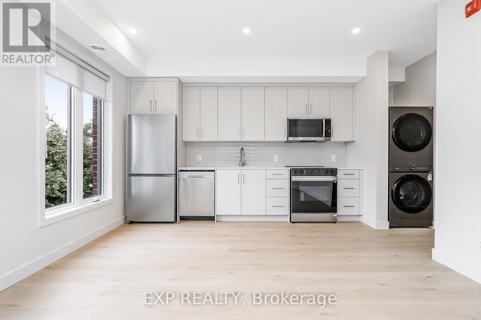 Welcome to 1267 Summerville - a brand-new, contemporary building nestled in one of Ottawa's most convenient and rapidly developing communities. Surrounded by parks, local amenities, and offering quick access to public transit and major routes, this location delivers the perfect blend of urban accessibility and neighbourhood charm.This 1-bedroom, 1-bath third-floor unit impresses with large windows that fill the space with natural light, creating an open and inviting atmosphere. The modern, open-concept layout features premium finishes, hardwood flooring throughout, and a sleek kitchen complete with stainless steel appliances, contemporary cabinetry, and ample counter space - perfect for cooking and entertaining.The spacious primary bedroom is bright and welcoming, complemented by a stylish full bathroom with modern finishes. Residents will also appreciate the in-unit laundry, thoughtful craftsmanship, and attention to detail throughout.Parking available for an additional charge.1267 Summerville offers the best of modern living - stylish, functional, and perfectly located. (id:49712)