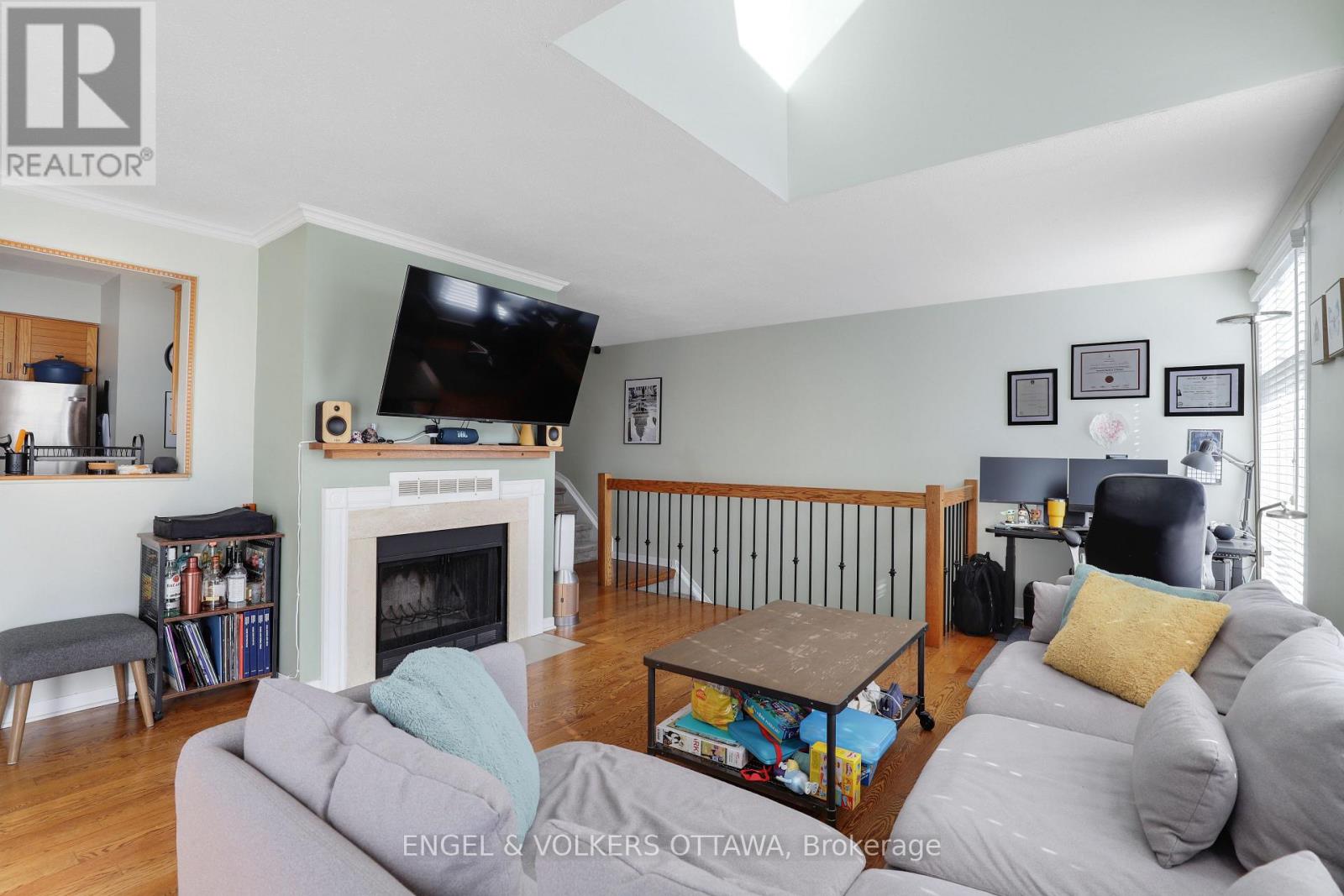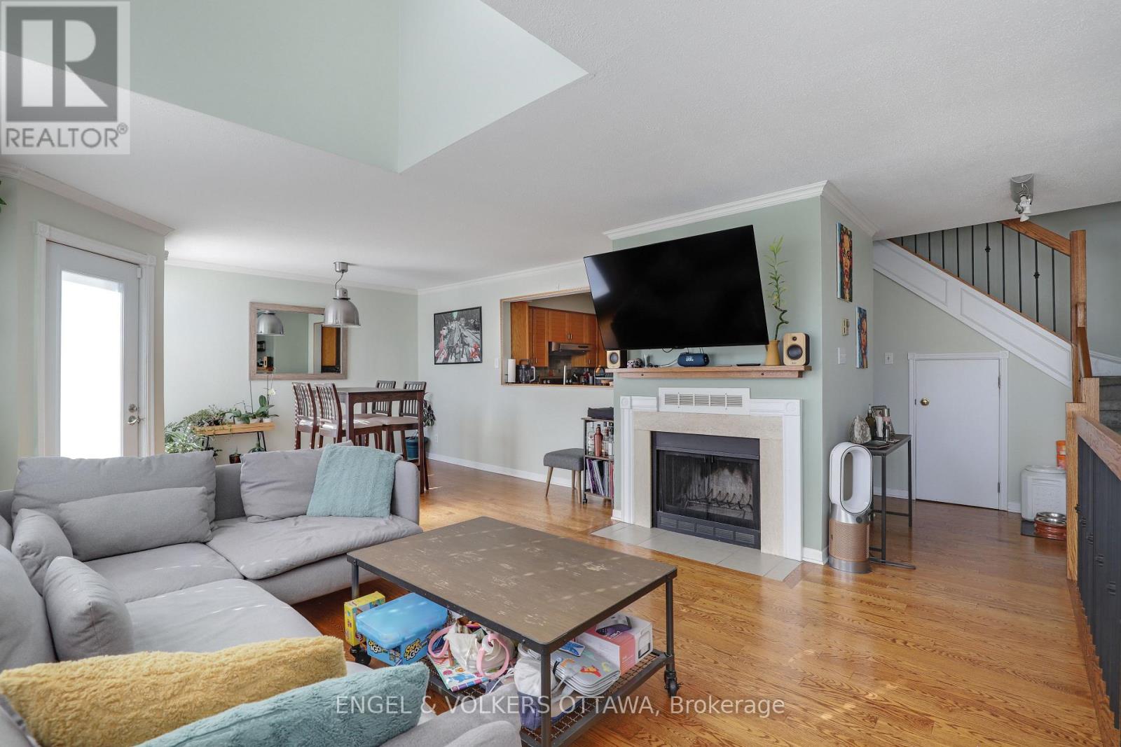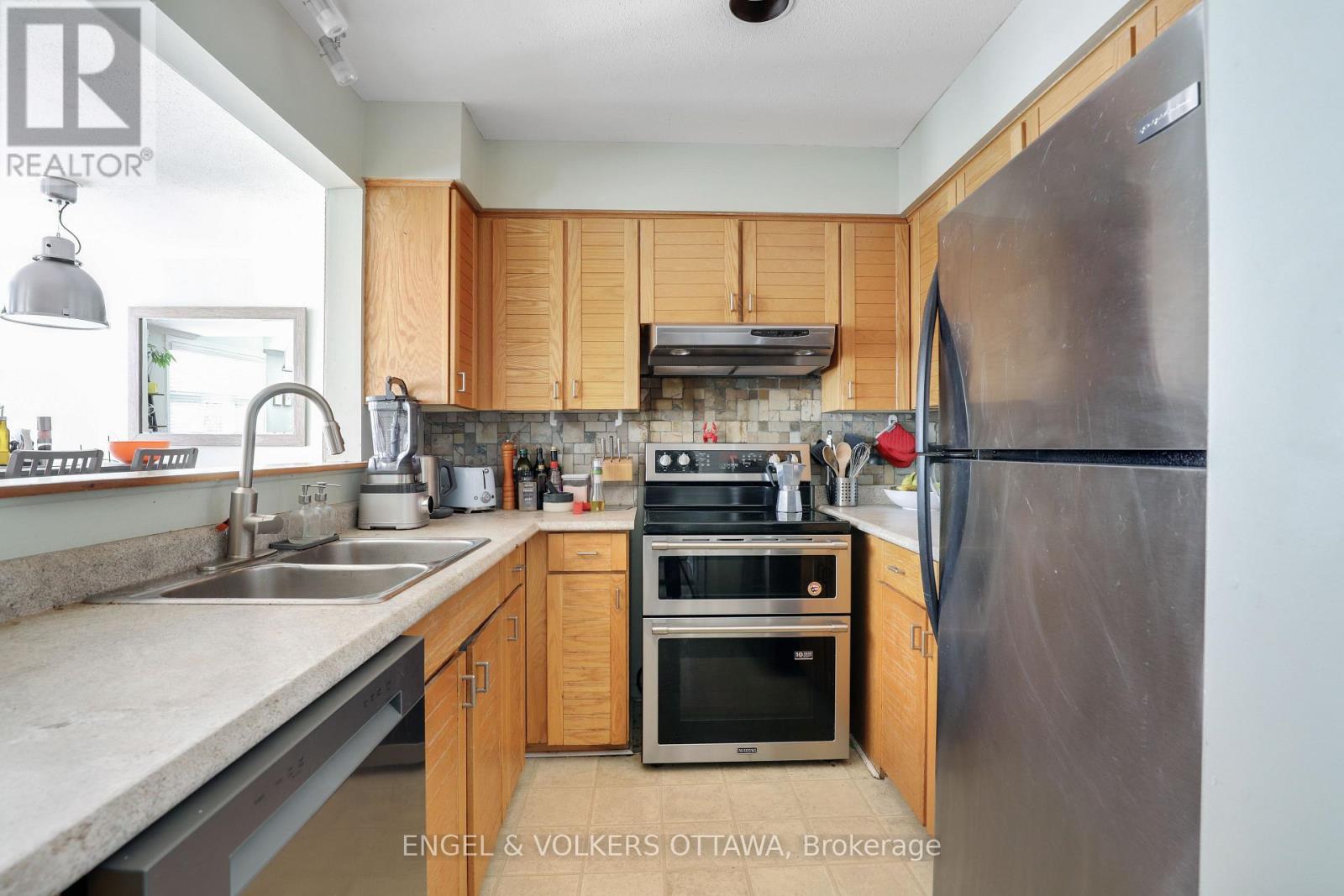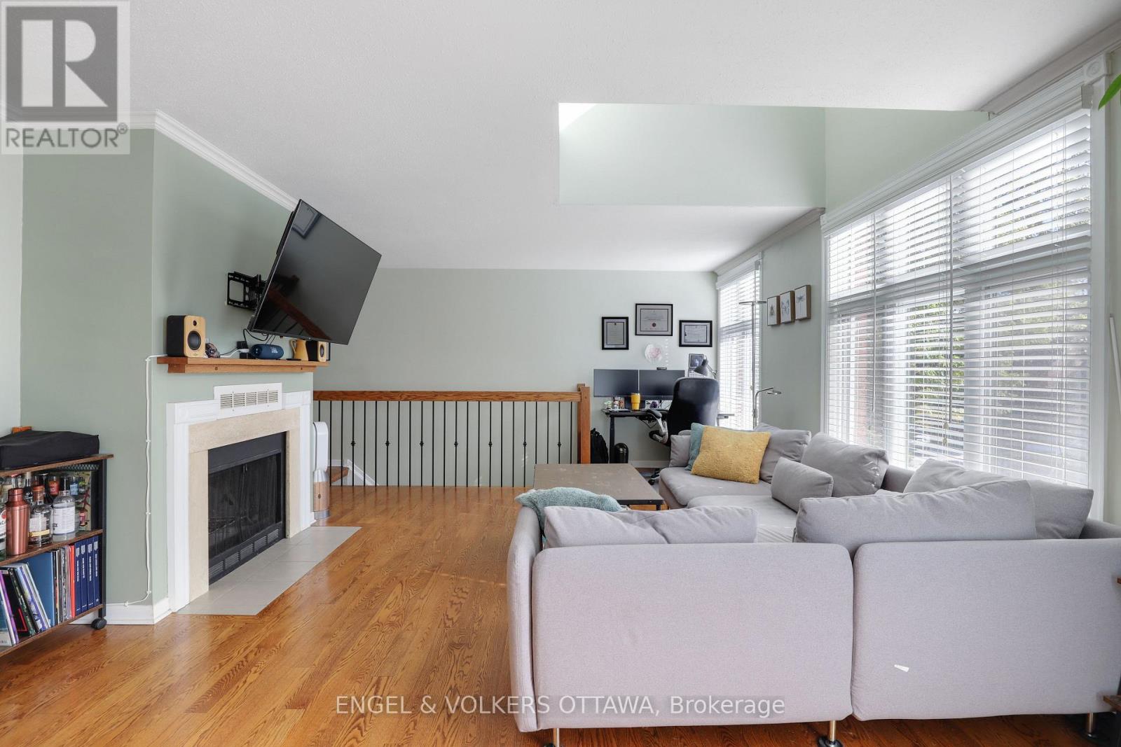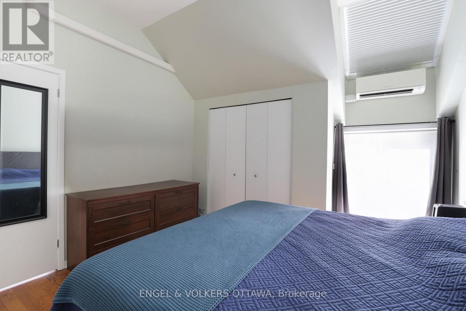 Beautiful two-storey stacked condo located on a quiet, tree-lined street in Old Ottawa East, just steps from the Rideau Canal. The main level features a bright and airy open-concept living and dining area with hardwood floors, large windows, a wood-burning fireplace, and a powder room. A balcony with a gas barbecue hookup extends the living space outdoors. Upstairs, the spacious primary bedroom offers lofted ceilings and skylight windows, along with a second full bathroom and additional bedroom. Complete with stainless steel appliances, in-unit laundry, garage parking, and a storage locker, this home combines comfort and character in a prime central location near UOttawa, the 417, and downtown. Close to shopping, transit, restaurants, and more. (id:49712)