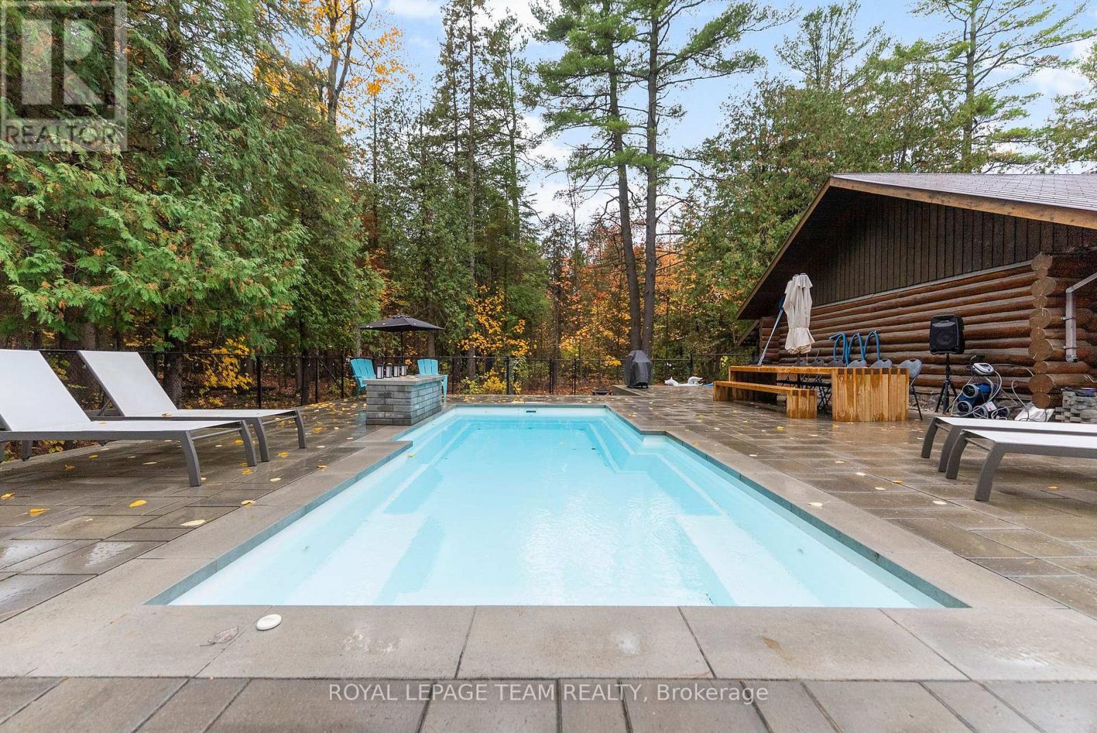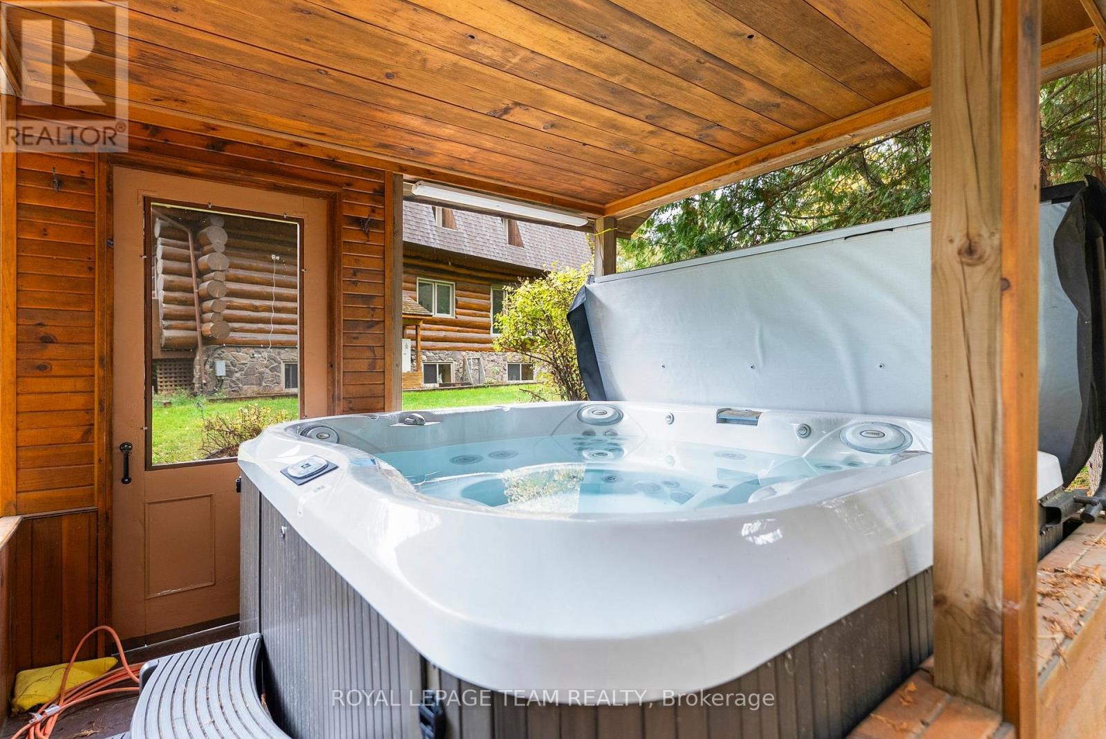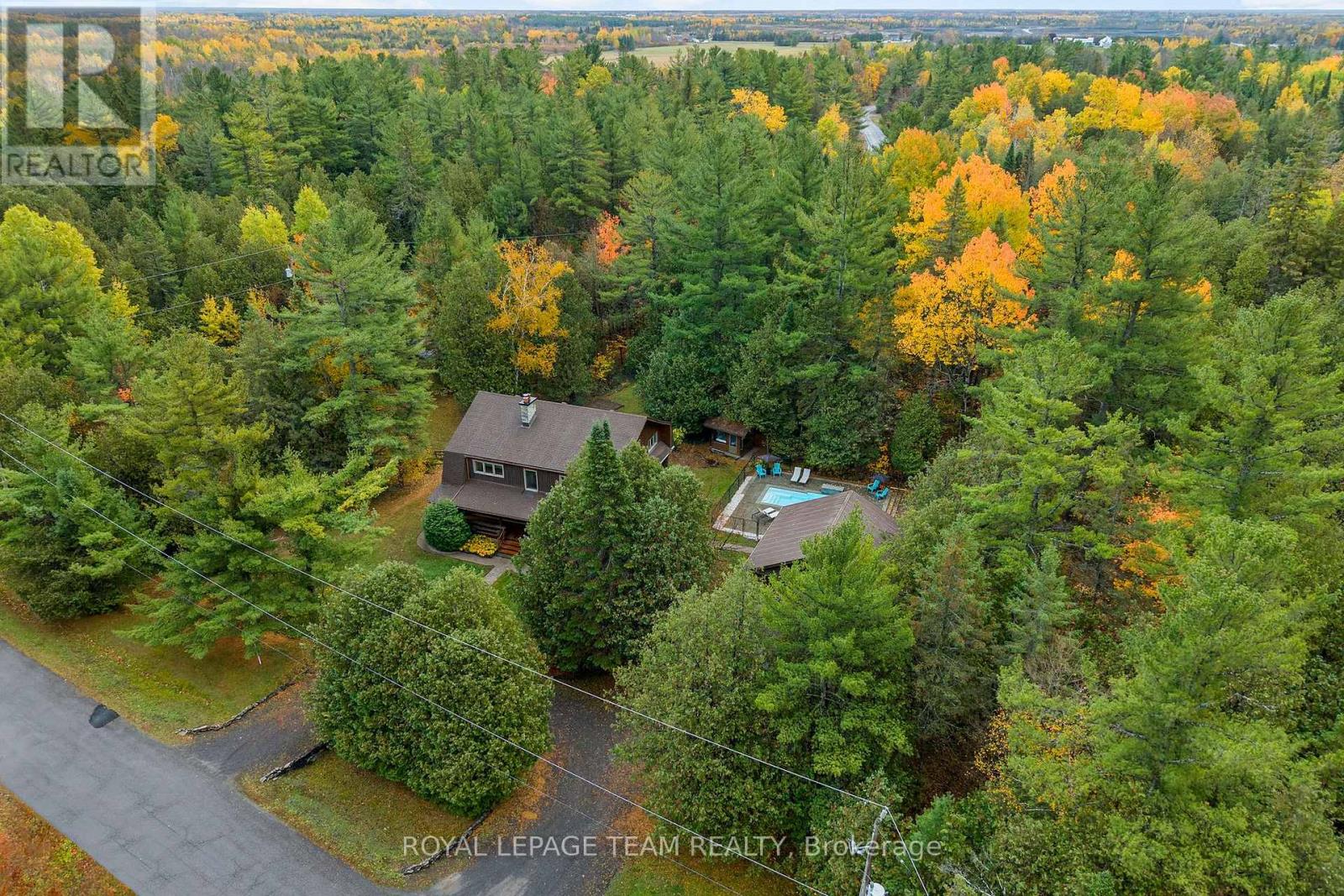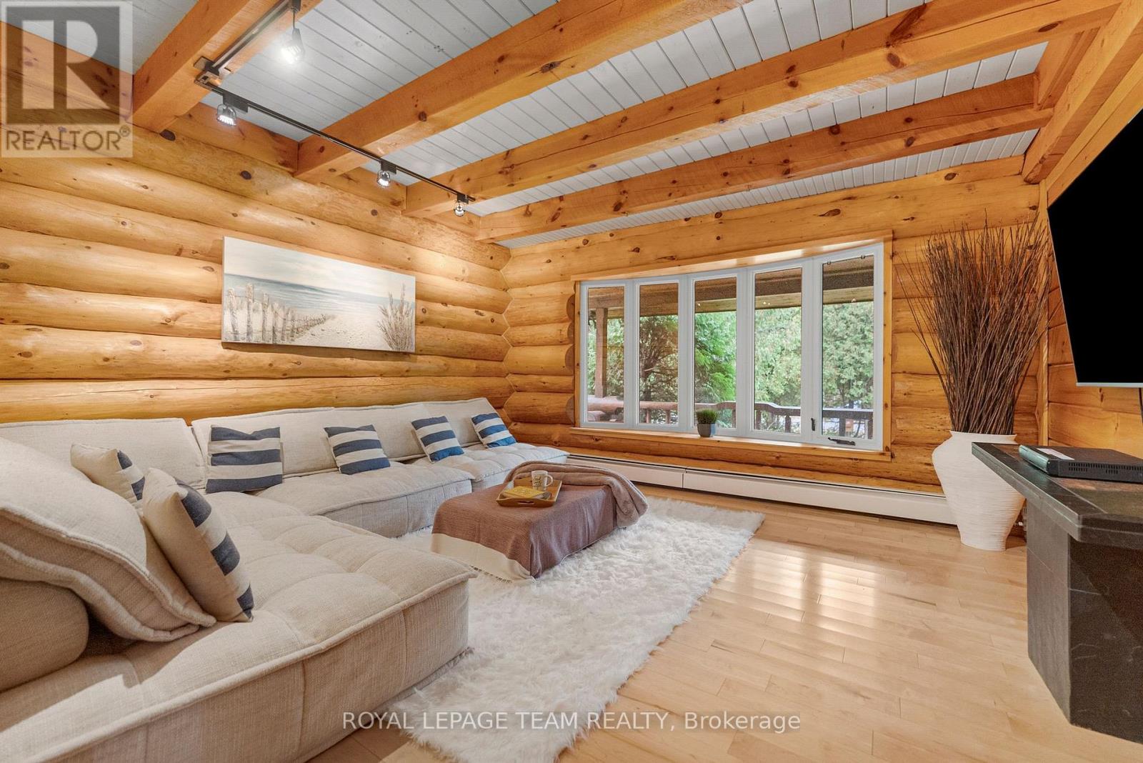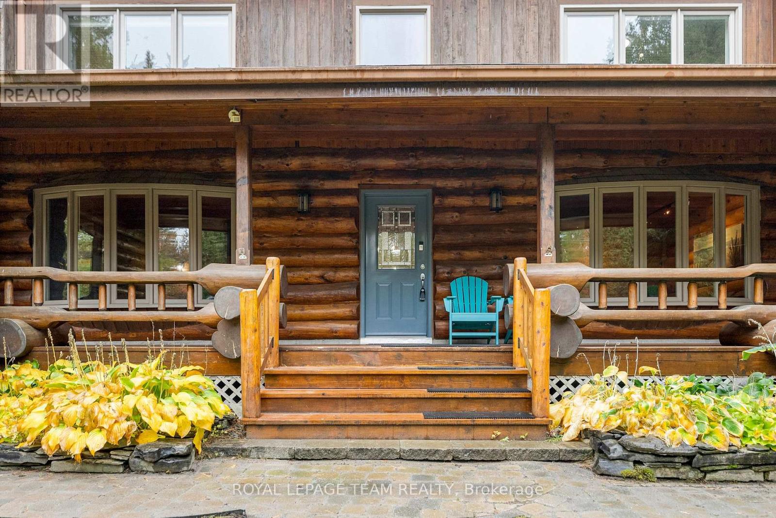 Situated on a peaceful 2-acre lot in Stittsville, this custom-built detached log home is a true masterpiece of rustic elegance and modern comfort. The handcrafted wood exterior and charming front porch invite you into a world where country serenity meets contemporary luxury. Step inside to discover 4 bedrooms and 3 bathrooms spread over an expansive living space, thoughtfully designed for family living and effortless entertaining. The recently updated kitchen steals the spotlight with its gleaming stainless steel appliances, quartz countertops, tiled backsplash, elegant cabinetry, and a bright eat-in area - the perfect space to gather over morning coffee. The main floor's flowing layout connects the dining room and cozy family room, into a spacious living area, all framed by rich wood beams and sweeping views of the surrounding green space. Upstairs, new hardwood flooring guides you to four generously sized bedrooms. The primary suite is a luxurious escape featuring a large walk-in closet and a renovated ensuite adorned with modern finishes. A second full bath, complete with dual vanities and unique touches, ensures comfort for everyone. The basement offers endless flexibility - a perfect spot for a home theatre, gym, or games room and additional storage. Outside, unwind in your private oasis with a newly installed pool, relaxing hot tub, and sprawling lawn - the ideal backdrop for summer gatherings. Year-round comfort is ensured with a radiant heating system with a high efficiency boiler. A detached 2-car log garage provides ample space for vehicles, tools, and outdoor gear. A rare blend of craftsmanship, comfort, and charm - this log home redefines rural luxury just minutes from the heart of Stittsville. 24 hour Irrevocable. (id:49712)