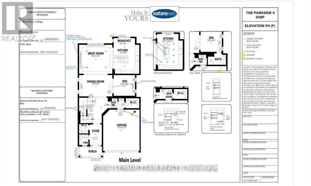 FINISHED BASEMENT WITH FULL BATH! Welcome to one of Mattamy's most popular models, the Parkside 2, offering over $146,000 in upgrades. This stunning double-car garage home in the sought-after Half Moon Bay community is brand new and set for completion next year. The inviting front porch opens into a spacious foyer with a powder room and walk-in closet, leading to a mudroom with inside garage access and additional storage. The main floor features an open-concept layout with a dining room, a great room with an electric fireplace, and a separate den with French doors, ideal as a home office or a separate living space. The chef's kitchen includes a large island, quartz countertops, upgraded cabinetry, and a breakfast nook with patio doors to the backyard. Hardwood stairs take you to the second floor, where the primary bedroom impresses with a massive walk-in closet and a luxurious spa-like 5-piece ensuite. Bedrooms 2 and 3 share a Jack & Jill bathroom, Bedroom 4 enjoys its own ensuite, and all have walk-in closets. A convenient second-floor laundry adds to the functionality. The fully finished basement includes a large rec room and a full bathroom, perfect for additional living space. Located on a quiet street in a family-friendly neighbourhood, this home is just minutes from trails, Barrhaven Marketplace, top-rated schools, the Minto Recreation Centre, and more. The photos are intended solely to showcase the builder's finishes. (id:49712)