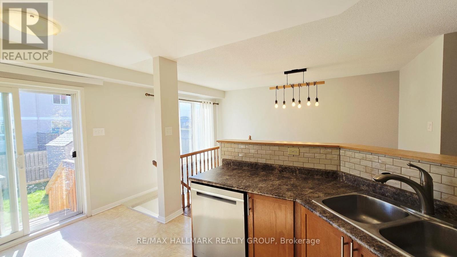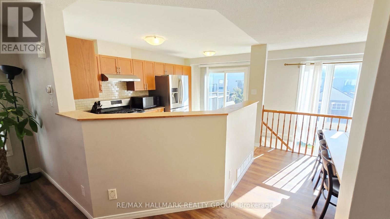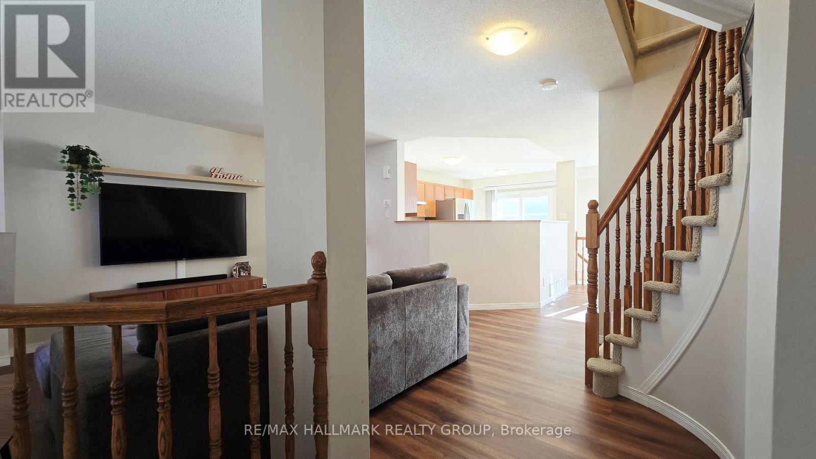 END-UNIT in MOVE-IN CONDITION! Experience the vibrant energy of Kanata's High Tech neighbourhood in this incredible 3-Bedroom, 2 Bath End-Unit Townhome. Enjoy easy access to amenities, including parks, trails, schools, shopping, recreational facilities, a golf course and public transit. This home is set and ready for you to move in, so step inside to a sun-filled open-concept main floor featuring cheery living and dining areas, and a well-appointed kitchen with abundant cabinetry, generous counter space and stainless steel appliances-including a natural gas range. South-facing windows flood this home with natural light, creating a warm and happy atmosphere. Upstairs, the large Primary Bedroom impresses with a double-door entry, while two additional bedrooms offer flexibility for family, guests, or a home office. The main bathroom is a welcomed retreat with its large soaker tub and comes with a separate shower. The lower-level family room is bright and cozy, thanks to a large window above the staircase. Lots of storage space in the unfinished section. Note: Brand new carpeting installed on staircases. Updated laminate flooring in principal rooms for easy care & durability. Outside, enjoy the southern exposed, fenced yard with patio & storage shed, is the perfect place for pets and children to play safely. A covered front porch adds to the front curb appeal. Parking for 2 cars in the laneway. You'll love the location of this home! Whether you're a tech enthusiast or simply seeking a thriving community for you and your family, don't miss your chance to own in one of Kanata's most connected and family-friendly communities! (id:49712)