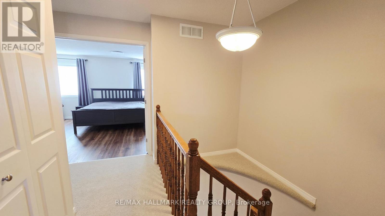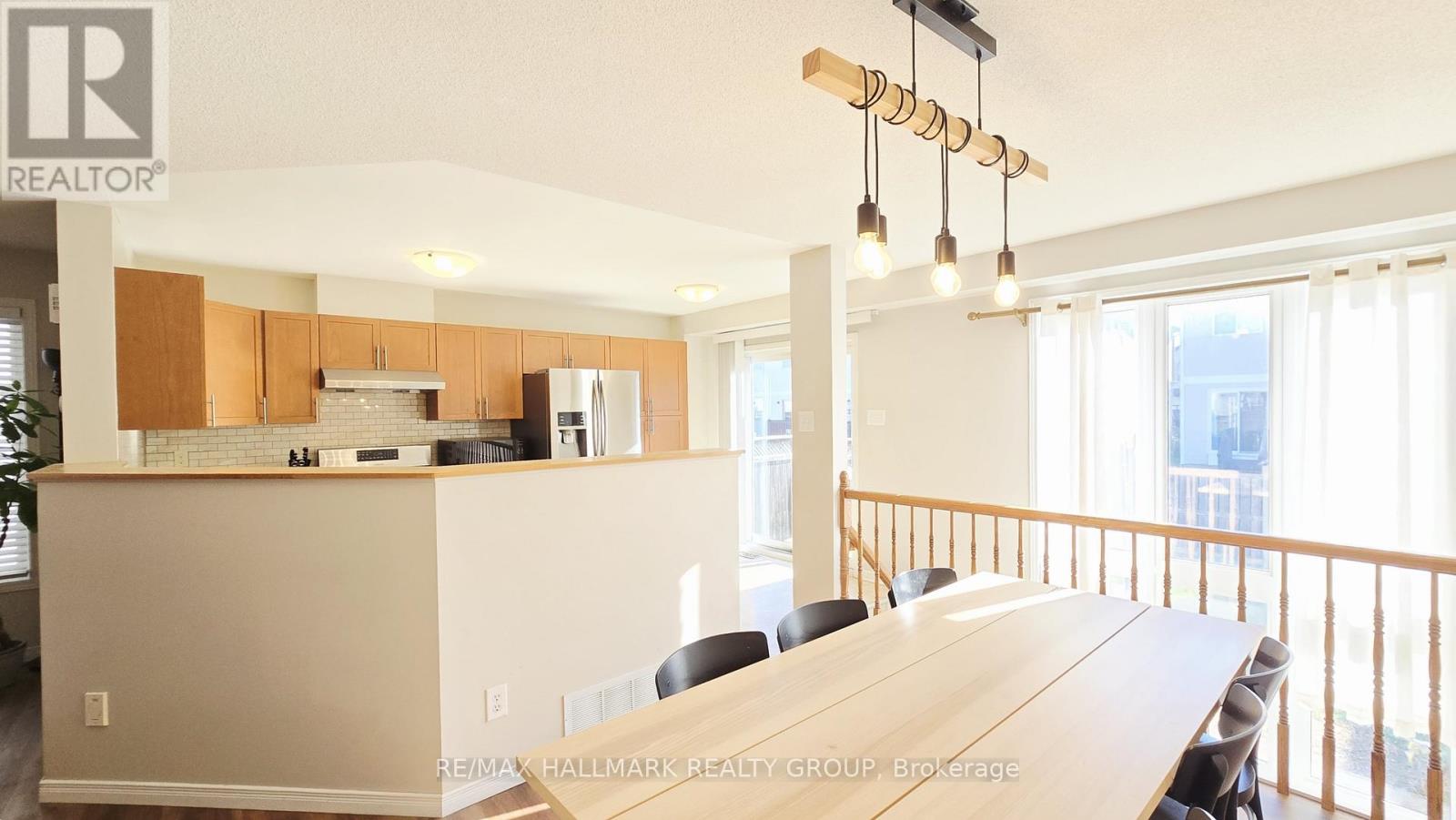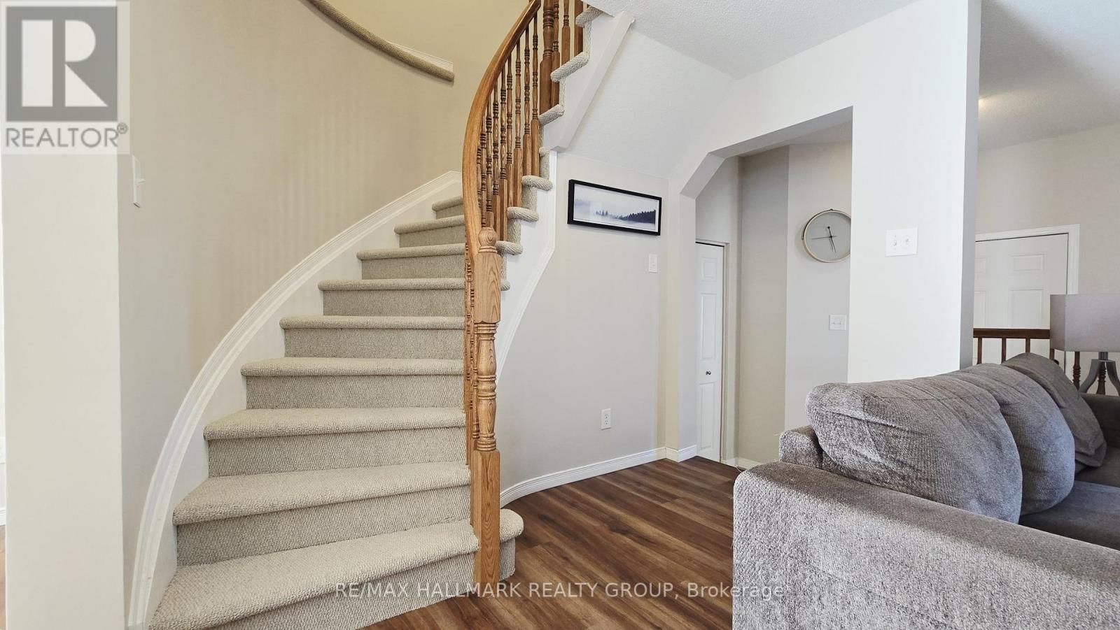 END-UNIT in MOVE-IN CONDITION! Experience the vibrant energy of Kanata's High Tech neighbourhood in this incredible 3-Bedroom, 2 Bath End-Unit Townhome. Enjoy easy access to amenities, including parks, trails, schools, shopping, recreational facilities, a golf course and public transit. This home is set and ready for you to move in, so step inside to a sun-filled open-concept main floor featuring cheery living and dining areas, and a well-appointed kitchen with abundant cabinetry, generous counter space and stainless steel appliances-including a natural gas range. South-facing windows flood this home with natural light, creating a warm and happy atmosphere. Upstairs, the large Primary Bedroom impresses with a double-door entry, while two additional bedrooms offer flexibility for family, guests, or a home office. The main bathroom is a welcomed retreat with its large soaker tub and comes with a separate shower. The lower-level family room is bright and cozy, thanks to a large window above the staircase. Lots of storage space in the unfinished section. Note: Brand new carpeting installed on staircases. Updated laminate flooring in principal rooms for easy care & durability. Outside, enjoy the southern exposed, fenced yard with patio & storage shed, is the perfect place for pets and children to play safely. A covered front porch adds to the front curb appeal. Parking for 2 cars in the laneway. You'll love the location of this home! Whether you're a tech enthusiast or simply seeking a thriving community for you and your family, don't miss your chance to own in one of Kanata's most connected and family-friendly communities! (id:49712)