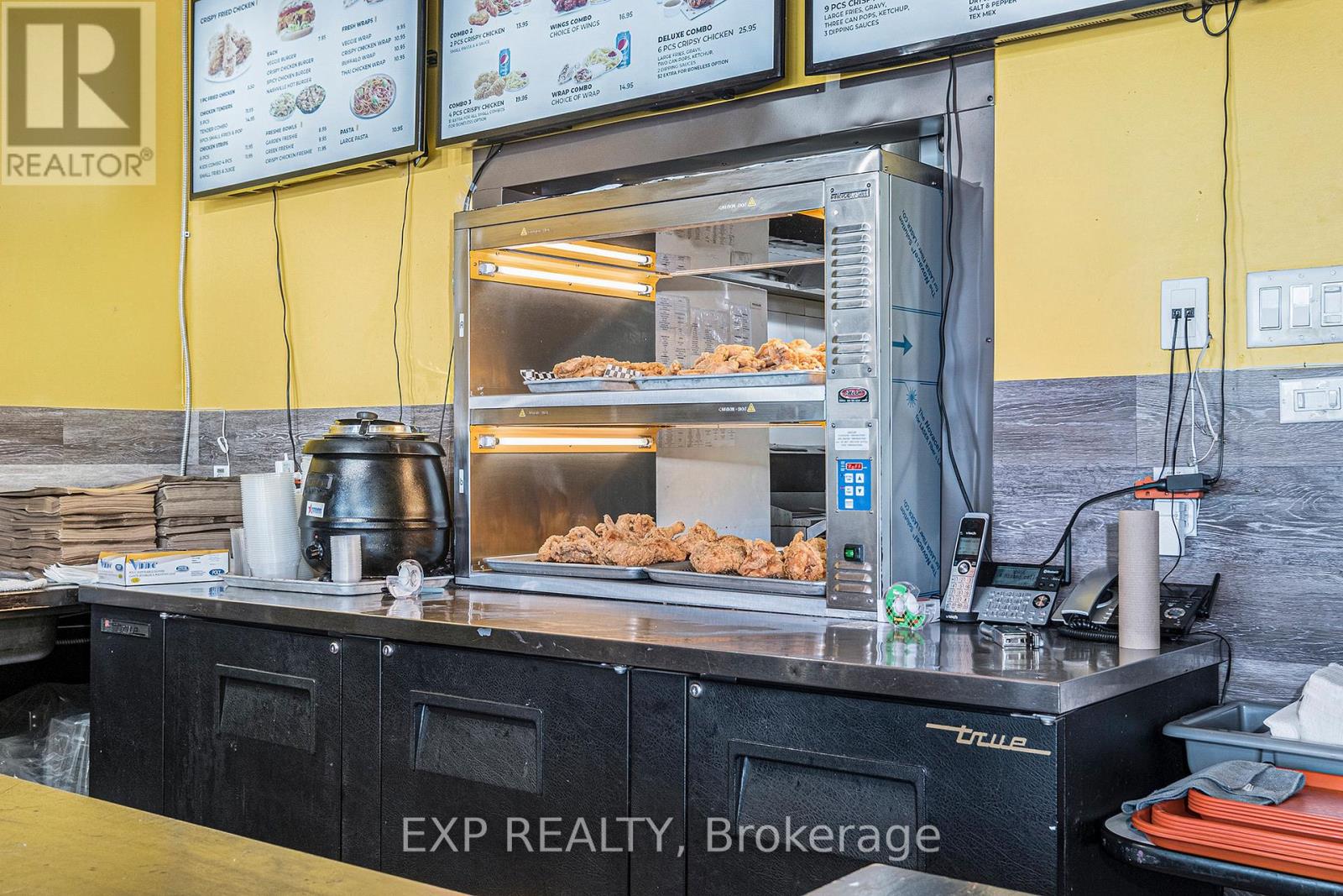 PROFITABLE & ESTABLISHED QSR GENERATING APPROX. $550,000 ANNUAL GROSS REVENUE with a loyal and growing customer base. Located at one of Ottawa's busiest intersections, St.Laurent Blvd and Smyth Rd, this rare acquisition is an ideal fit for both investors and motivated owner-operators to immediately reap significant financial benefits due to strong revenue and income. Located in a prime, high-traffic plaza with NO COMPETITION for fried chicken in the area, abutting a major transit hub with maximum exposure. The location is anchored by major national tenants (Dollarama, LCBO, Home Hardware) and receives constant foot traffic from over 20 high-rise apartments, local schools, The Ottawa Hospital, and Industrial Park, all within close vicinity. The 1,580 sq ft unit with seating for 36 is fully equipped, turnkey, and benefits from top ratings on all delivery platforms. NO FRANCHISE FEES OR RESTRICTIVE MENUS. Excellent accessibility with 500+ parking spaces. Contact us today to schedule your private tour and access further details. Please do not approach staff directly. (id:49712)