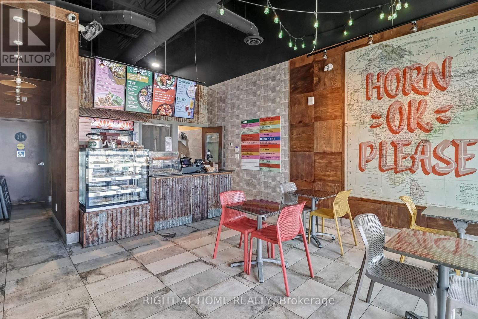 Turnkey, Modern Restaurant with Tandoor in High-Traffic Kanata-Stittsville. Rare turnkey restaurant opportunity in high-traffic Kanata-Stittsville! This 1,360 sq. ft. space features a modern commercial kitchen with a 20-ft hood, tandoor, walk-in fridge, seating for up to 18, and recent leasehold improvements. The established customer base provides excellent potential for growth and profitability. Perfect for a family operator, investor, or entrepreneur, this space is also available as an asset sale for buyers looking to bring their own concept. An optional commercial kitchen is available for additional food preparation or catering operations. The owner is relocating and downsizing, creating a rare opportunity to step into a ready-to-operate, modern restaurant in a prime, high-visibility location. Rent is $6,965/month (HST included) with seven years remaining on the lease. All offers subject to landlord approval - please do not approach staff. Video tour available. Financials after NDA (id:49712)