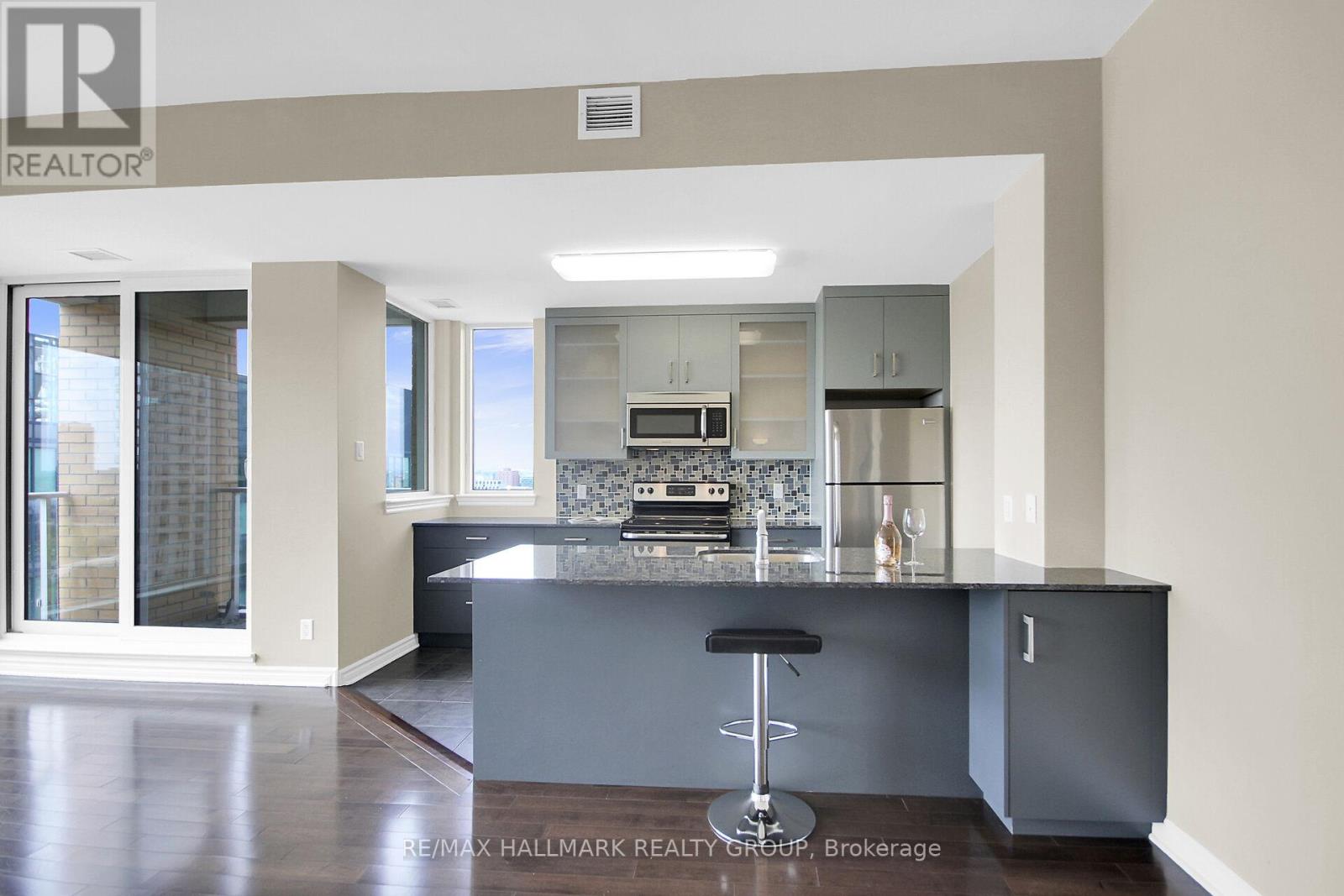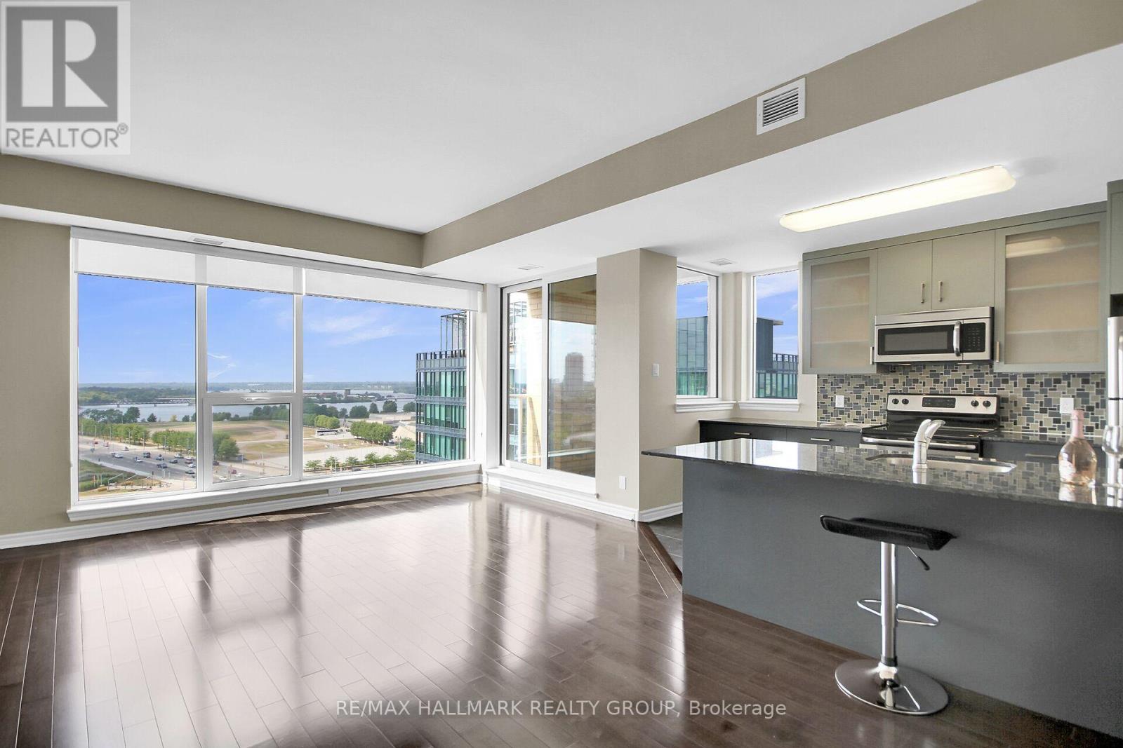 Available immediately for rent at $2,600, this luxurious 2-bedroom penthouse condo in the eco-friendly Lebreton Flats offers breathtaking views of the Ottawa River, Gatineau Hills, and War Museum through its floor-to-ceiling, wall-to-wall windows. Situated in the prime southwest corner, this unit boasts hardwood floors, granite countertops, an upgraded kitchen, and stainless steel appliances. Lebreton Flats is rapidly becoming one of Ottawa's most desirable neighborhoods, with the transit-way, and bike and walking trails right at your doorstep. A mere 10-minute walk to Parliament and just minutes away from China Town, Little Italy, and Westboro, this location provides the ultimate downtown living experience. Amenities include an indoor pool, fitness center, secure bike storage, locker, and indoor parking. The rental encompasses indoor mechanical parking, heating, water, and air conditioning. Please note that the tenant is responsible for hydro. (id:49712)