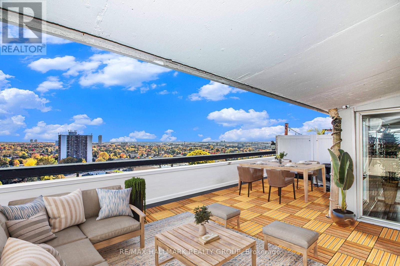$747 MonthlyLooking for some wow factor? Is bang for your buck important? Check this, just shy of 1000 "real" square feet, PENTHOUSE with spectacular views of the sunrise, tree tops of the community and Gatineau Hills as well as the lazy Rideau River to the west from the huge 400+ sq ft deck, on the quieter side of the building, a perfect spot to entertain and relax. Unique vaulted ceilings throughout the interior spaces make this light filled apartment just shine! There are 2 full bathrooms ( only the penthouses do in this complex of three towers), both have been renovated. The kitchen is an older renovation with modern design elements and is very functional now but it could we really "wow" if you knocked down the wall to the living space. The dining is adjacent to the kitchen and the living room space has been divided to provide a home office nook for those days you still get to work form home. There is a handy storage closet IN the unit as well as your own exclusive use locker just a few steps up from your apartment, again, a feature only the penthouse units have. The only modern convenience missing in the unit is laundry but this building has a very pleasant ground floor laundry room for residents to use. As well, you've got one assigned parking spot at your disposal. Don't own a car? (you really don't need one living here!), rent it out to a fellow resident. Reasonable condo fees with excellent amenities. Super well managed complex with onsite office. Bus to Parliament Hill in 20, bike in 15, walk in under 45.... the Rideau River bike and ski paths are practically at your door. Loblaws and the Green Fresh grocer are across the street as is Louis Pizza: an Ottawa classic! don't let the Brutalist architecture of the tower dissuade you form looking at this incredibly unique and super affordable condo. Cats and birds permitted but not dogs. No smoking. Status Certificate package on file. Rooms listed as "Other": first one is the in suite storage and the second is the (id:49712)